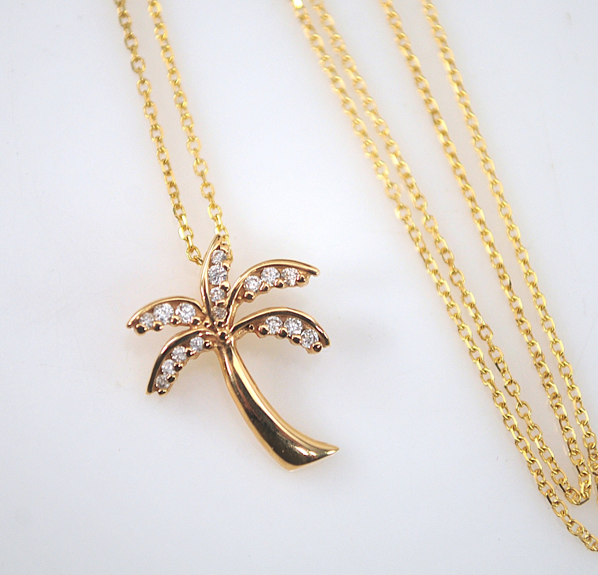 14K yellow gold necklace is signed 14K RCI Indonesia and features 17 small genuine natural Diamonds. A matching bracelet is available under a separate listing.