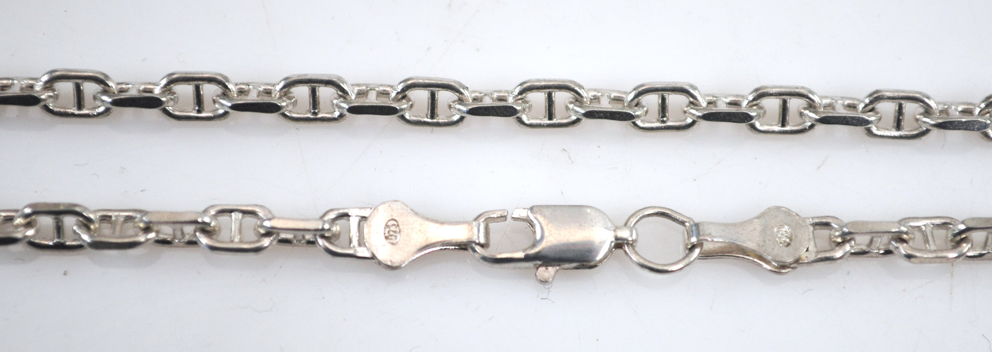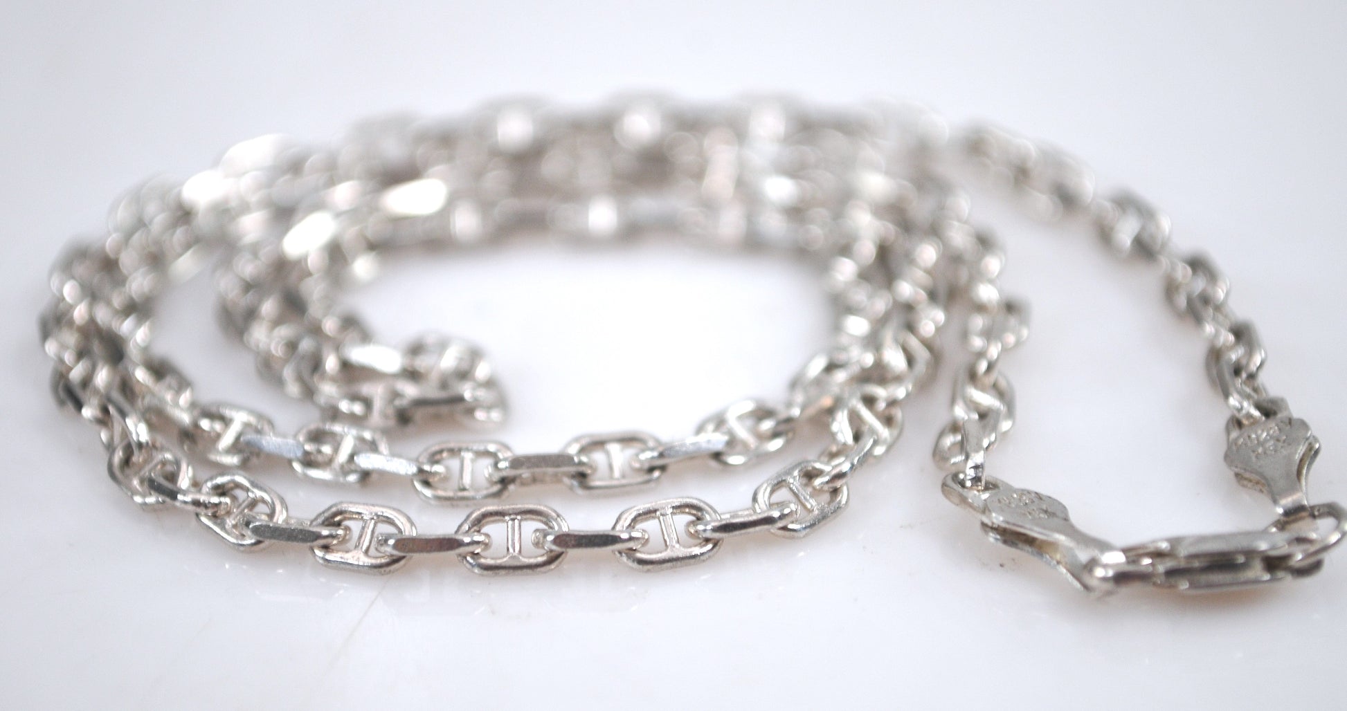 Vintage sterling silver anchor or mariner chain necklace is signed 925 MD28V MEX and features flat edges for sparkle and shine.