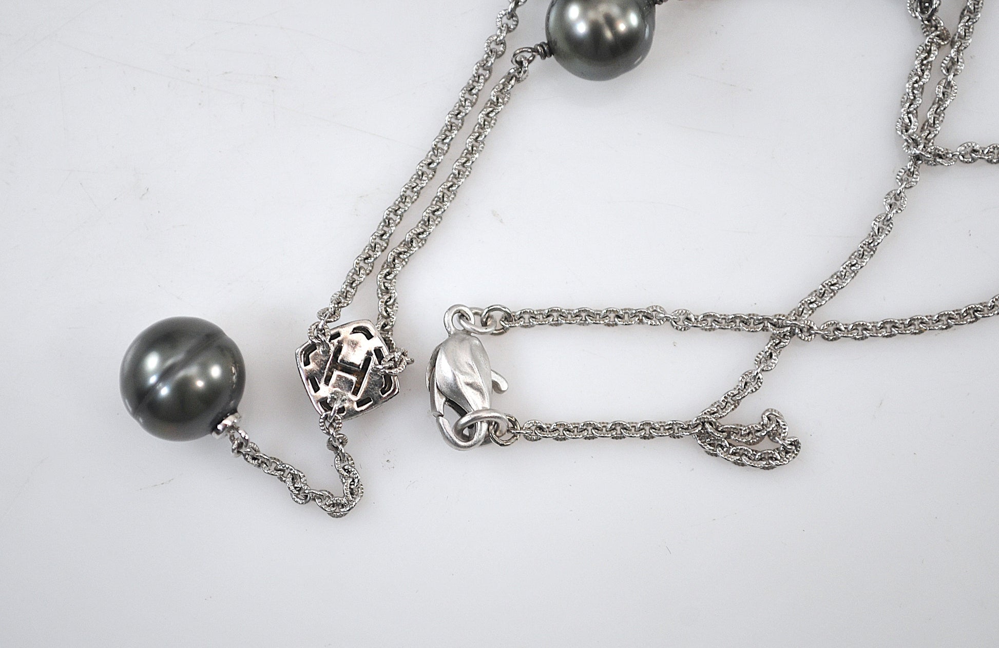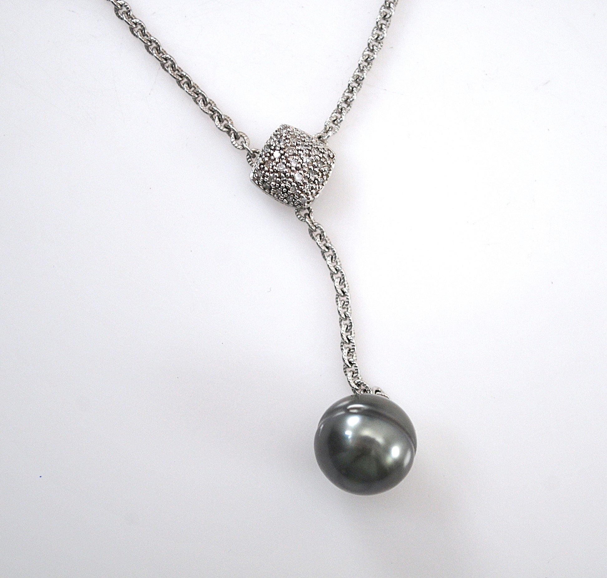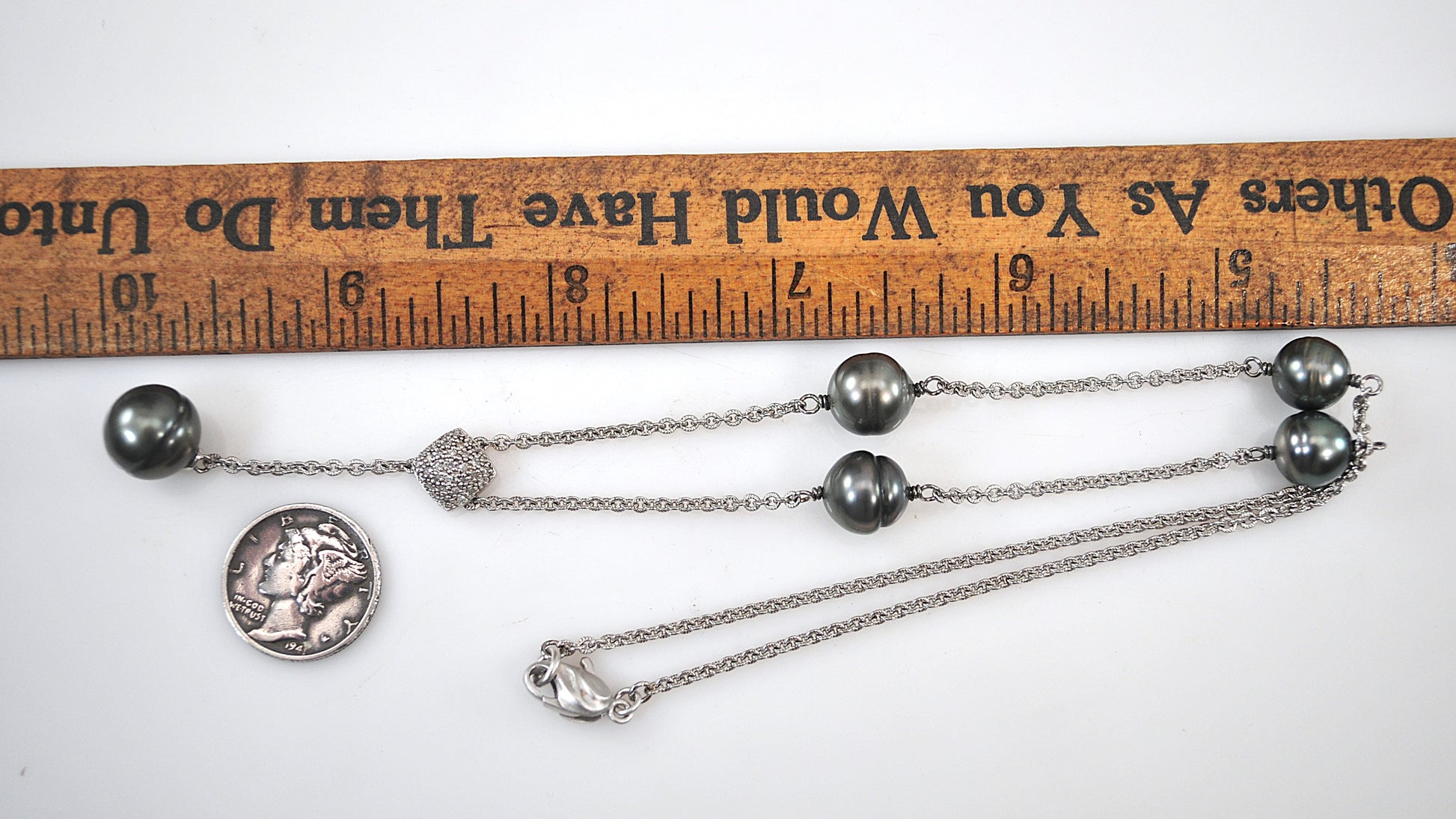 Honora sterling silver Y necklace is fully hallmarked and features graduated black ringed Pearls and a square pendant in the Y design with about 33 small genuine Diamonds.