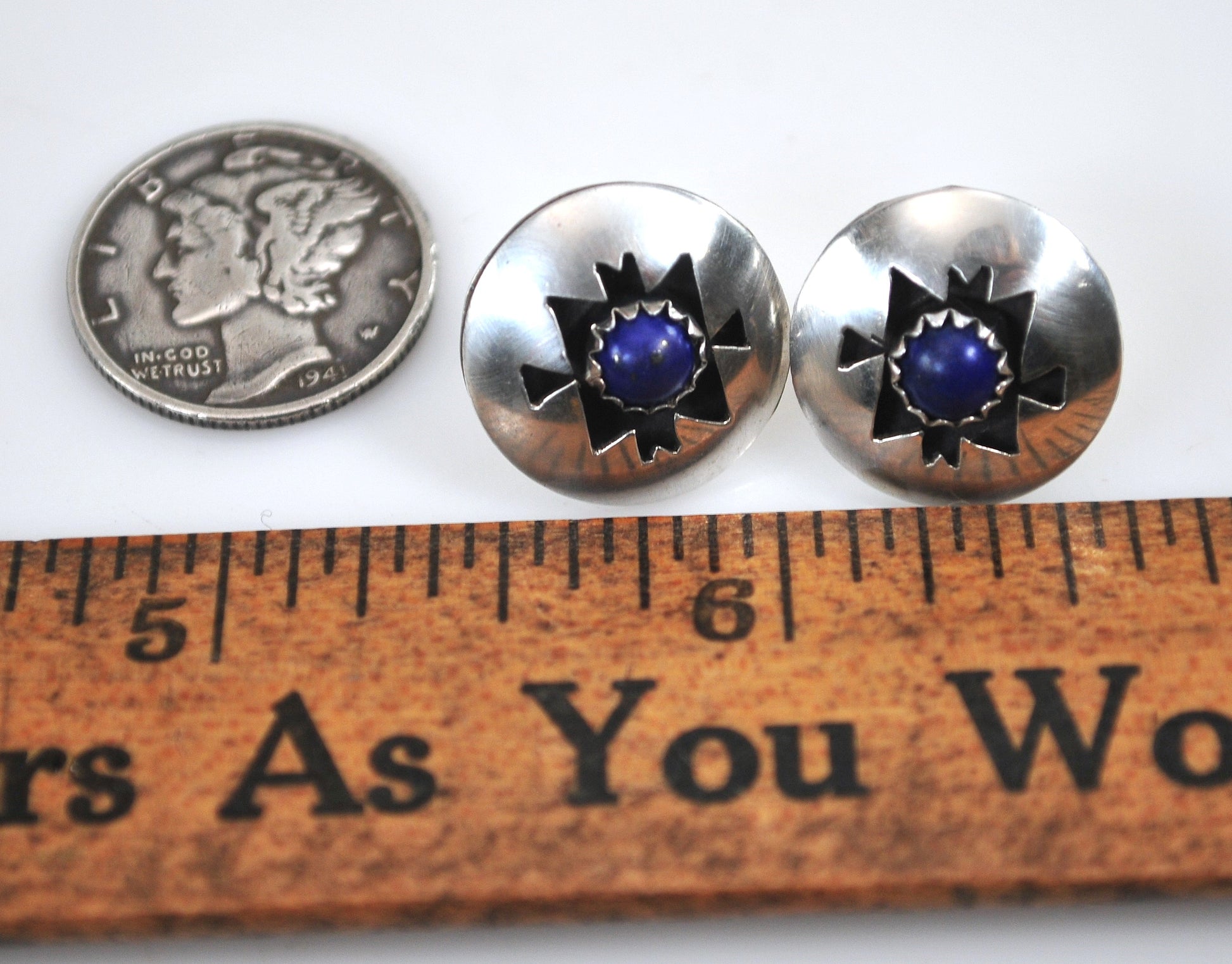 Native American Lapis Shadowbox Sterling Silver Earrings