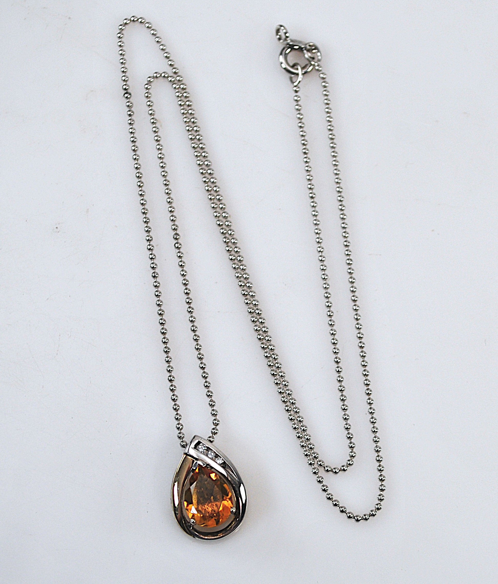 Signed Sterling Silver 14K Gold Citrine Diamond Pendant Necklace