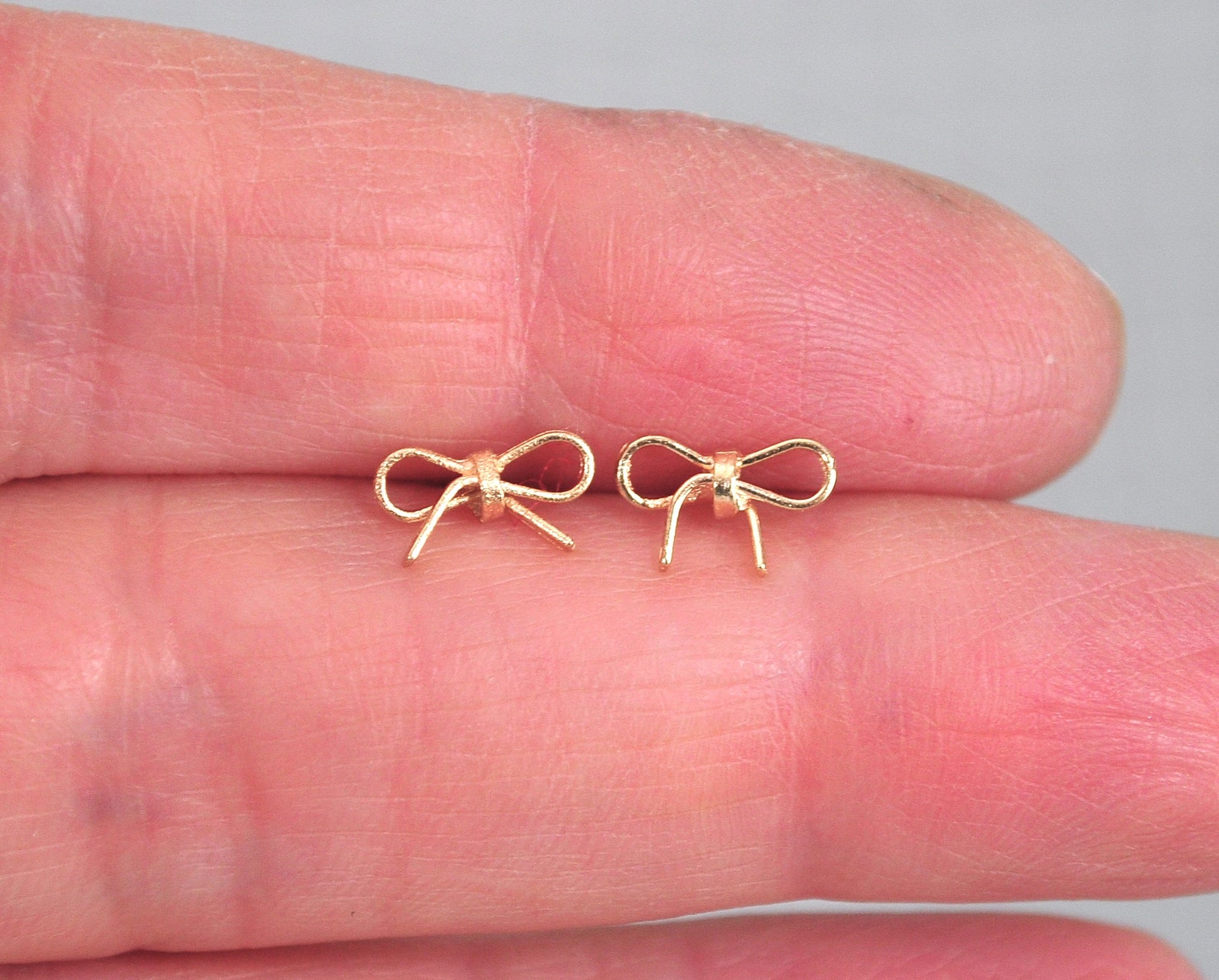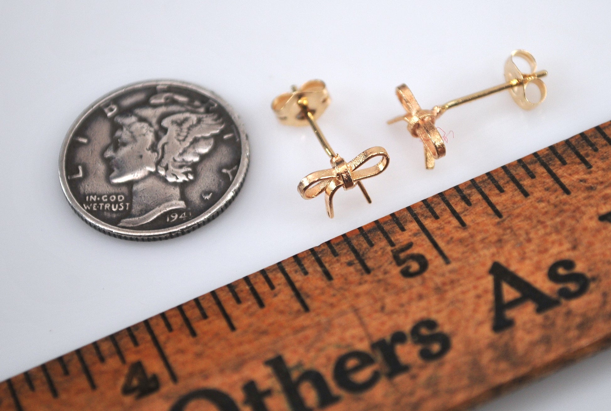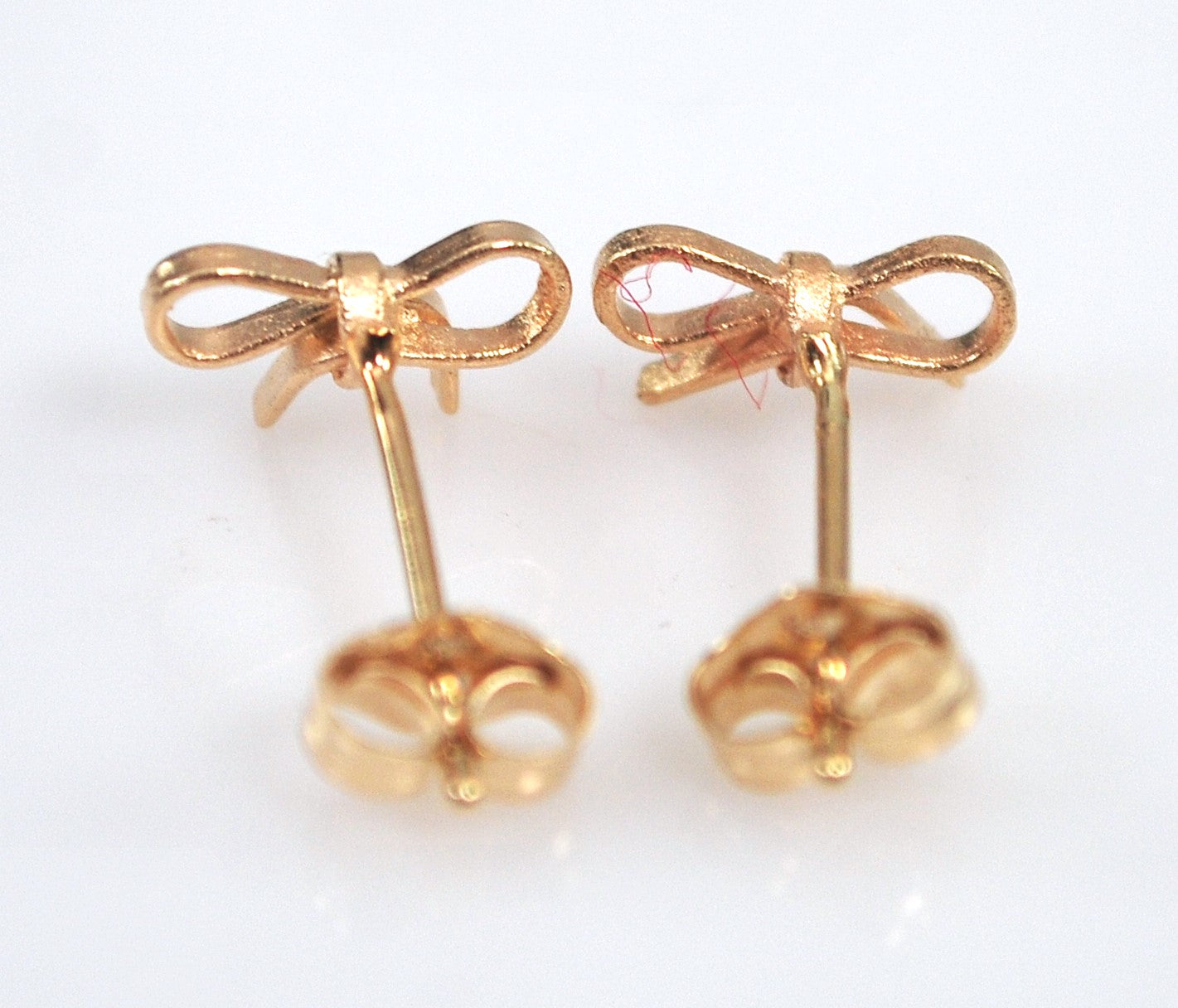 Tiny 14K yellow solid gold bow stud earrings are marked 14K on the backs and have been tested as 14K gold.