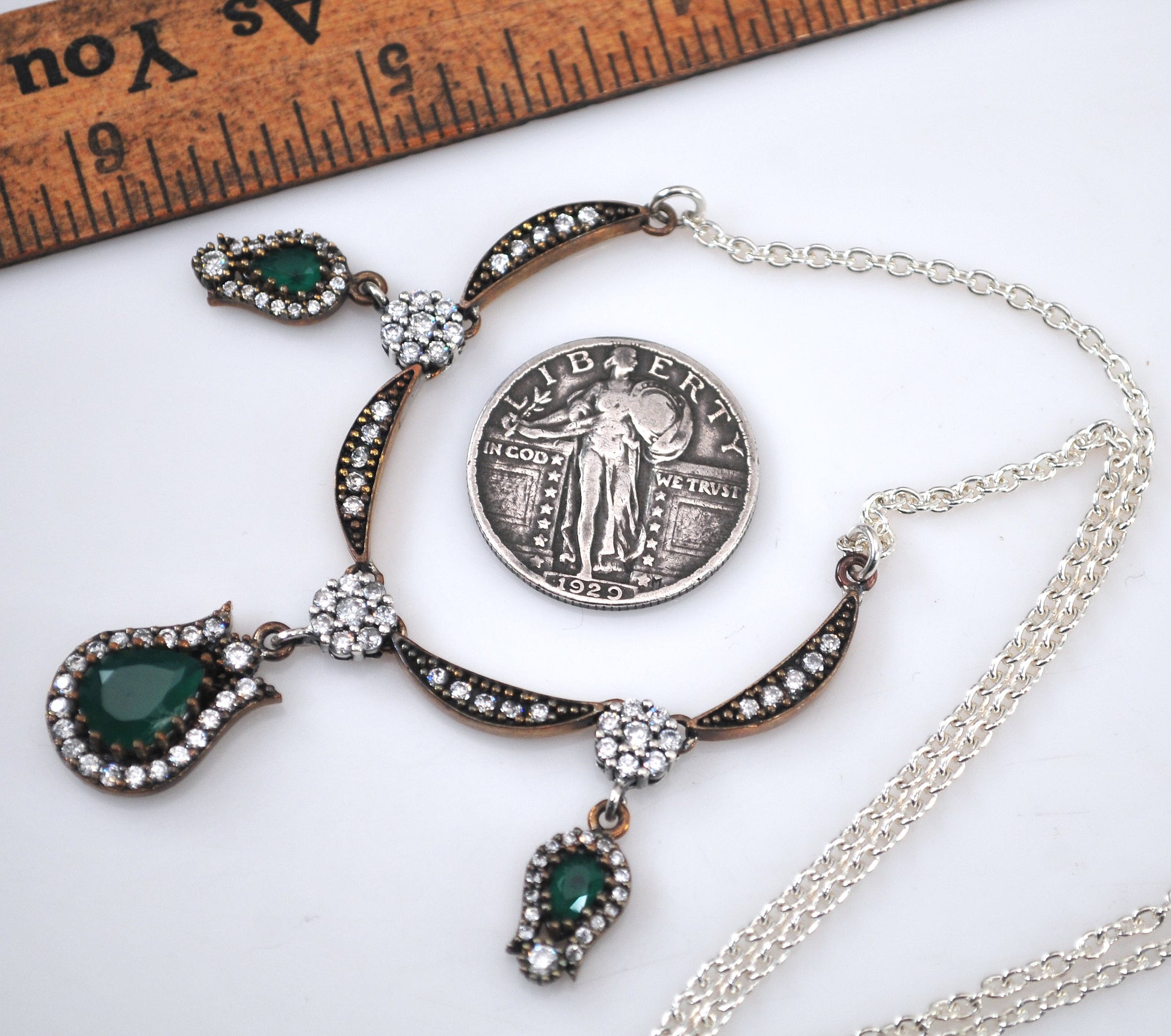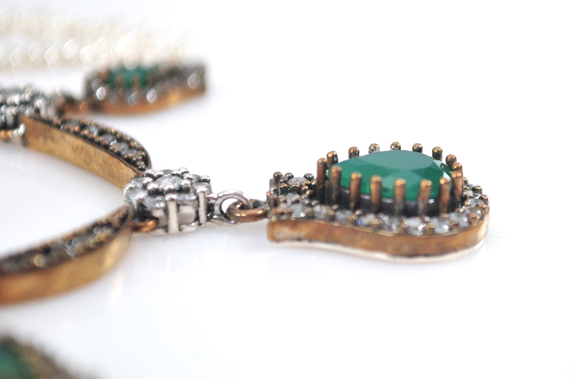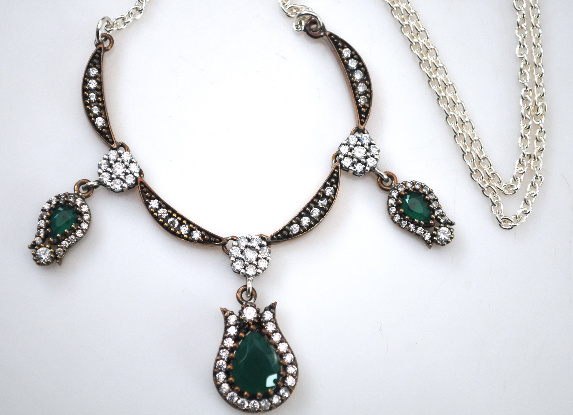 Sterling Silver and Gold Filled Green Onyx CZ Necklace