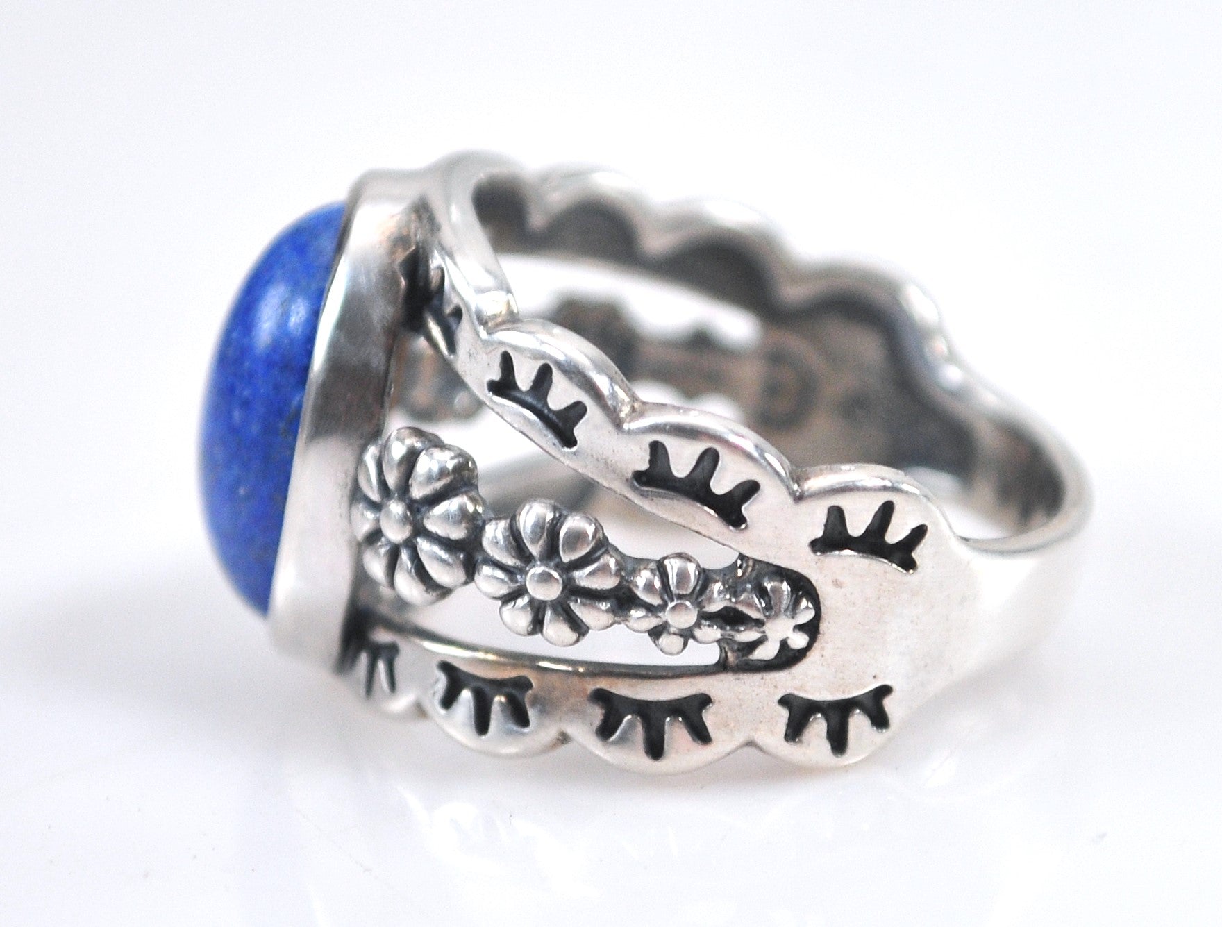Relios American West sterling silver Southwestern Lapis ring is hallmarked and features an oval Lapis cabochon.