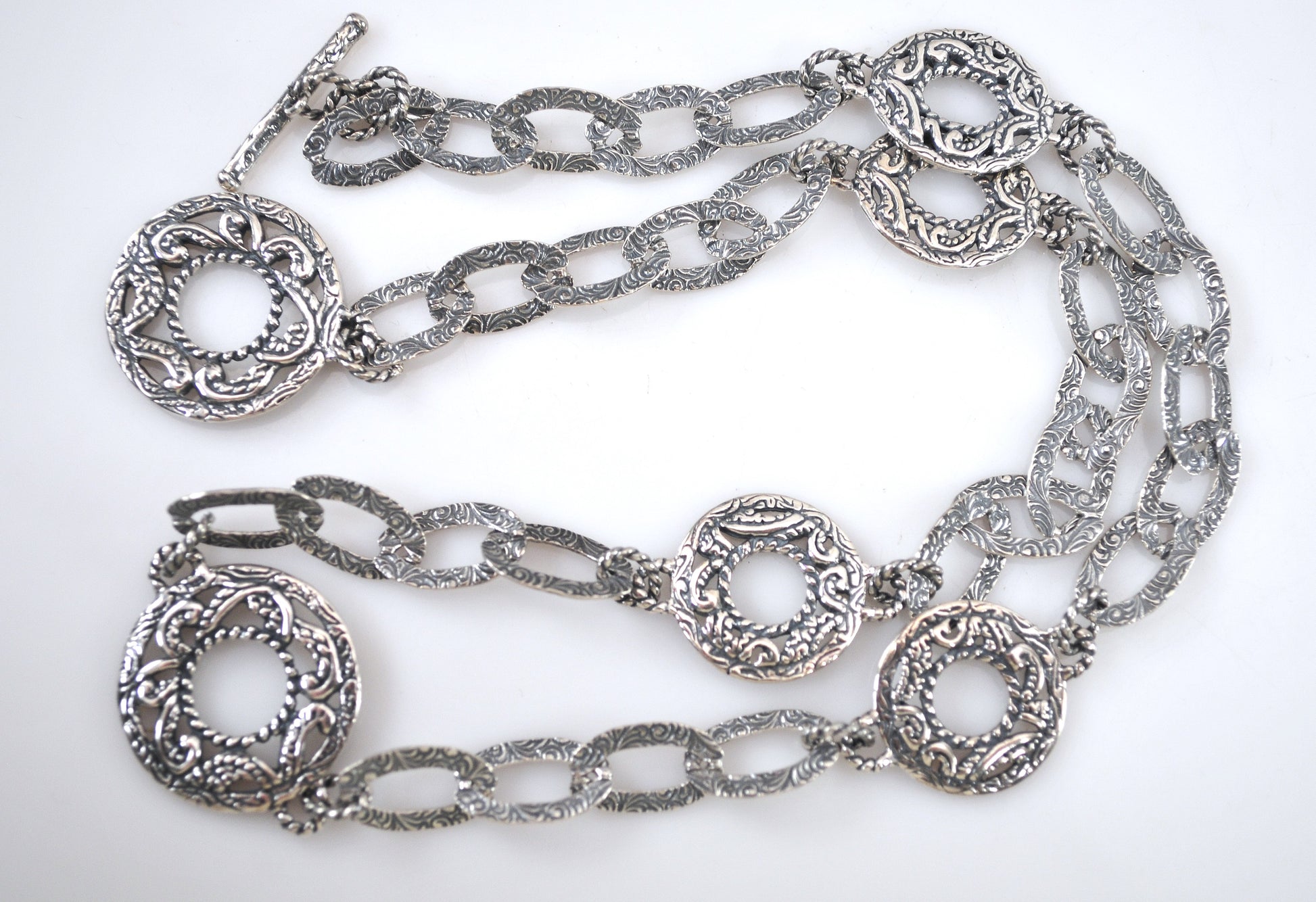 Relios sterling silver Southwestern openwork necklace is fully hallmarked. A matching bracelet is available under a separate listing. The necklace and bracelet weigh almost the same.