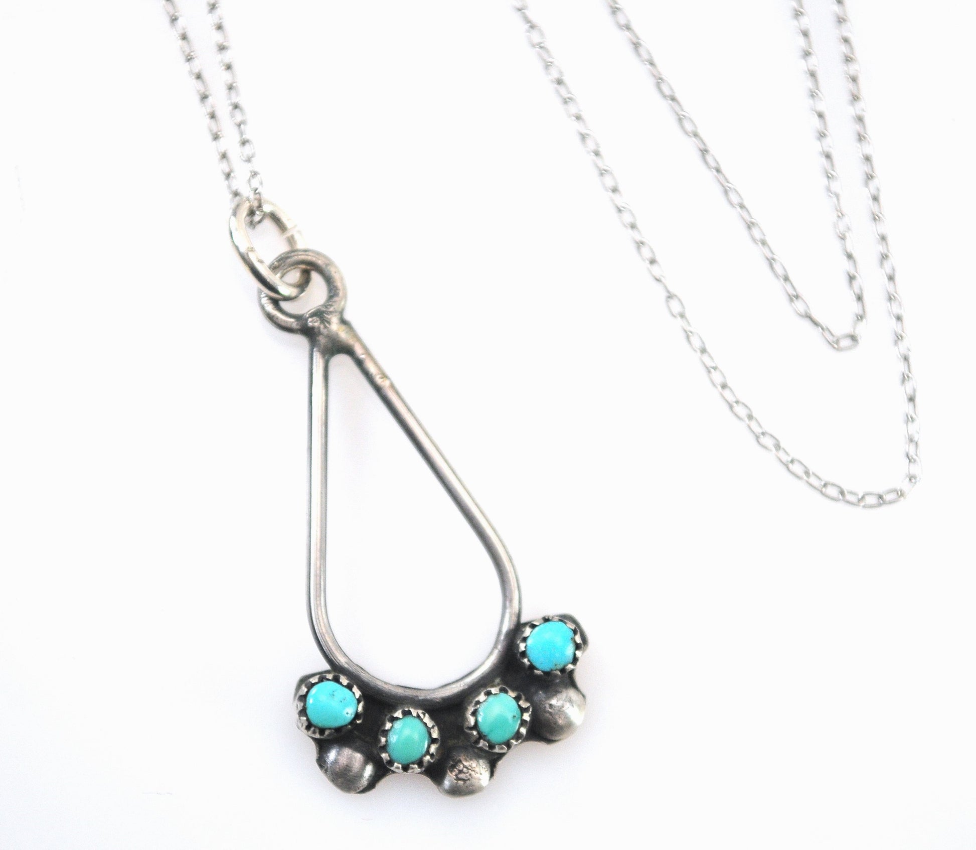 Native American handmade sterling silver Turquoise needlepoint pendant is unmarked and tests as sterling silver.