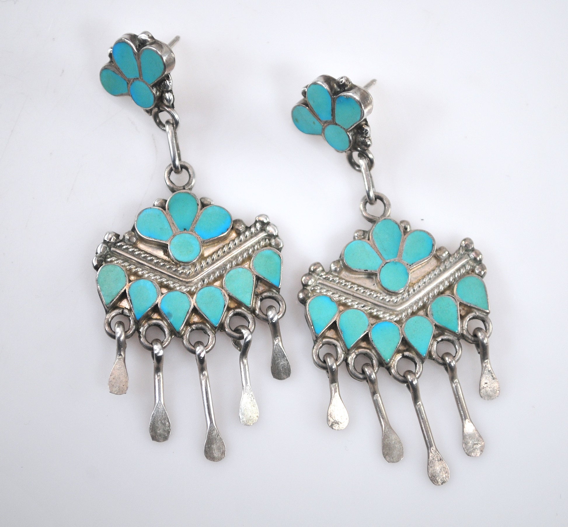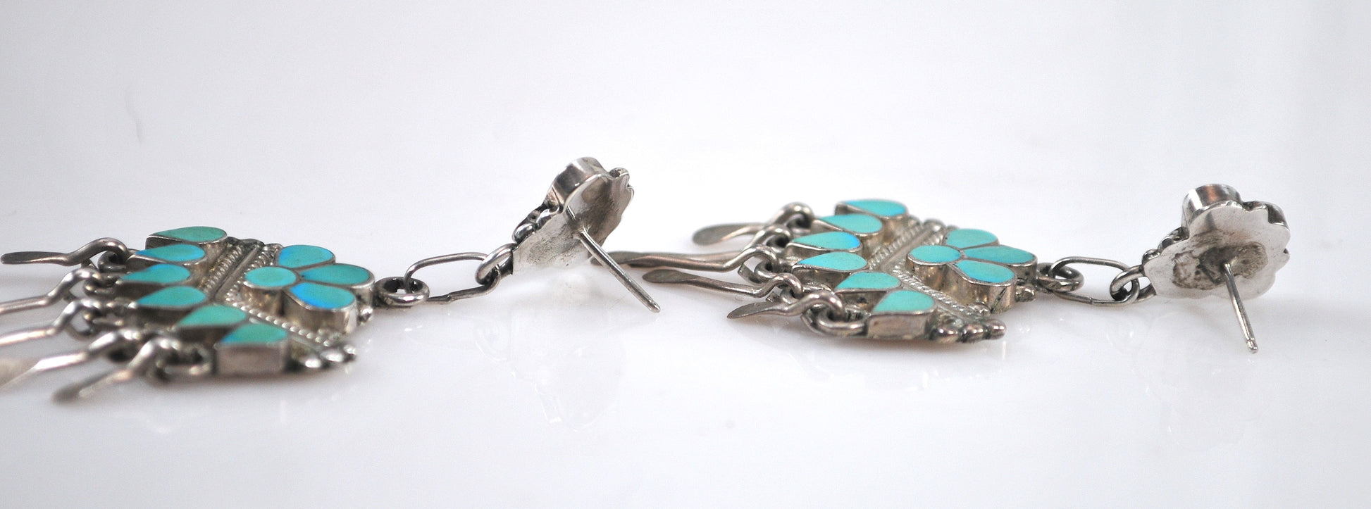 NOT AVAILABLE - Reserved for K - Large Sterling Silver Zuni Turquoise Chandelier Earrings