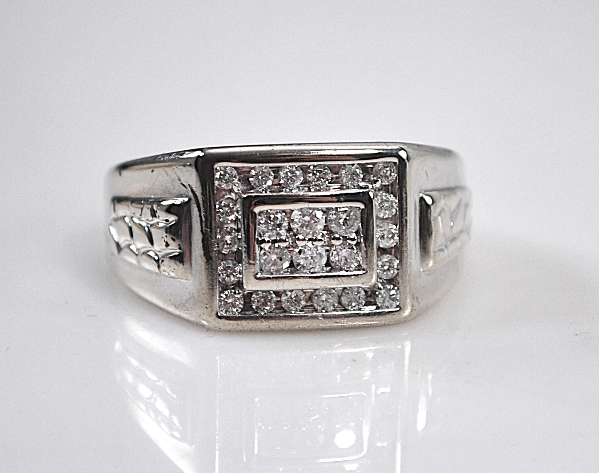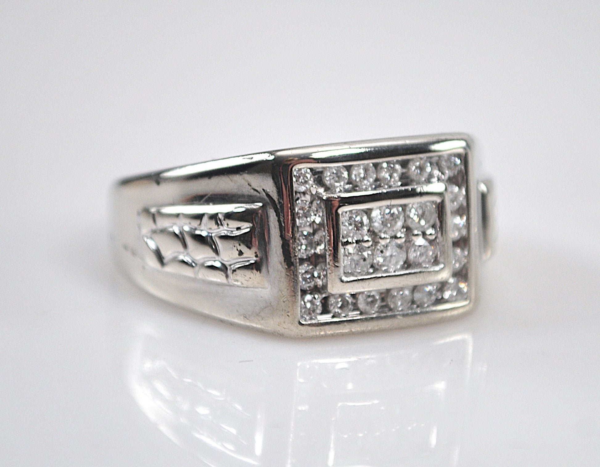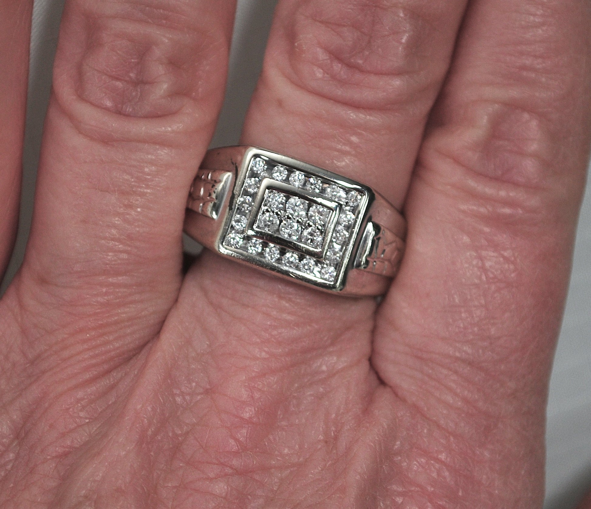 This ring shows some wear upon close inspection, but keep in mind the photos are magnified and the scratches are barely visible with regular wearing. 10K white gold 1/2ct tw genuine natural Diamond ring is unmarked and appears to have been resized. It has been tested by a jeweler.