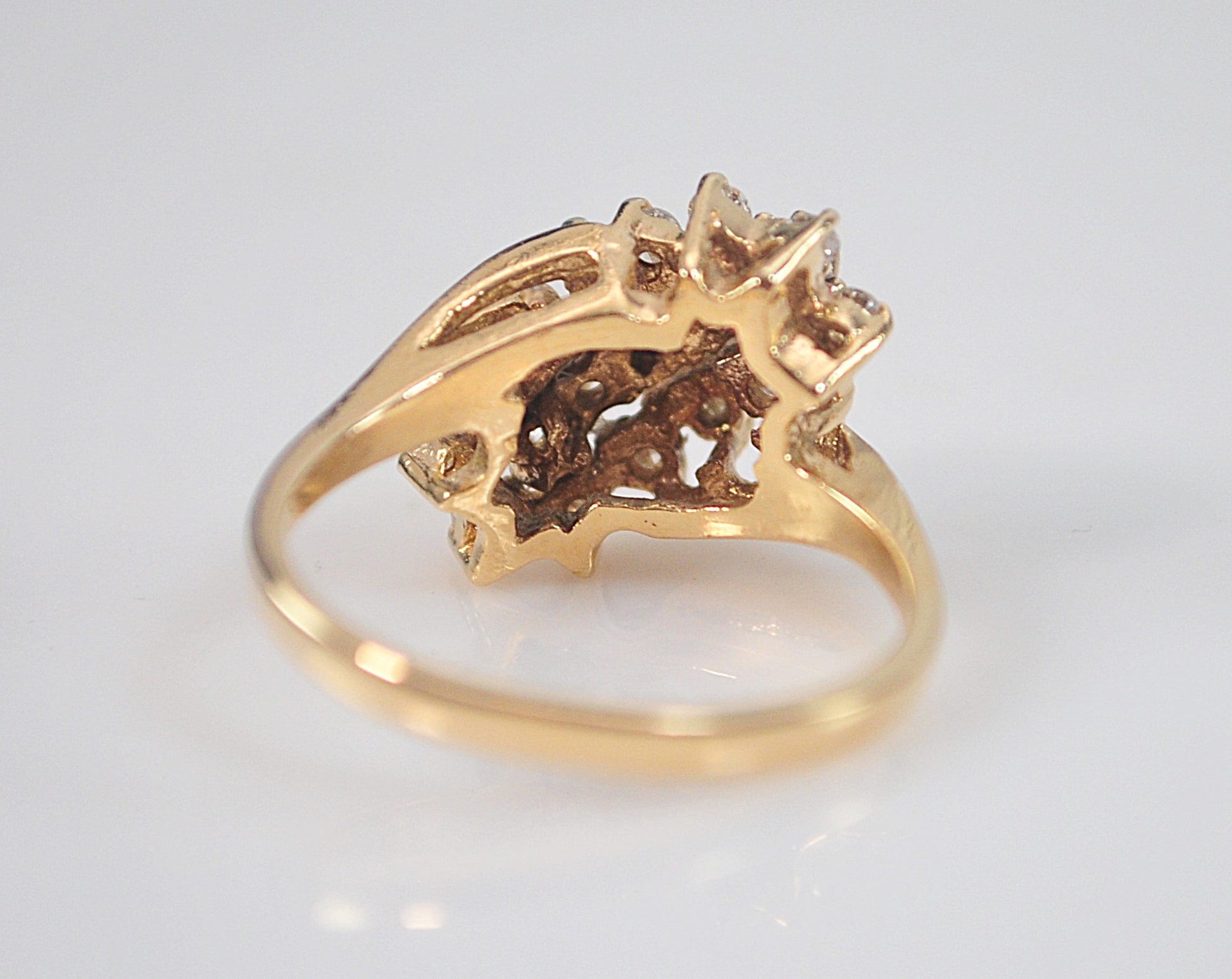 Solid 14K yellow Diamond ring is signed 14KP MS in a diamond shape and 50 and features 19 genuine natural Diamonds for total weight in Diamonds of 1/2 Ct.