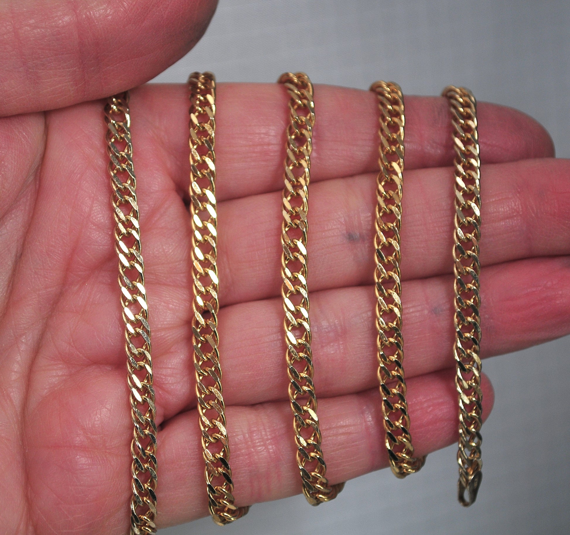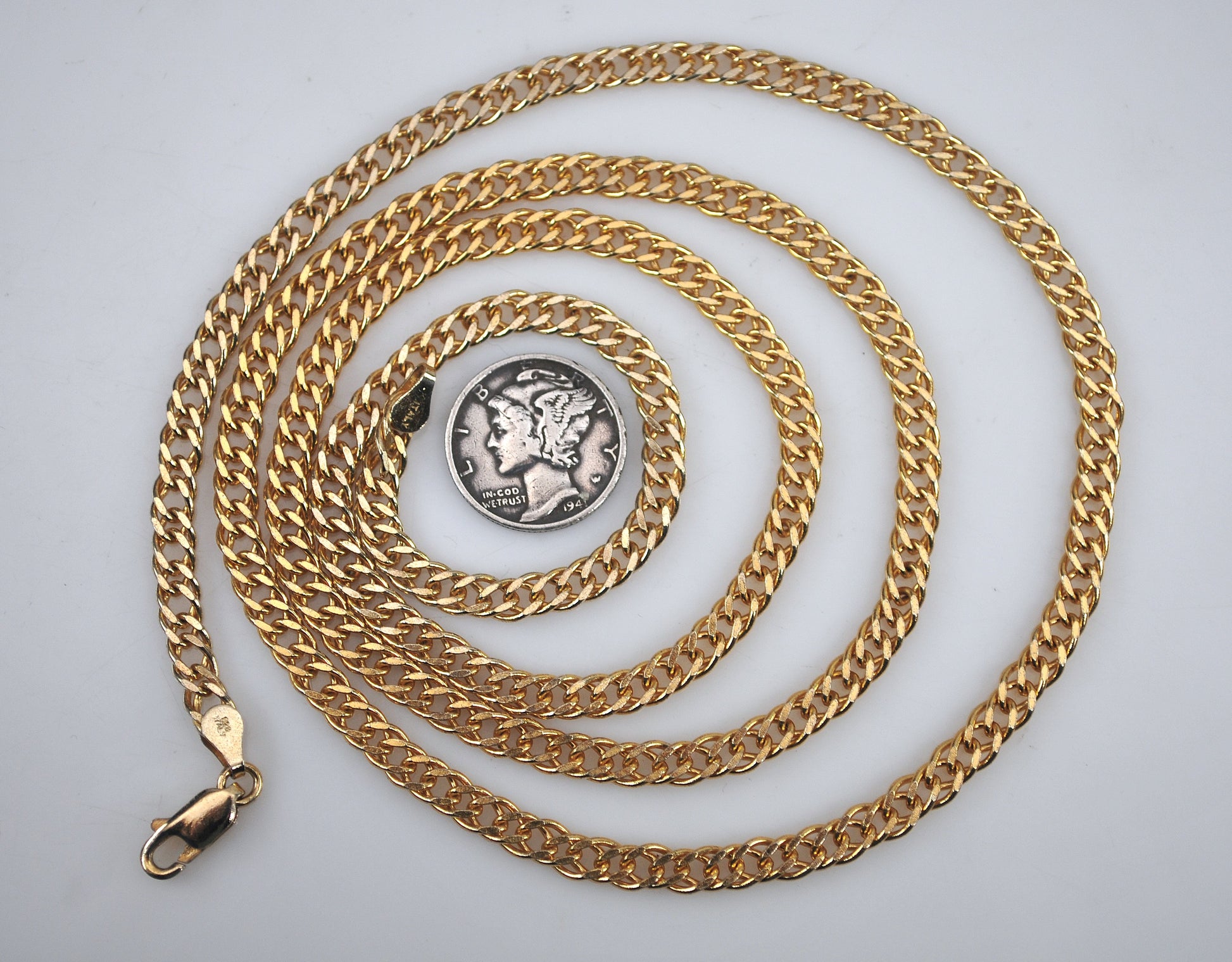 Super sparkly gold over sterling silver curb necklace is signed 925 Italy HCT.