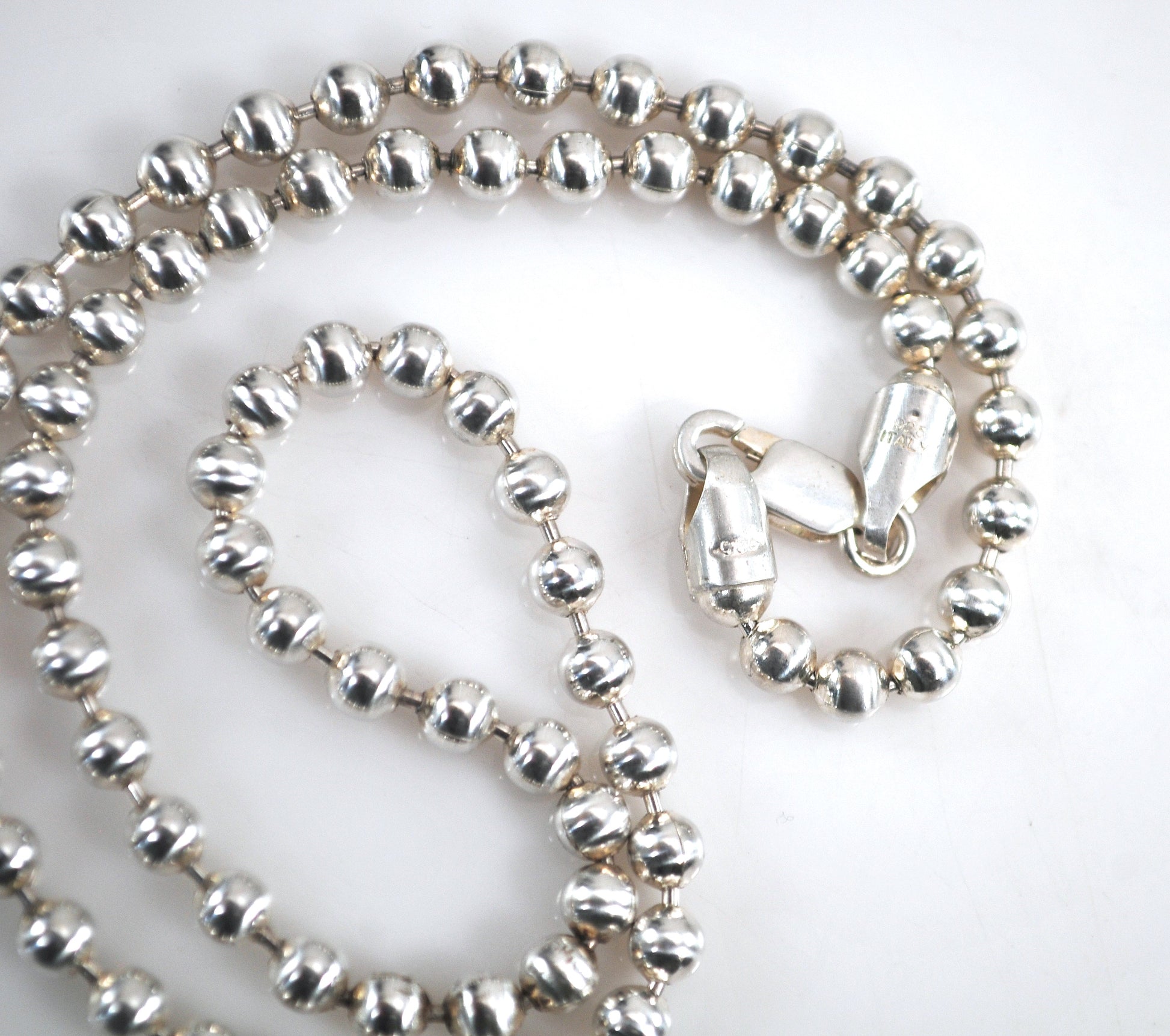 Sterling silver 4mm floating ball chain necklace is signed 925 Italy A.T.
