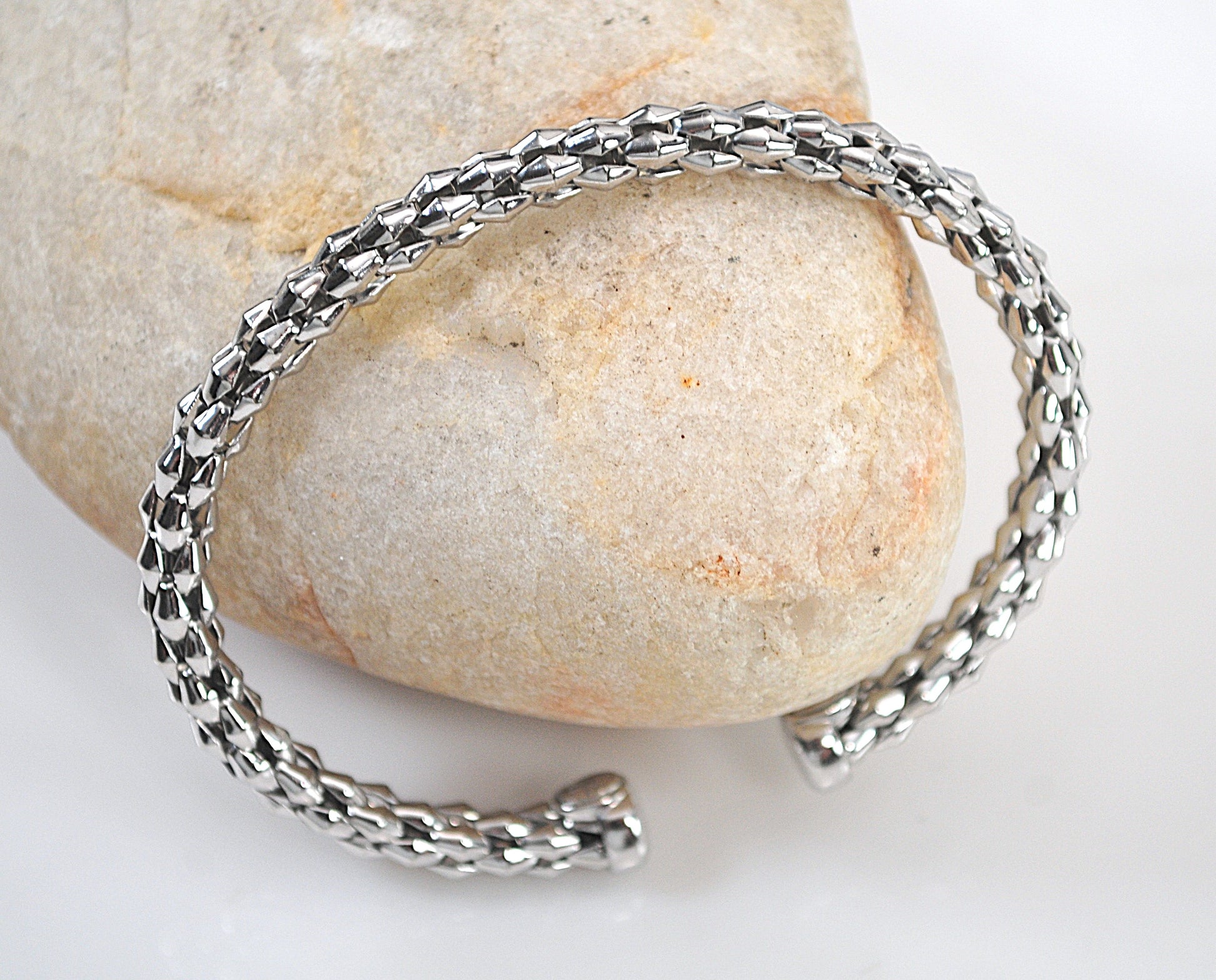 925 Italy Sterling Silver Popcorn Cuff Bracelet