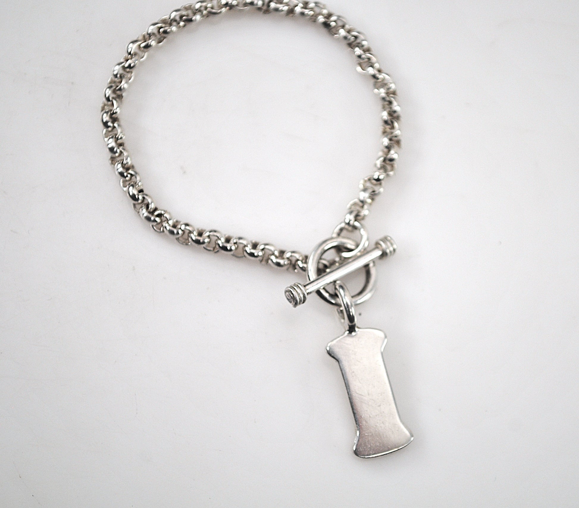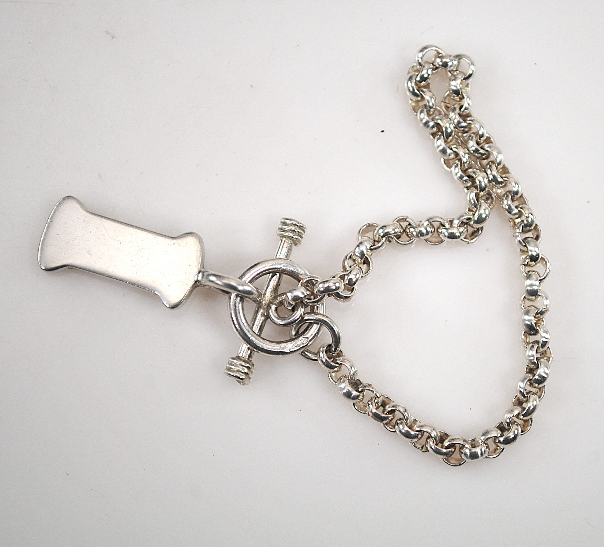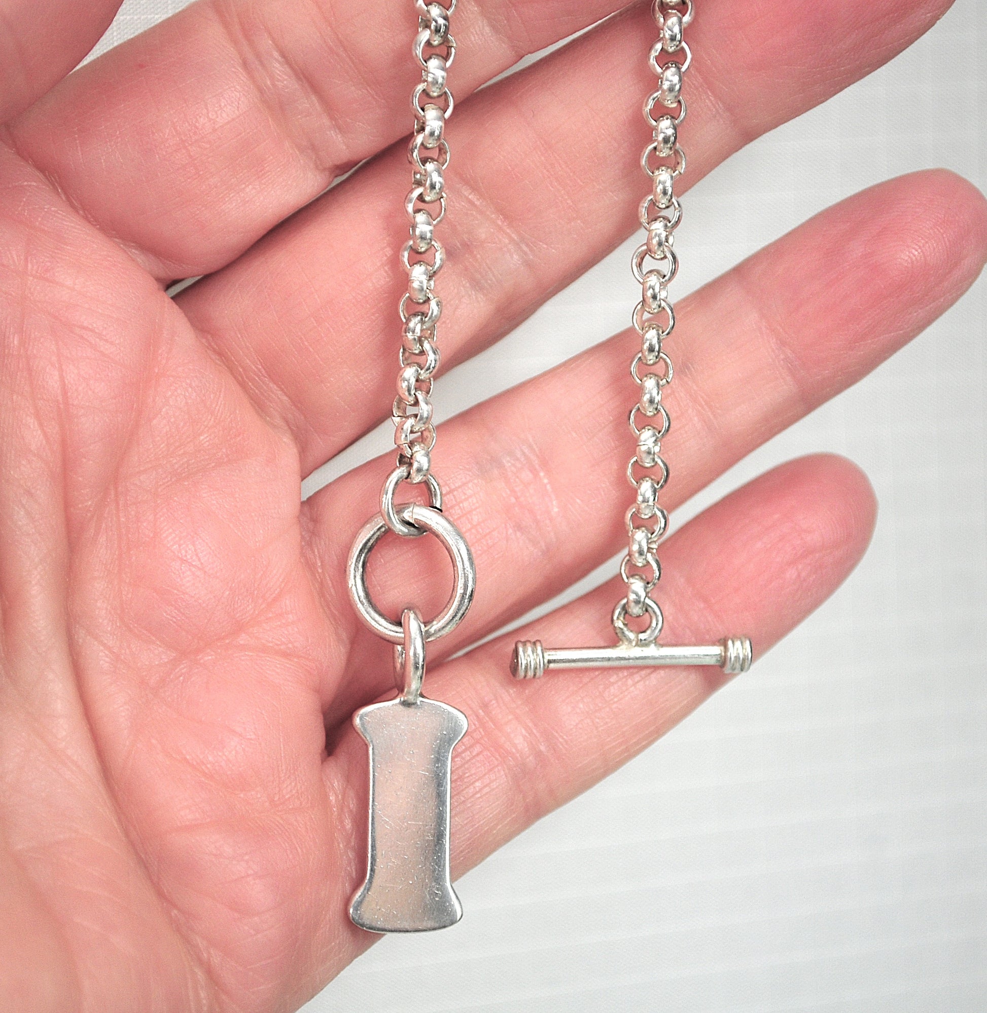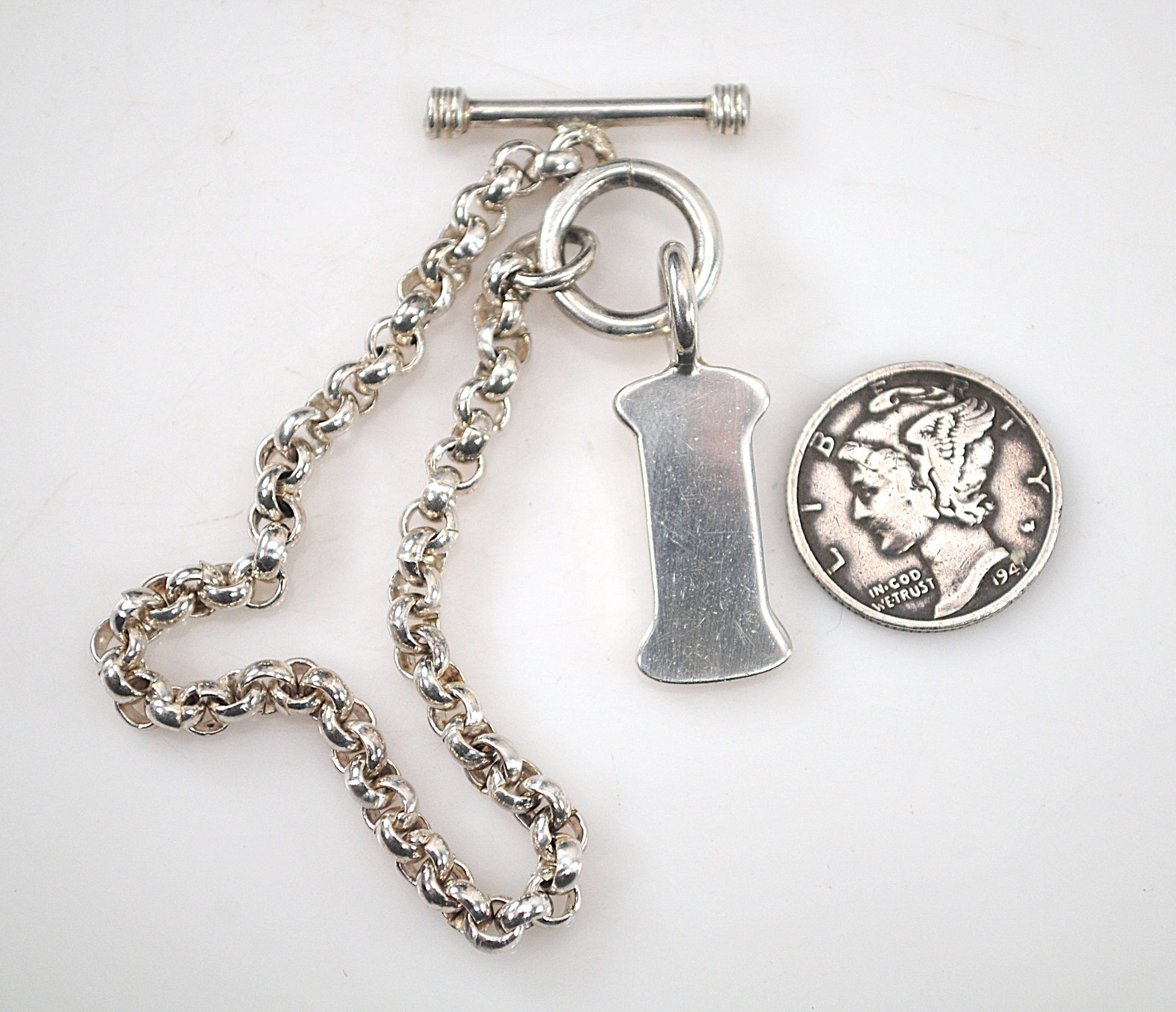925 Sterling Silver Dog Bone Tag Rolo Bracelet, SMALL WRIST