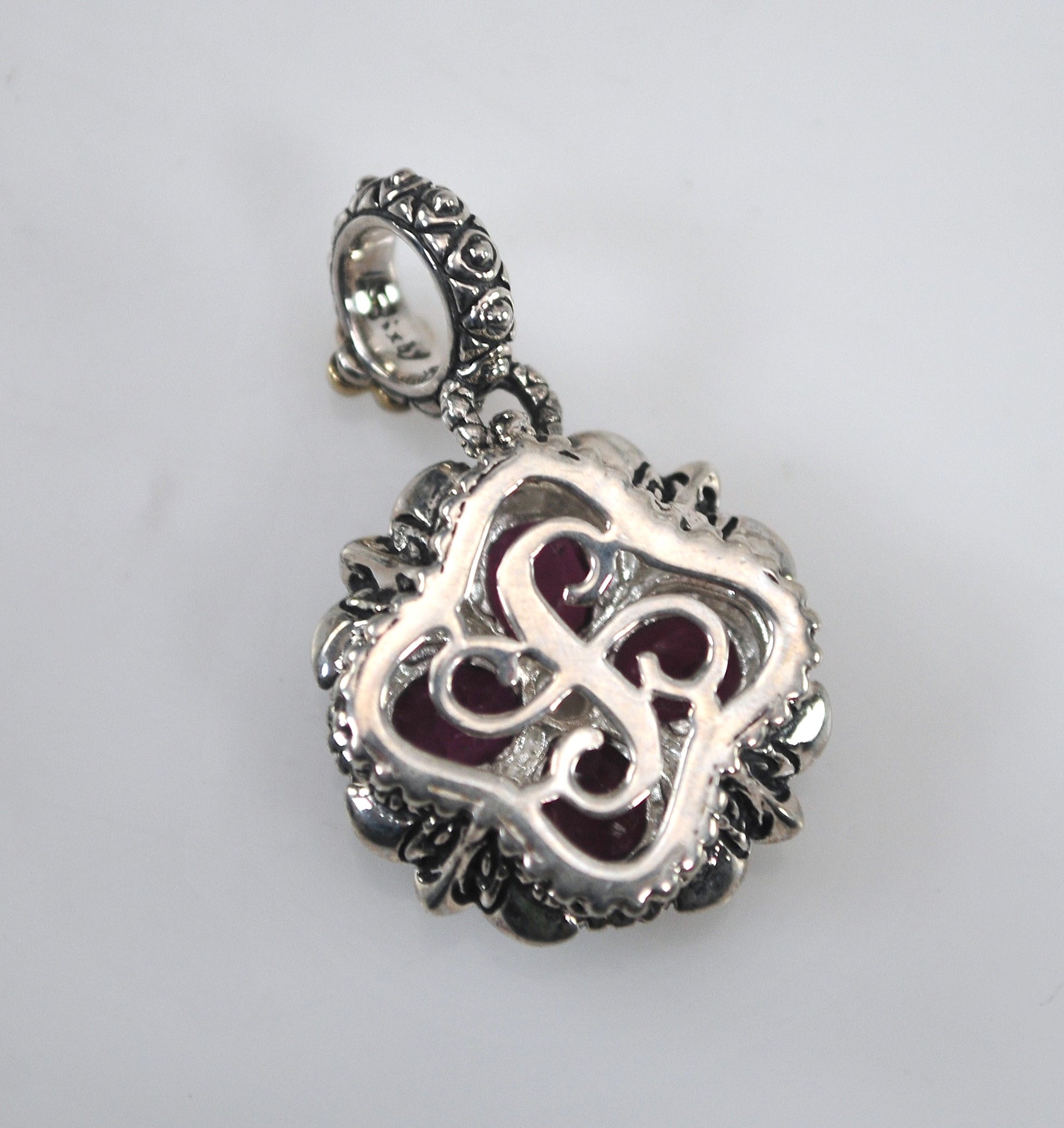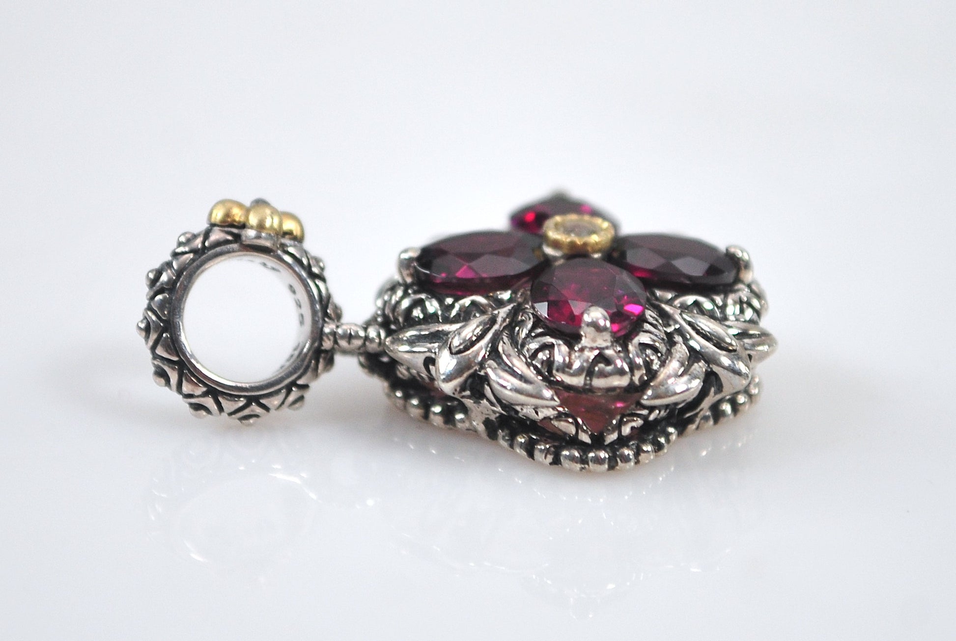 Barbara Bixby Sterling Silver 18K Gold Rhodolite Garnet Flower Charm Pendant