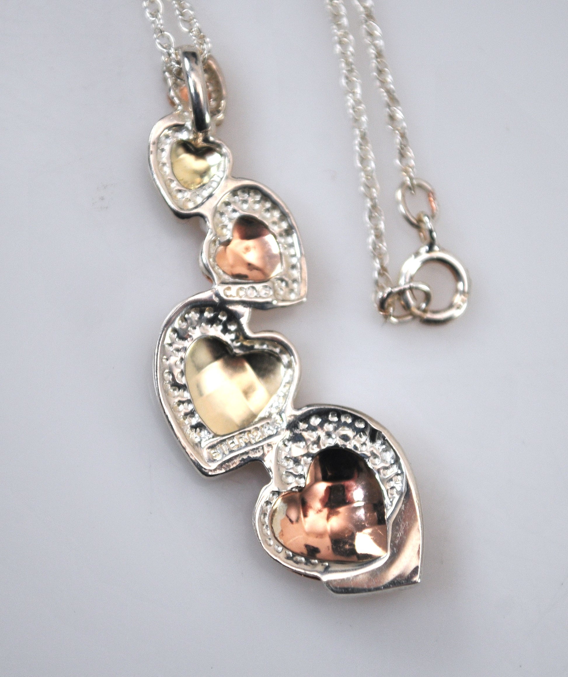 Designer mixed metal pendant is signed C.CO STER 12K and features rose gold and yellow gold leaves in a journey design.