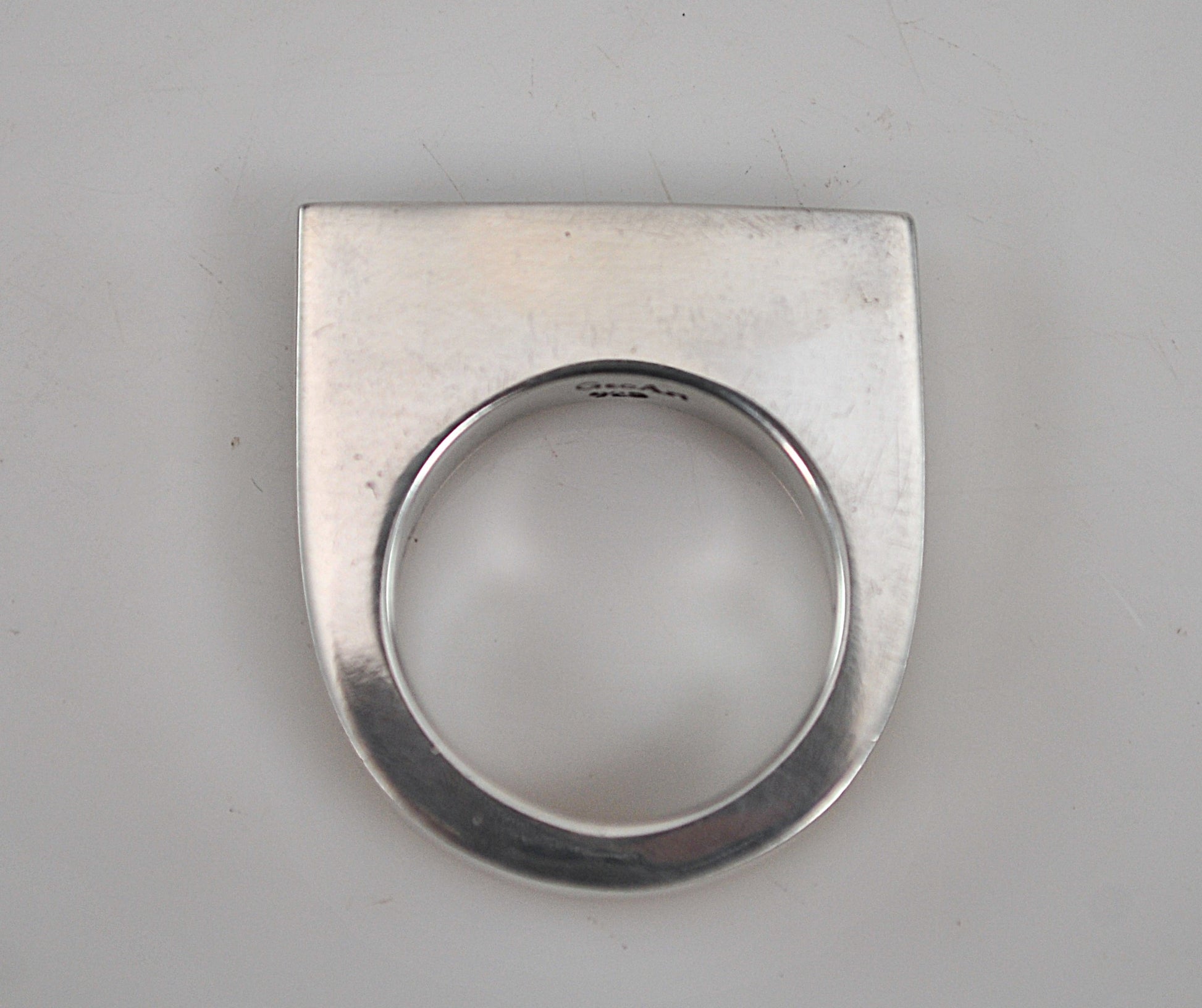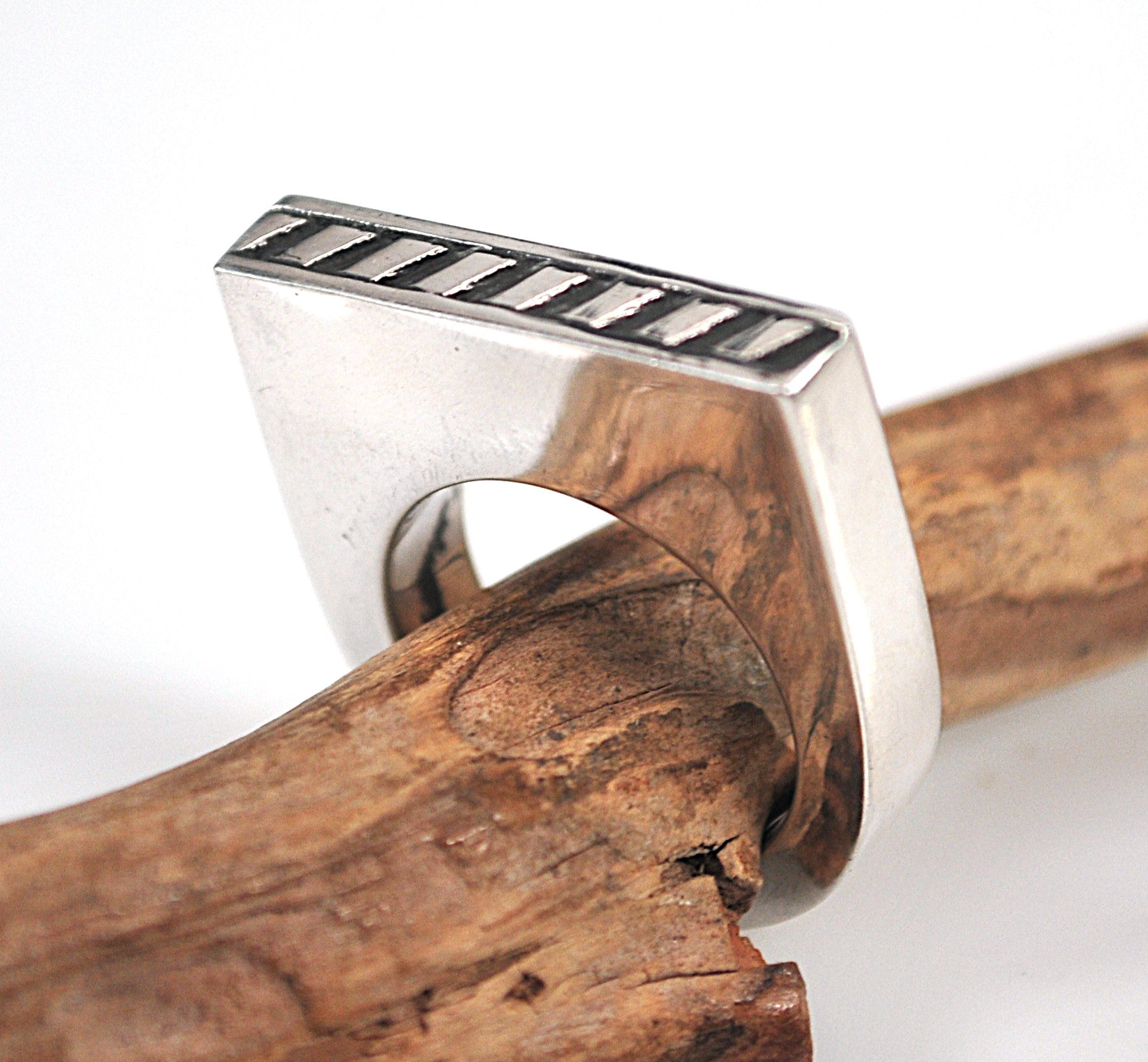 Cynthia Gale designer sterling silver ring is signed GeoArt 925. This ring is new old stock so it is unworn and unused. The black marks are jewelry polish.