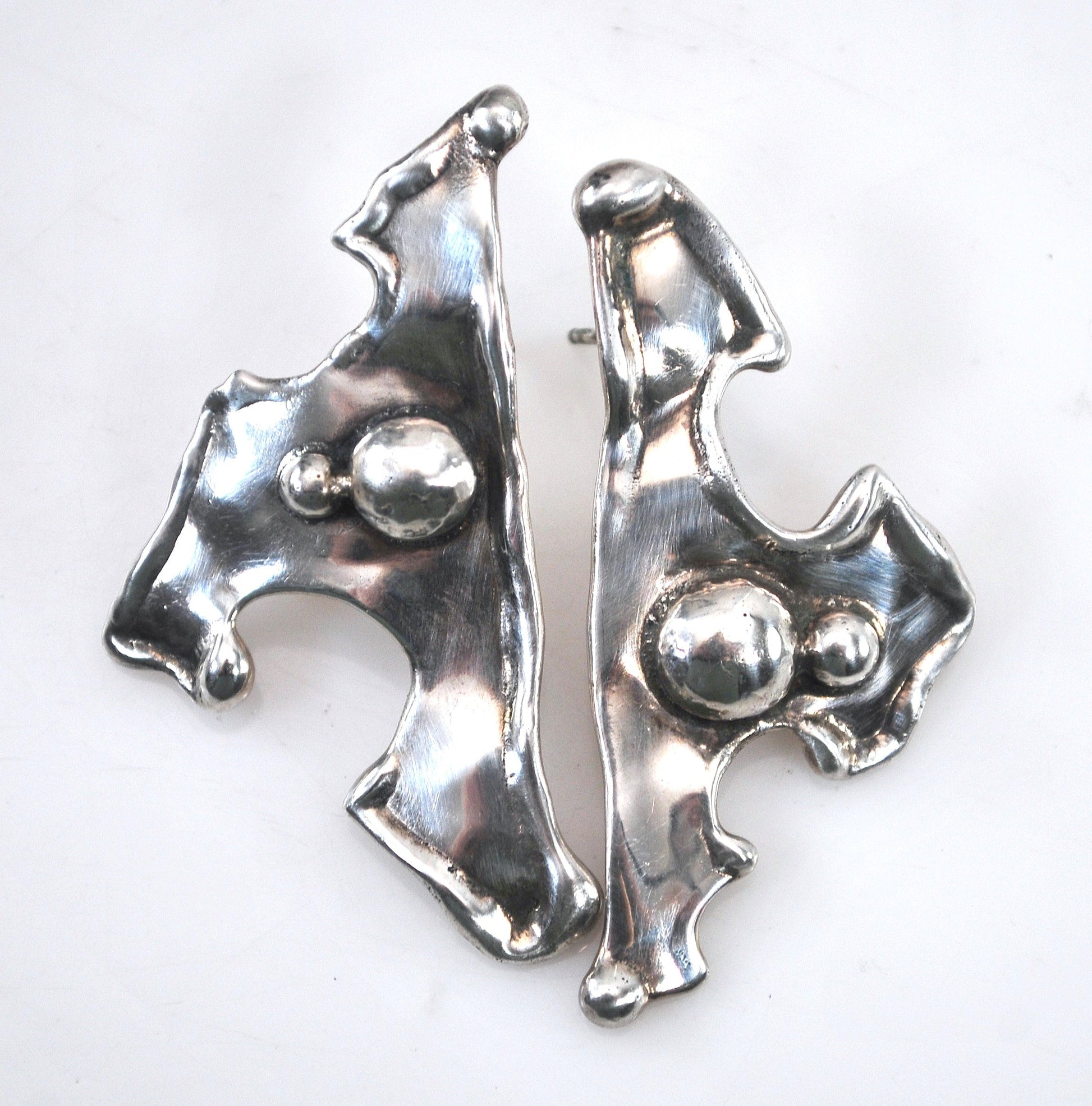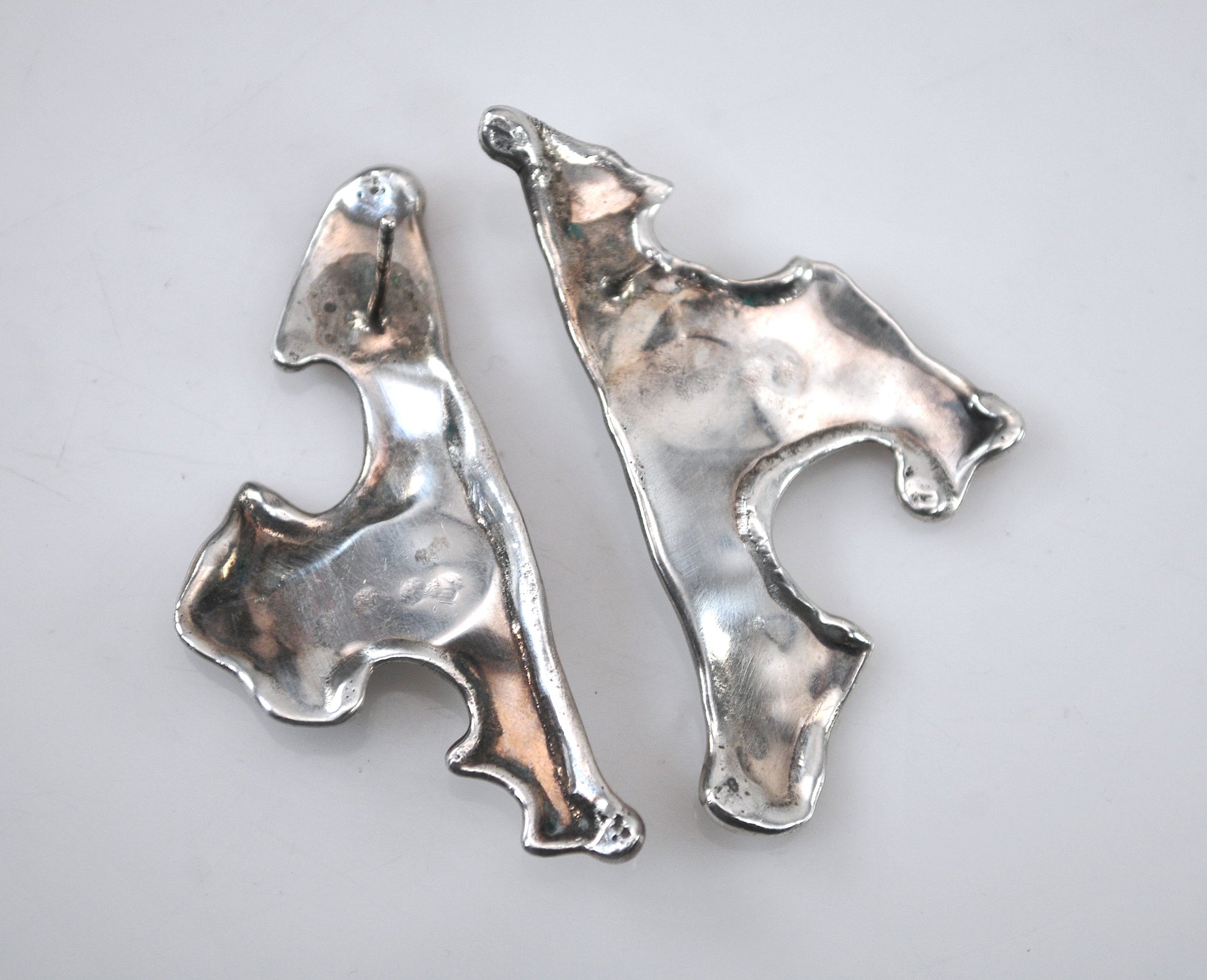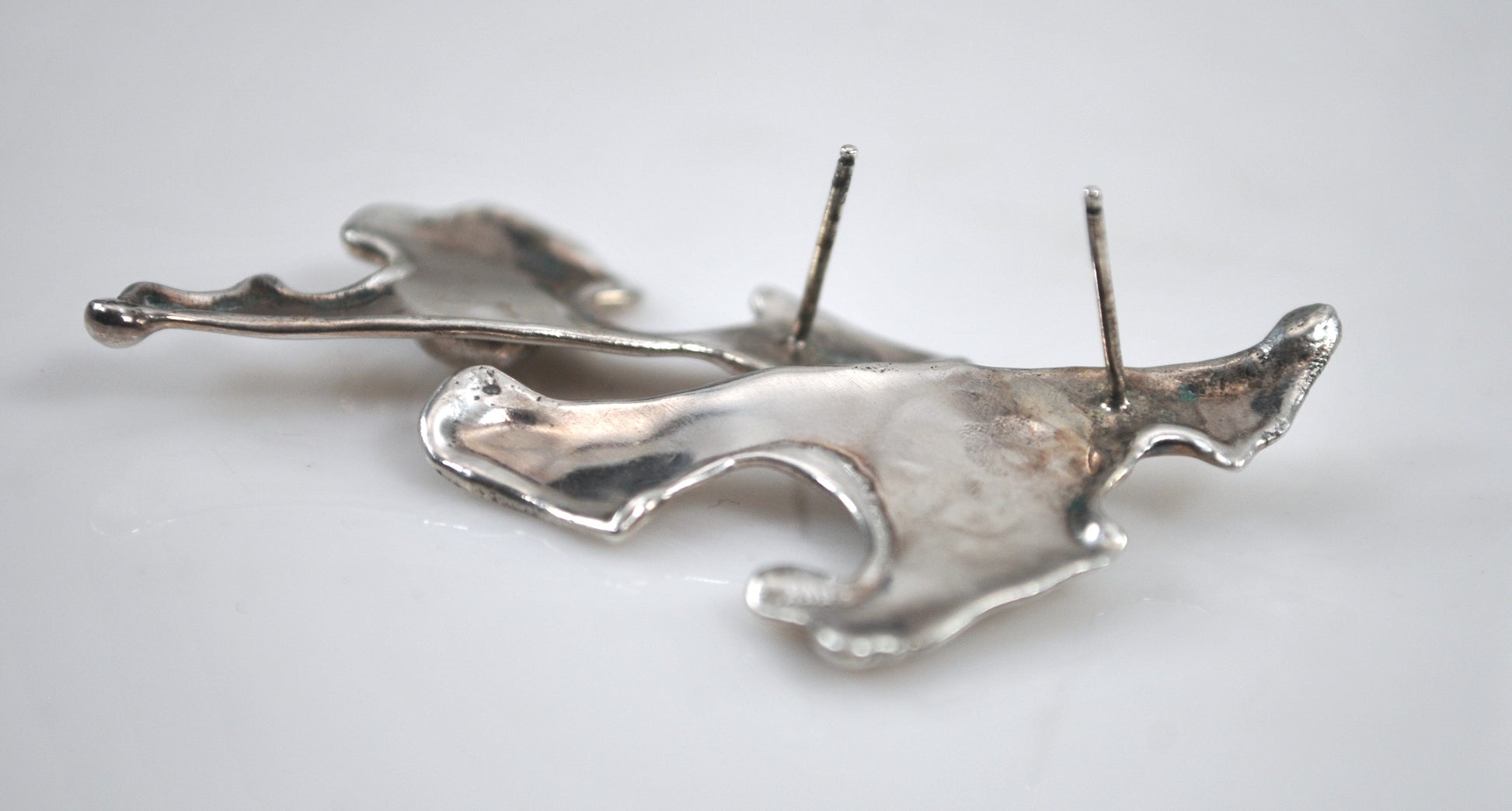 Freeform 925 drop stud earrings are unmarked and test as sterling silver. They come with silicone backs.
