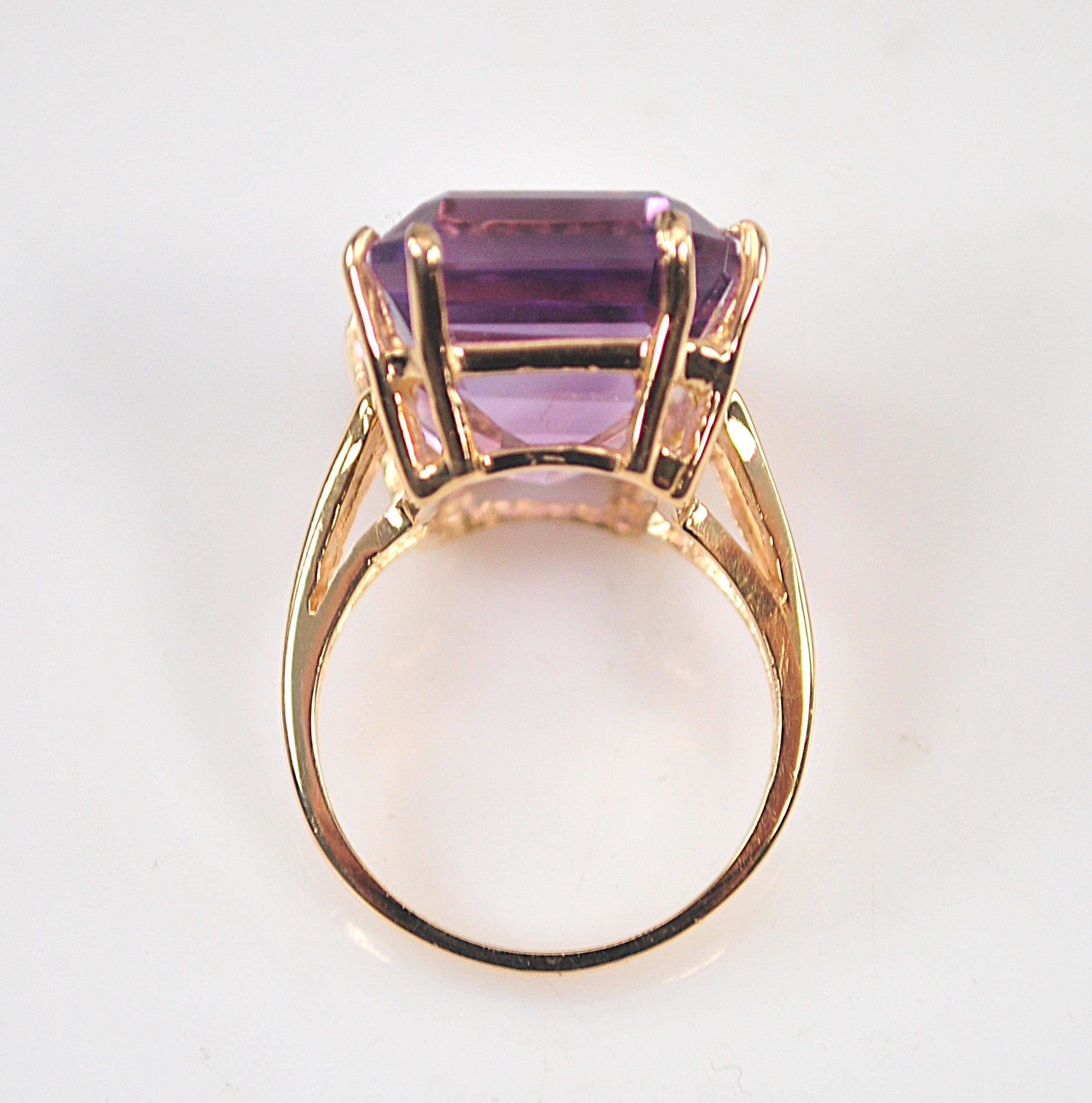 Huge Estate 14K Gold Emerald Cut Amethyst Ring