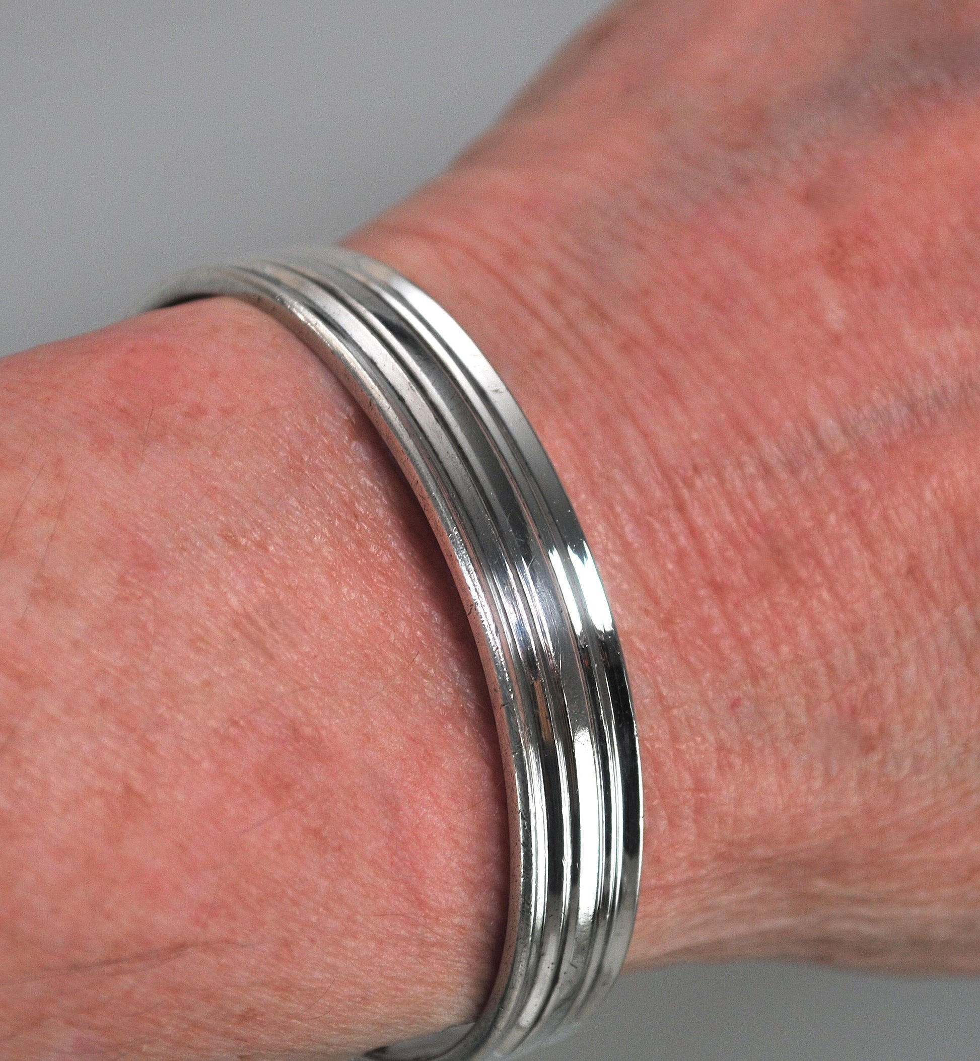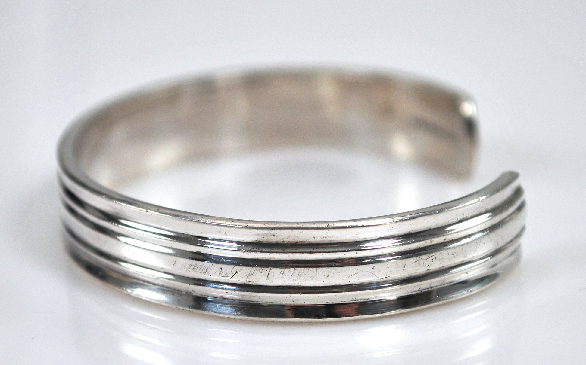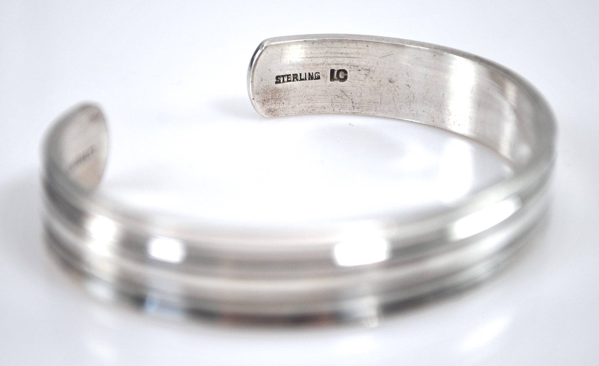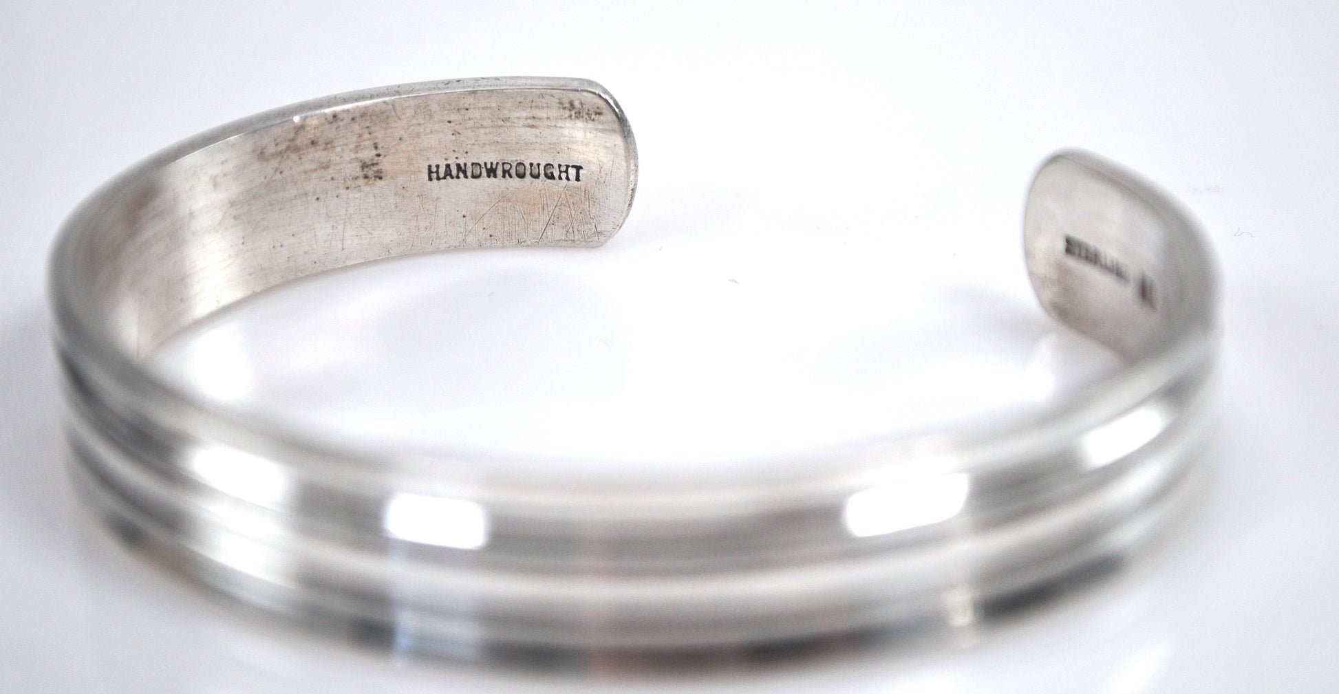 This bracelet is for a SMALL wrist, no larger than 6 inches. Handmade sterling silver cuff bracelet from the James Craig silversmith shop in Colonial Williamsburg is signed IC STERLING HANDWROUGHT.