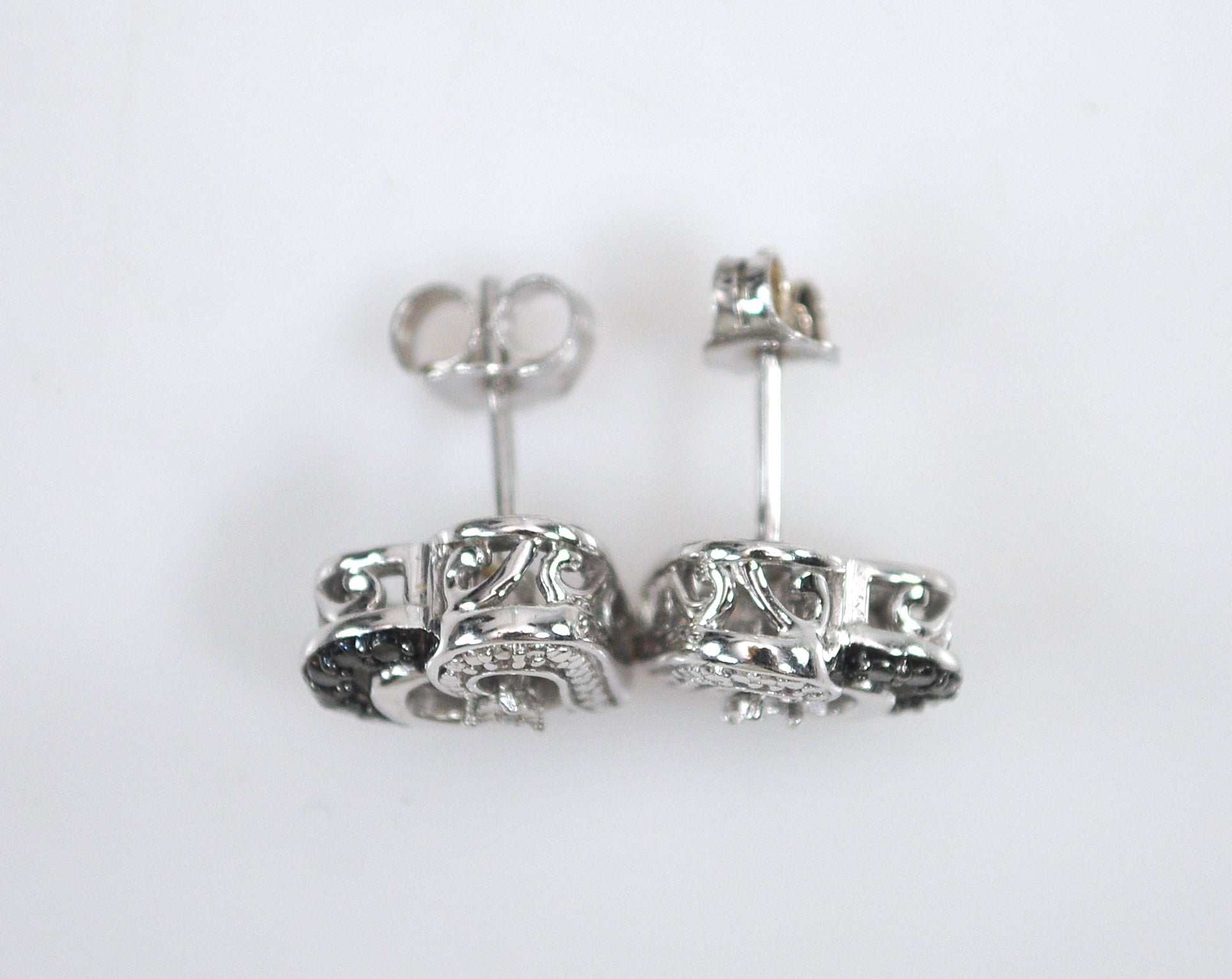 Jane Seymour Sterling Silver Black White Diamond Heart Stud Earrings