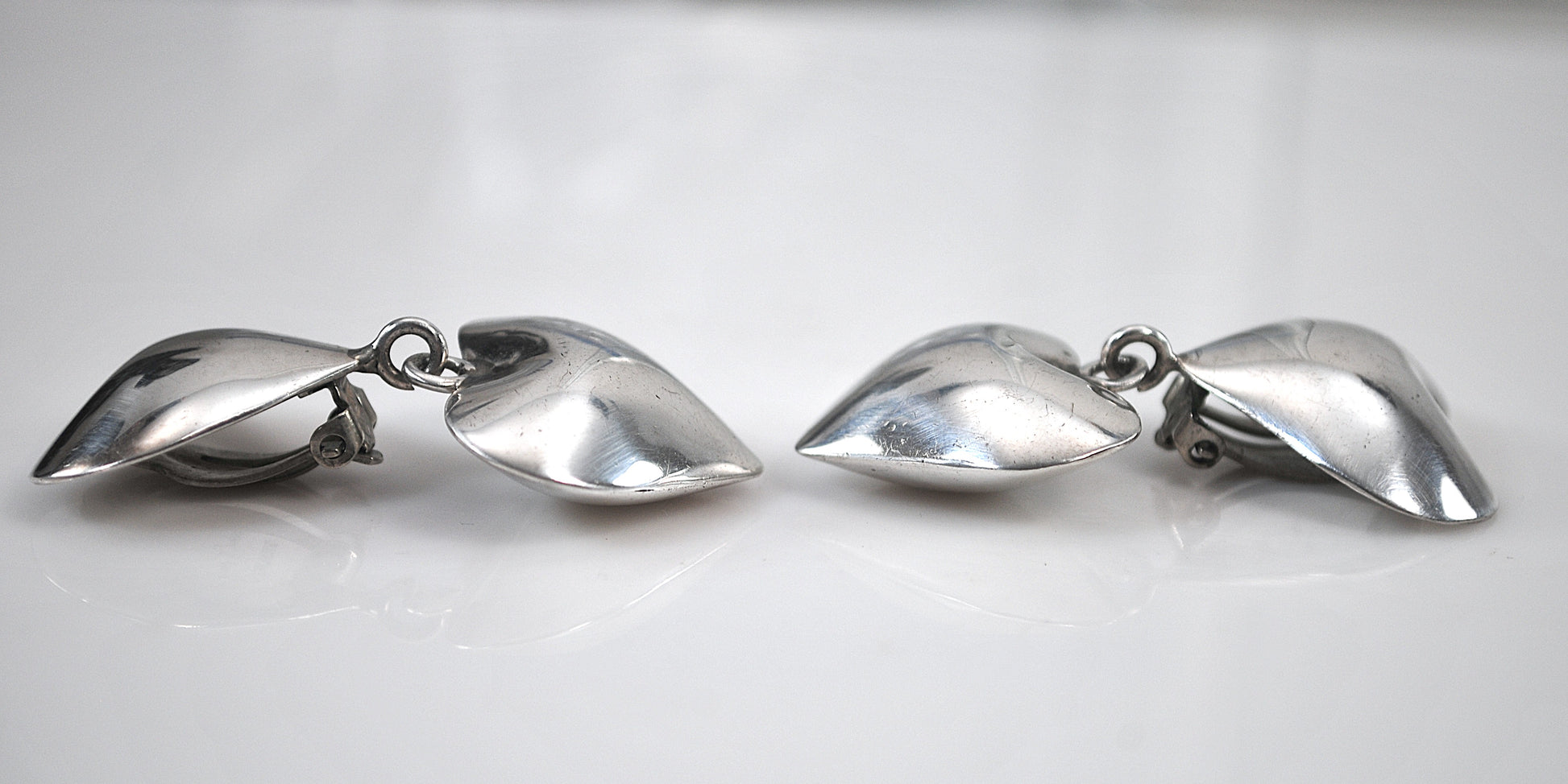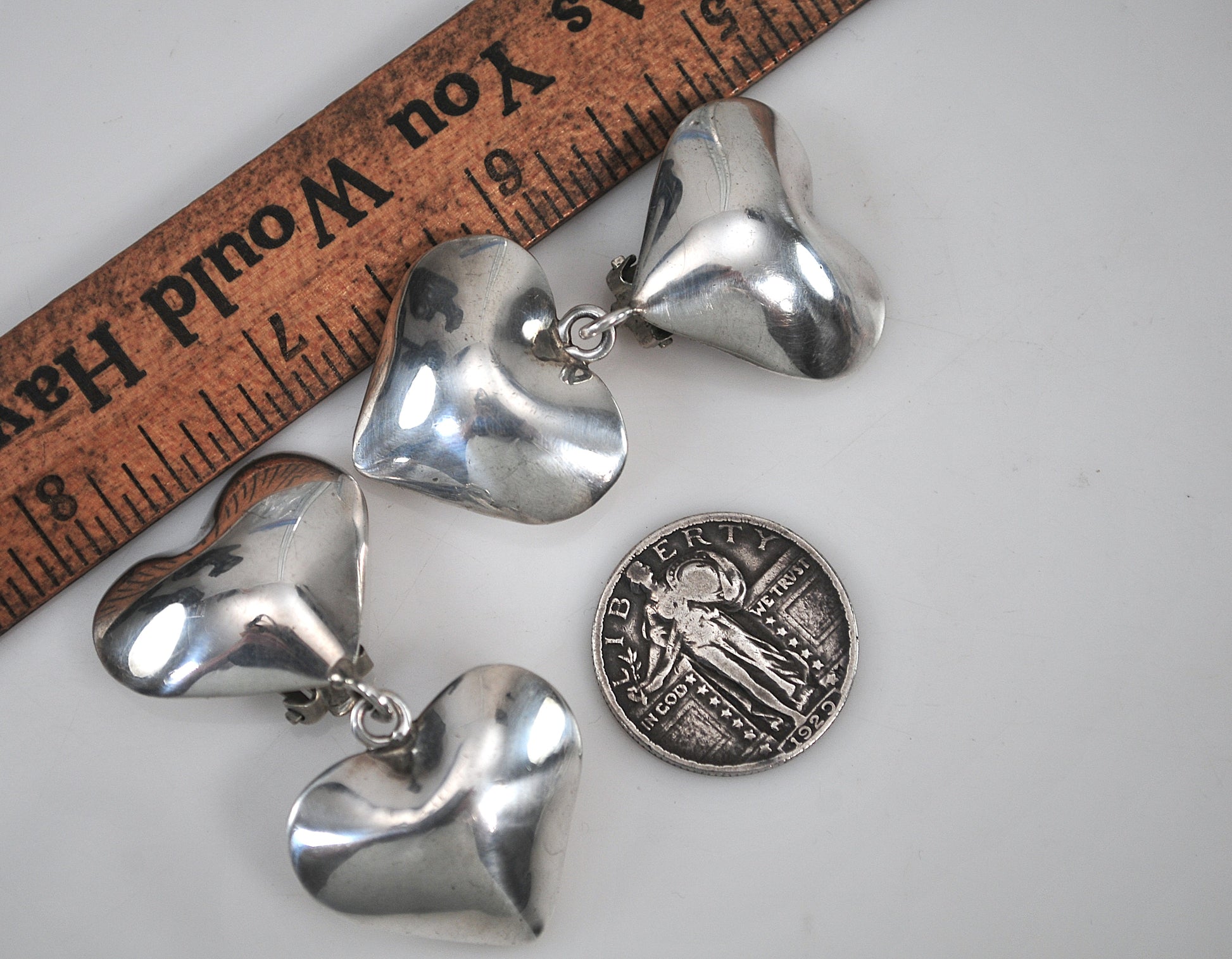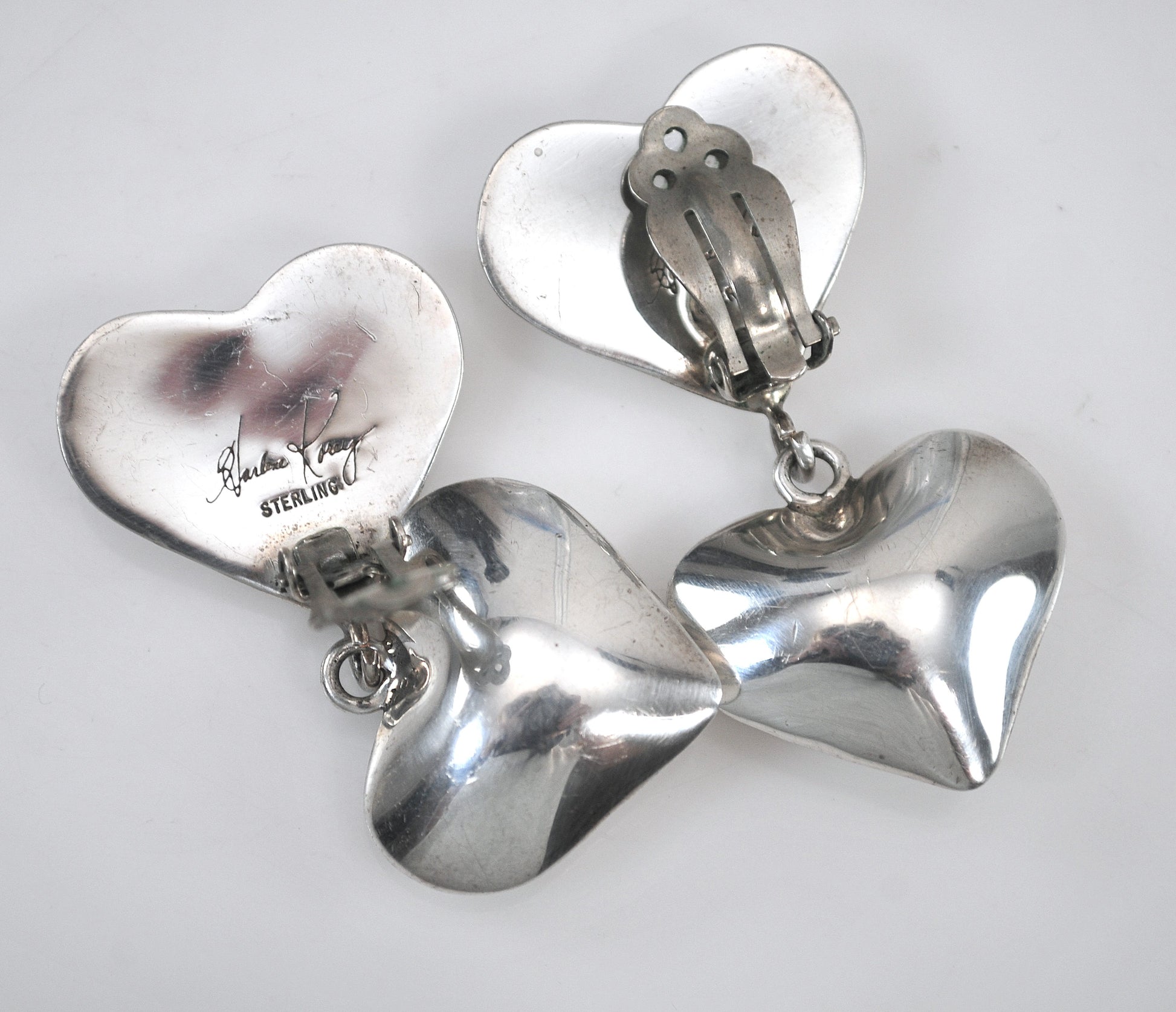 Vintage sterling silver Harlene Korey Kalibre linked double puffed heart clip on earrings are fully hallmarked.