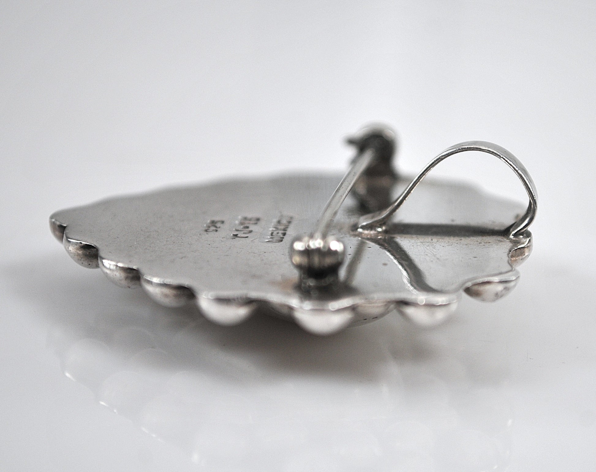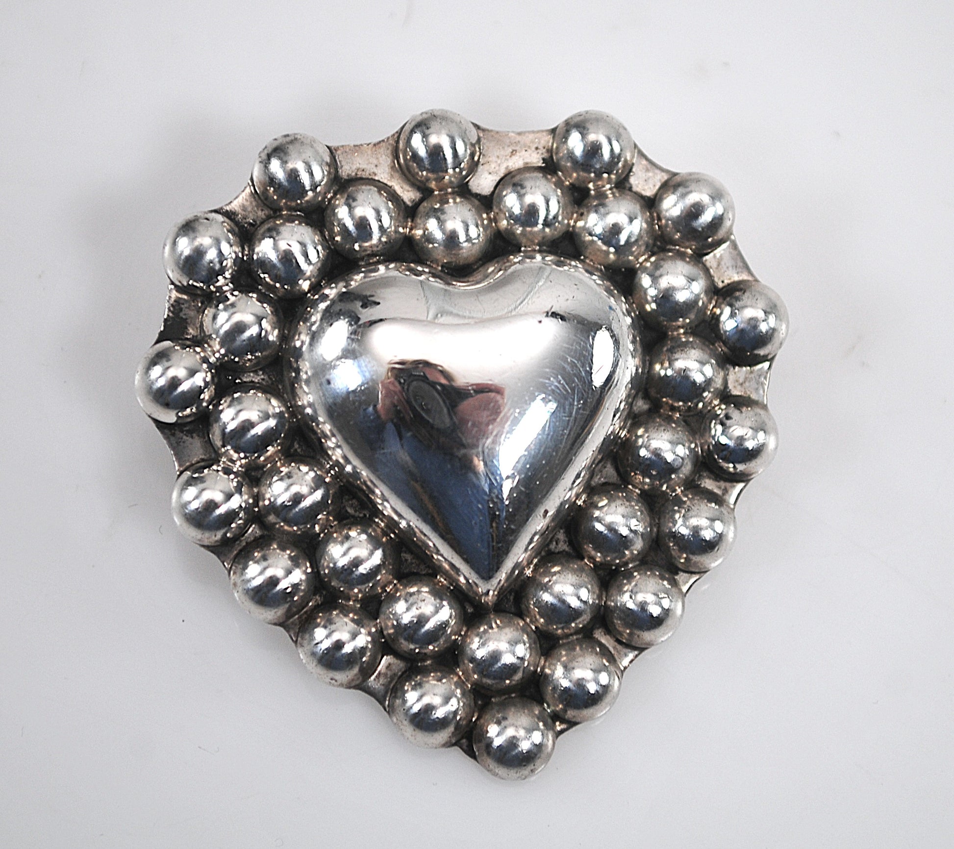 Large Sterling Silver Southwestern Heart Brooch Pendant