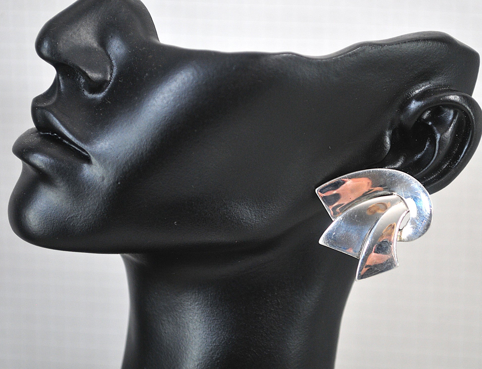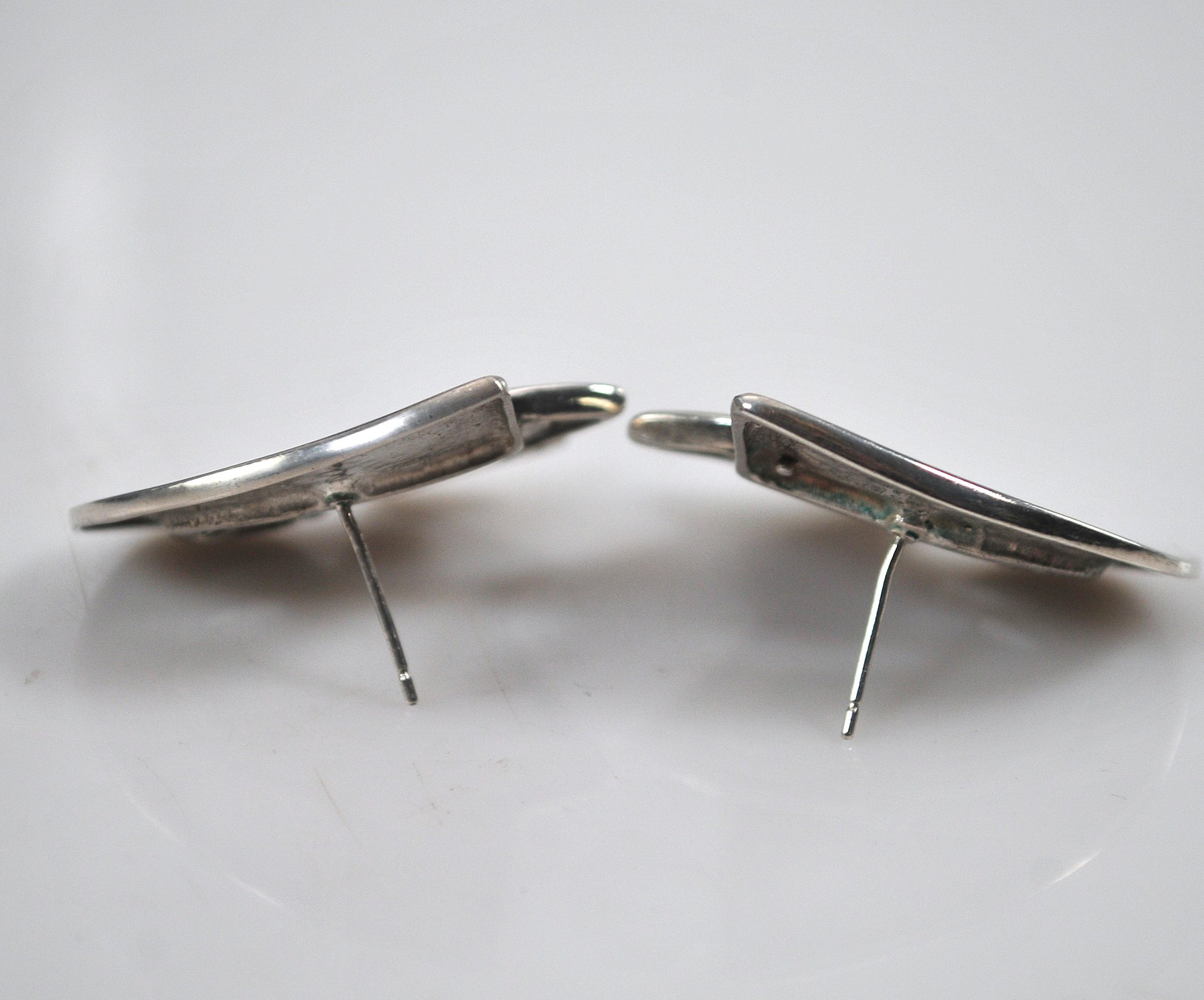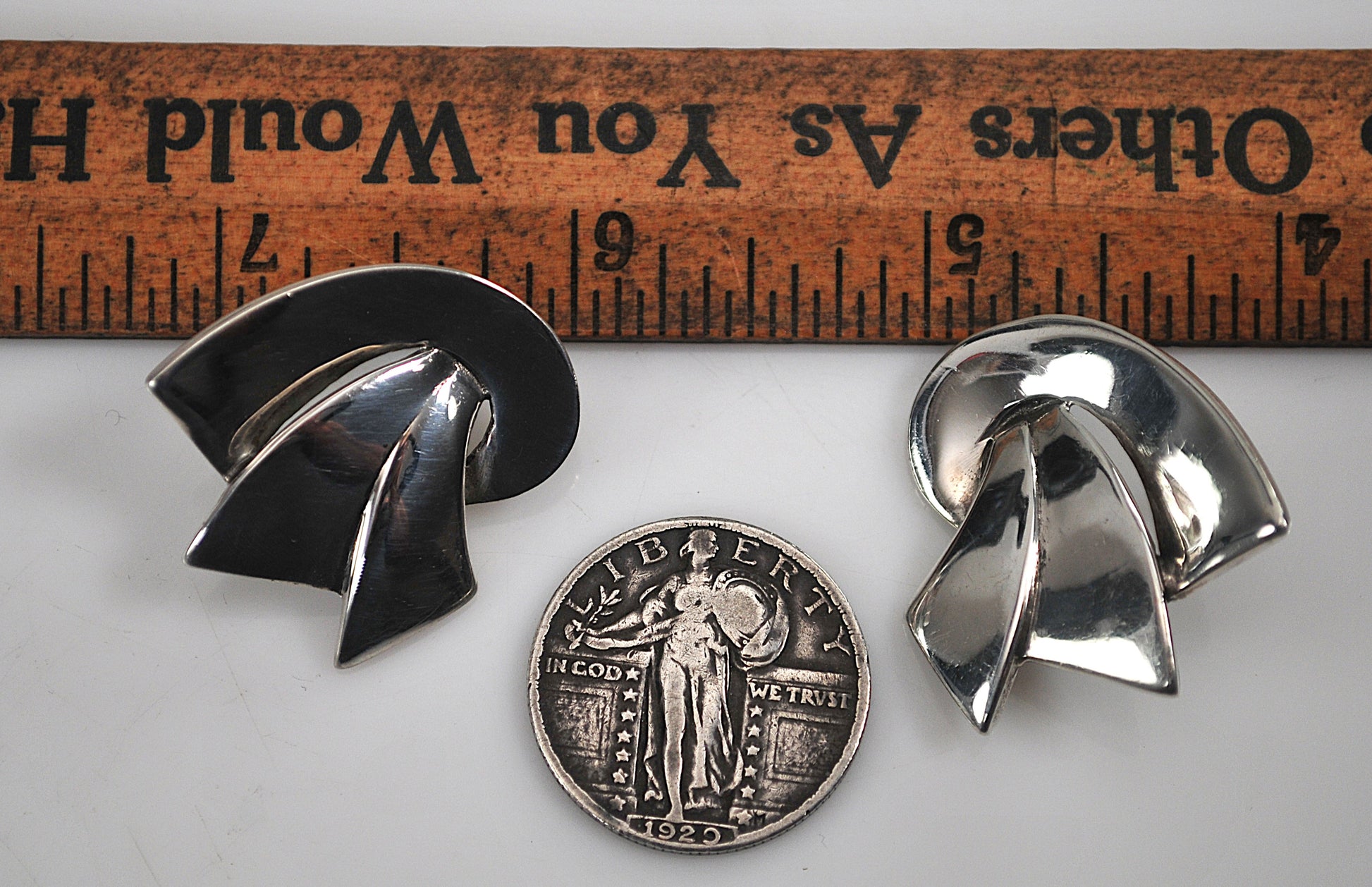 Designer Mark Wasserman Samara sterling silver modern stud earrings are signed MWS 925. These earrings are very shiny and offer a bold look without too much weight. They come with silicone backs.