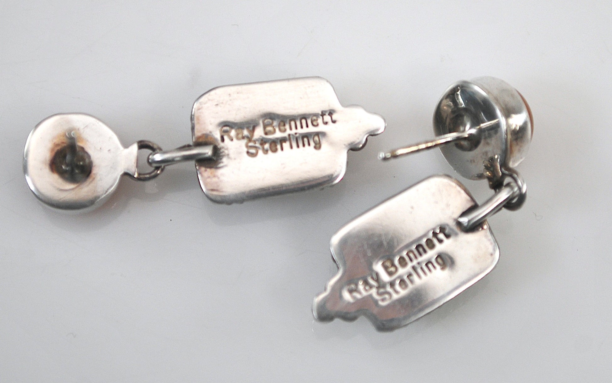 Ray Bennett Navajo Sterling Silver Green Turquoise Amber Earrings
