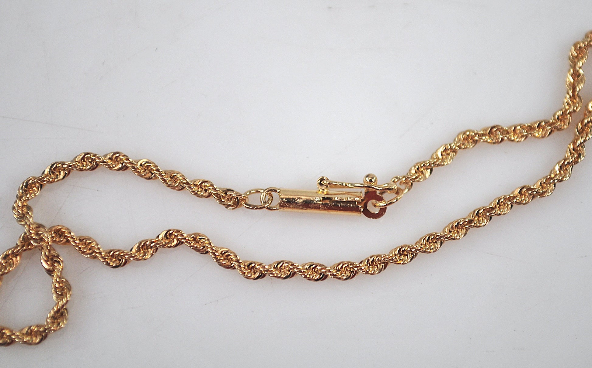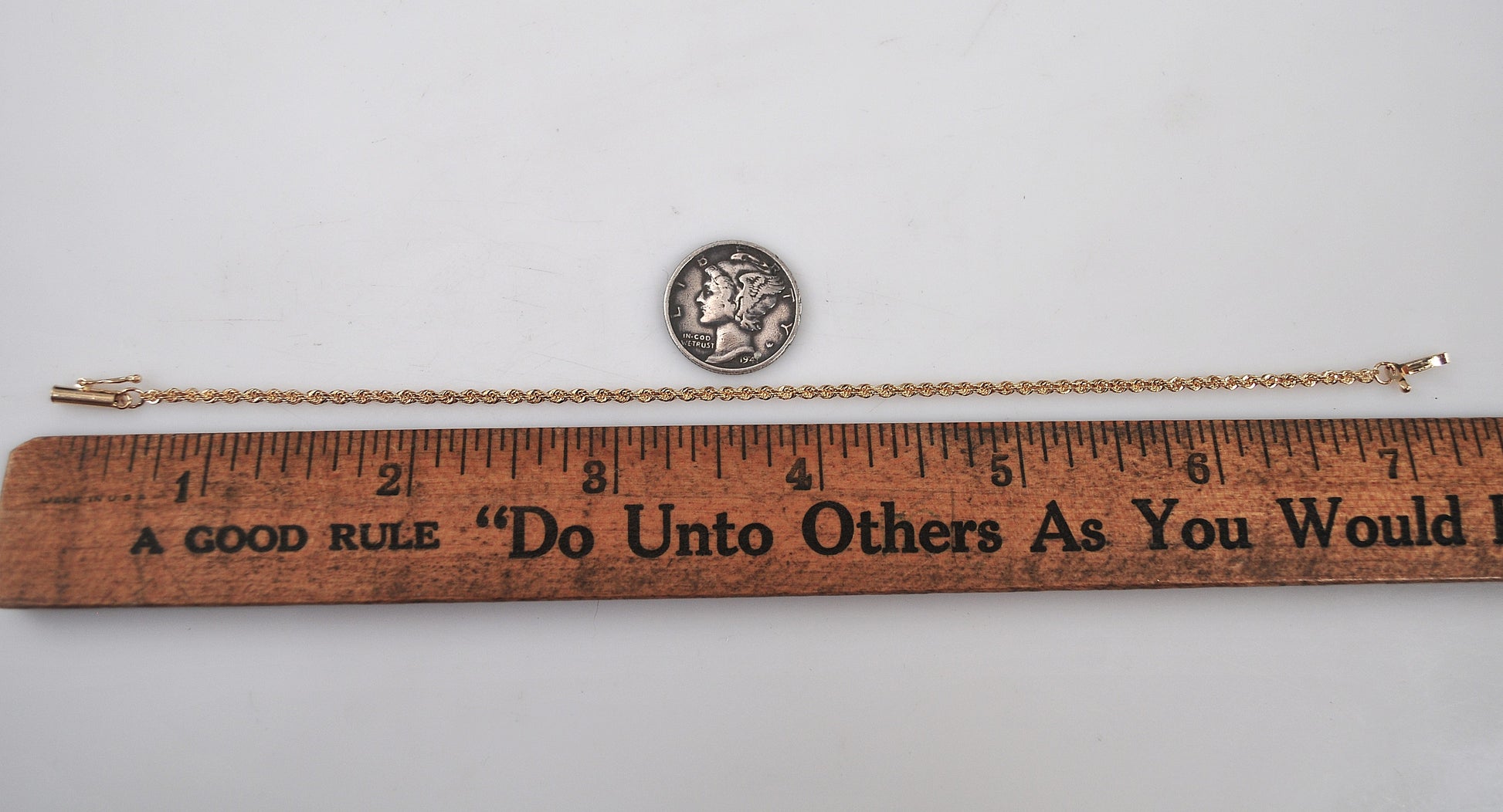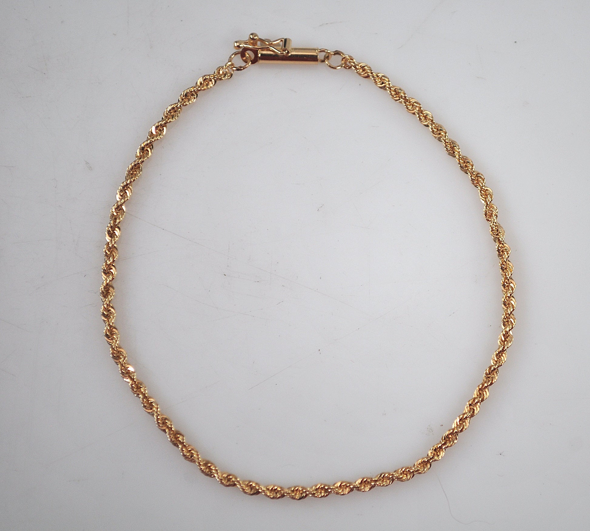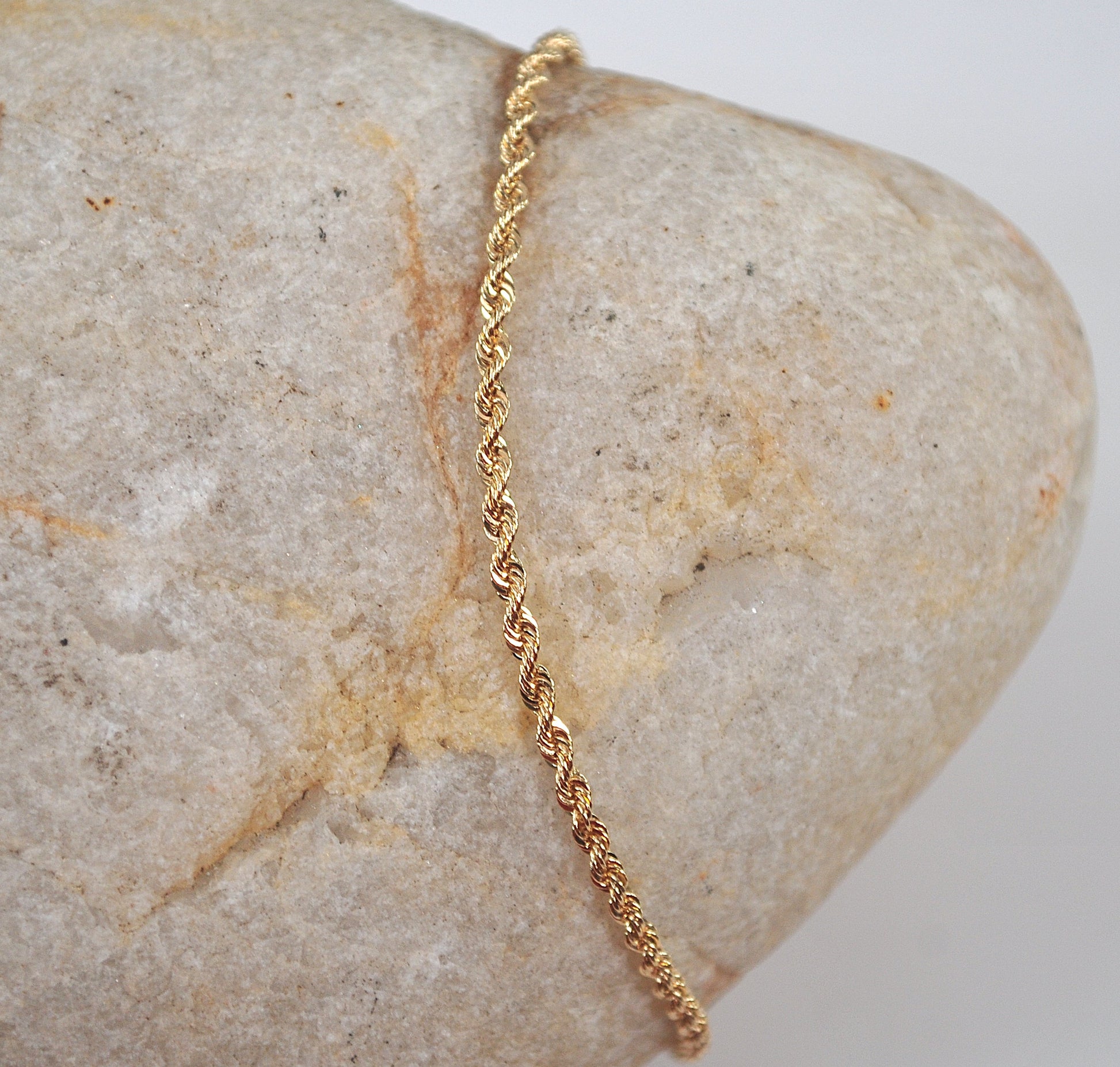 Dainty 1.5mm 14K yellow gold rope bracelet is signed JW 14K.