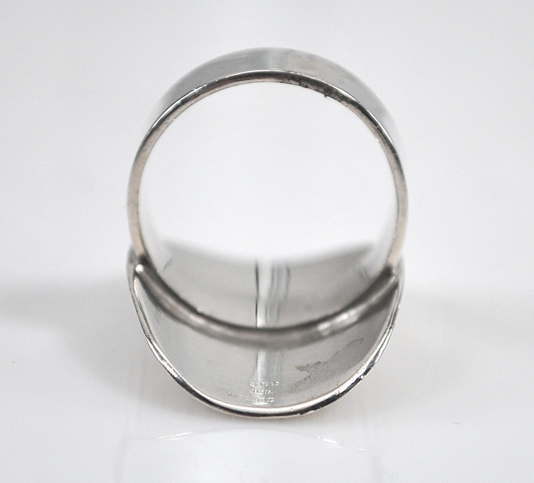 Designer Dominique Dinouart statement ring is signed DDD 925 Mexico and features long ribbed Diamond cuts. If you like bling, this ring is for you.