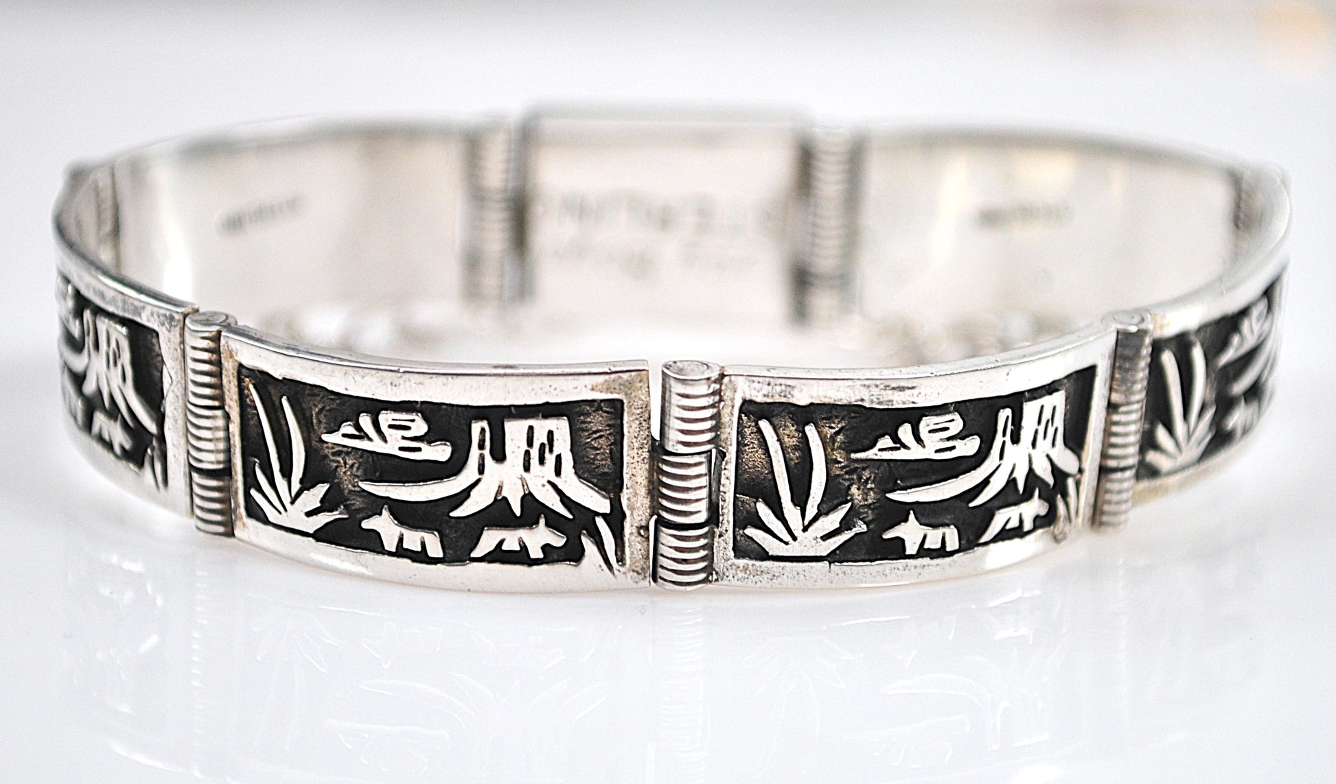 Signed Native American Sterling Silver Panel Bracelet