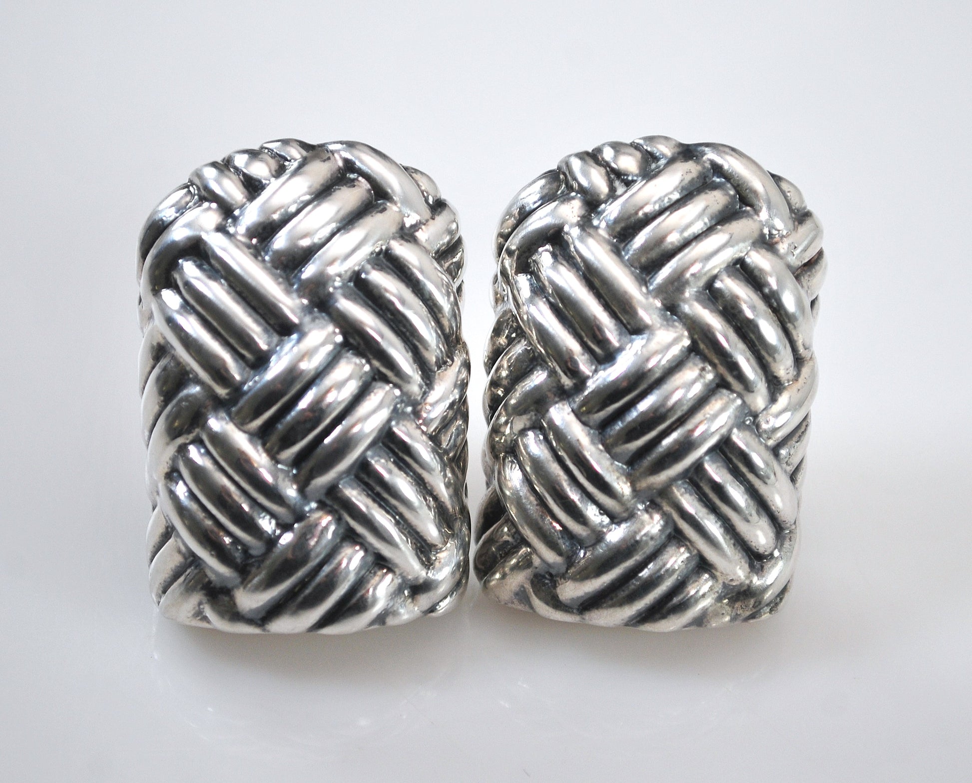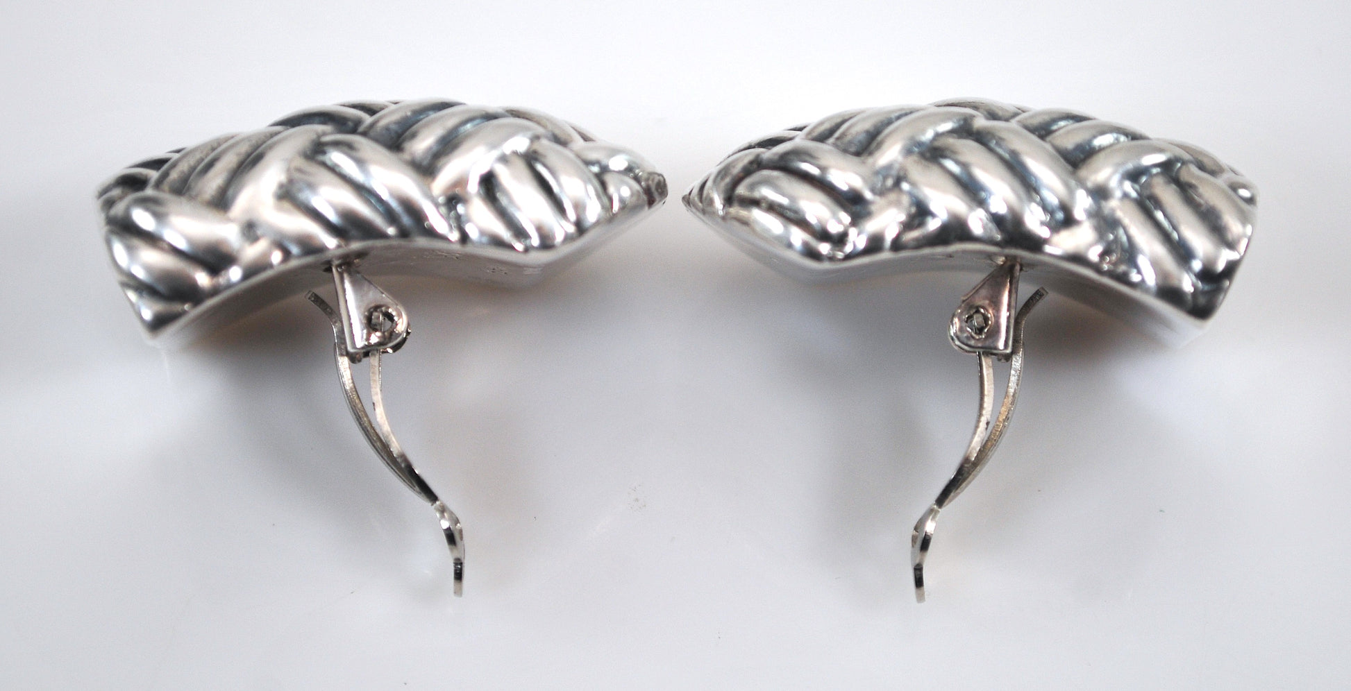Simon Sebbag Sterling Silver Basketweave Clip Earrings