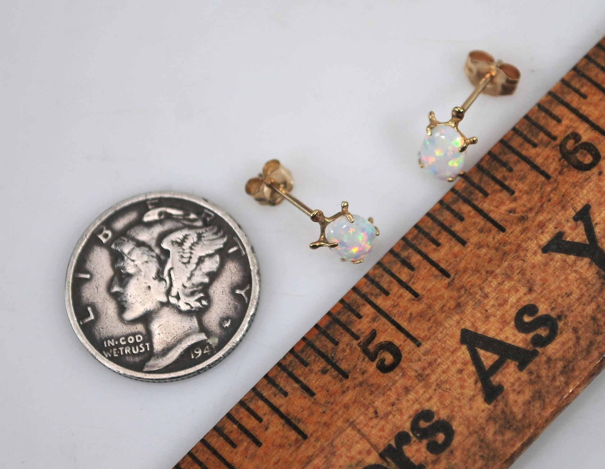 The earrings are 14K yellow gold and are signed CB 14K, and the backs are marked 10K gold. Tiny turtle stud earrings feature Opals for the bodies.