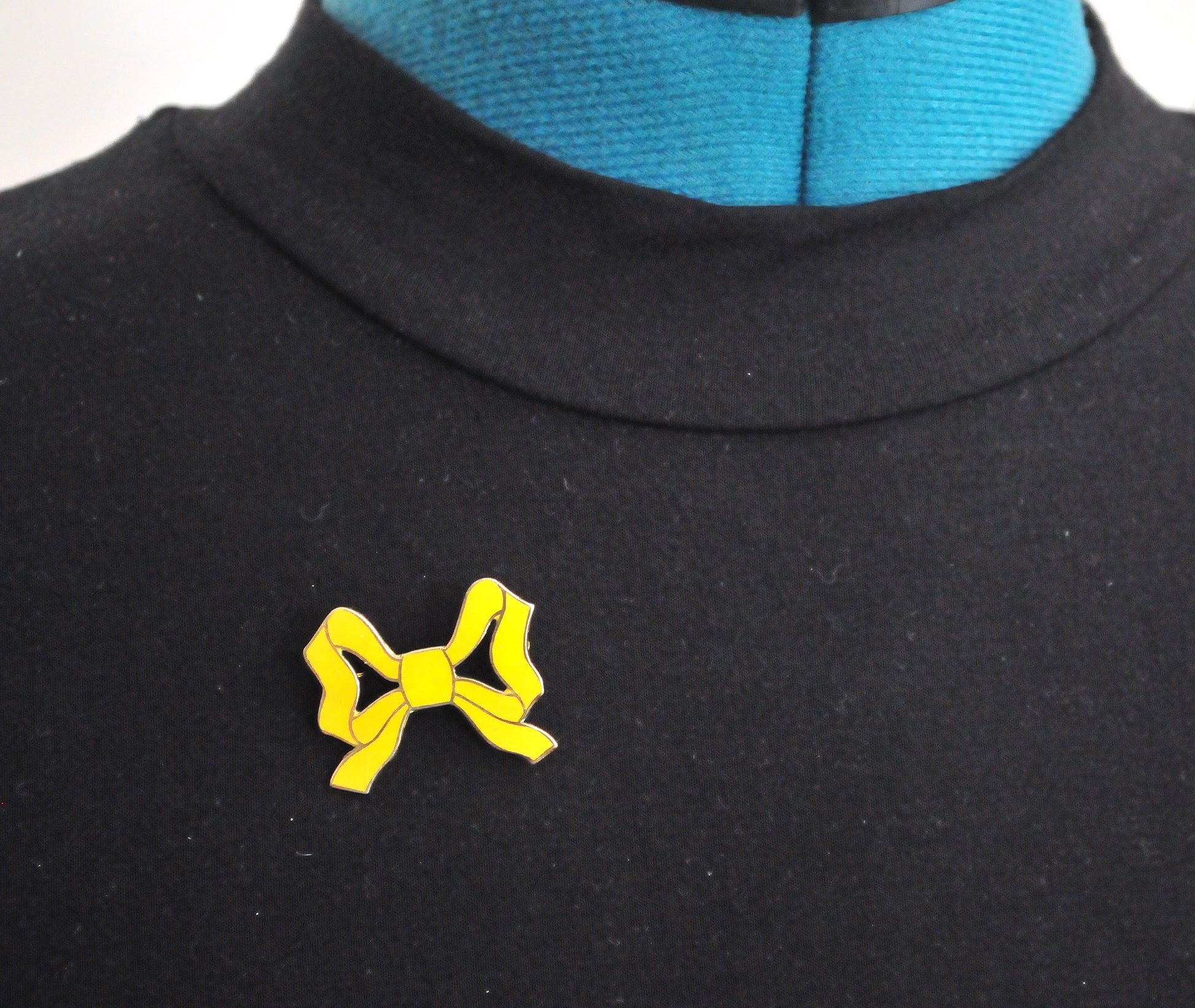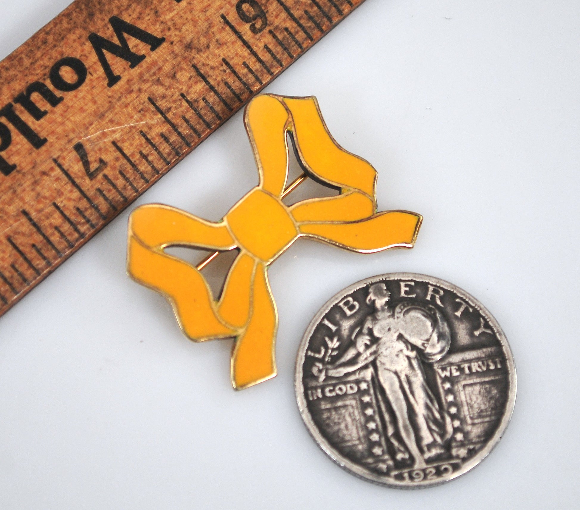 SMALL Signed Sterling Silver Enamel Bow Brooch