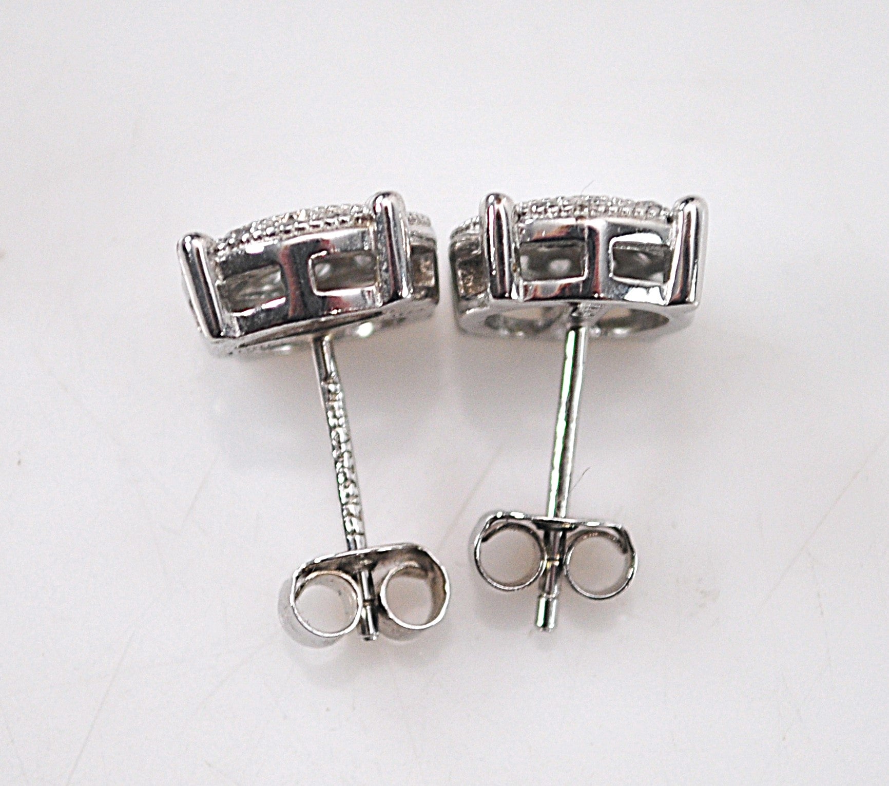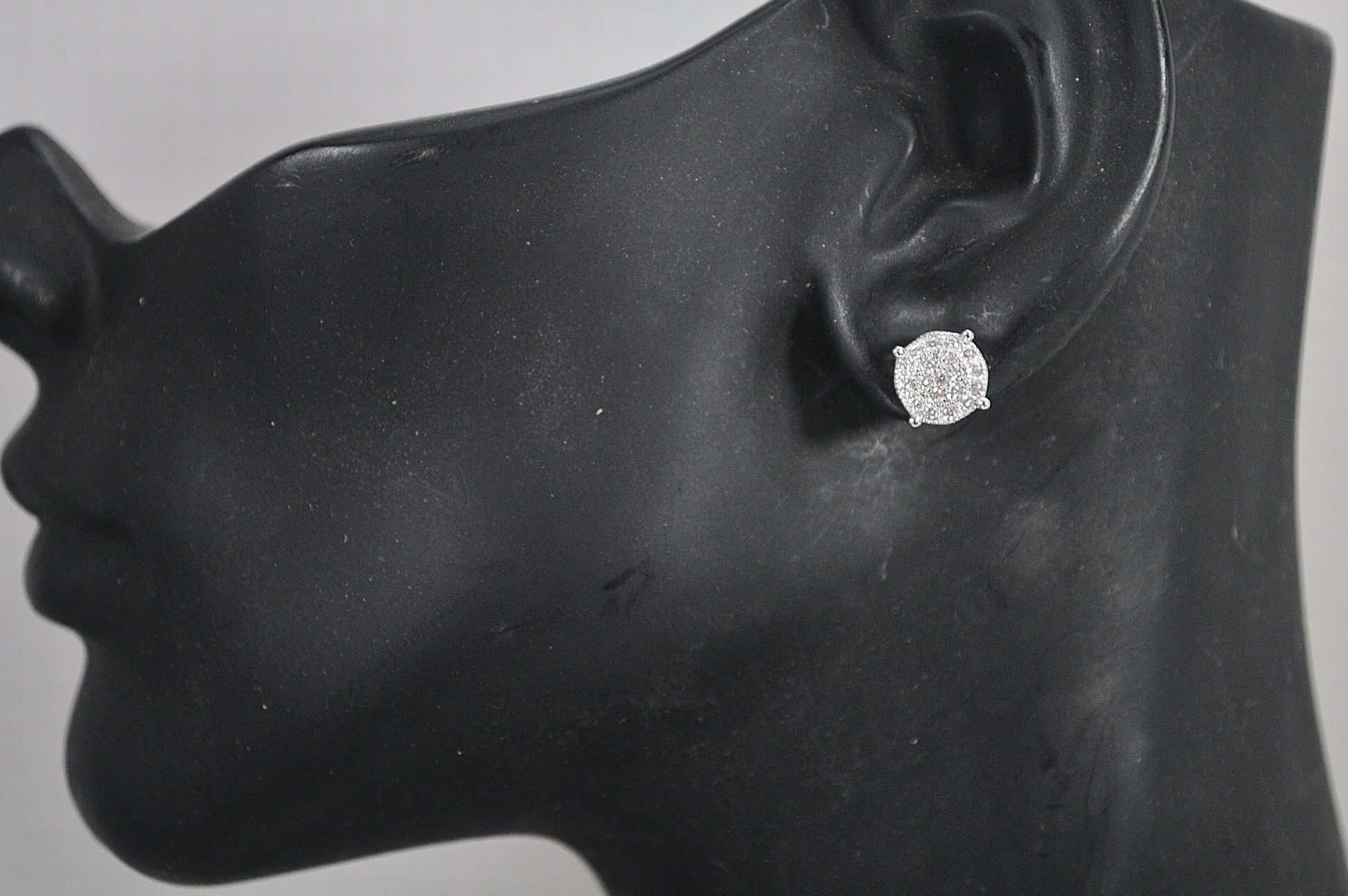 Super sparkly sterling silver stud earrings are signed FZN 925 China and feature two concentric circles of small round CZ's that look like Diamonds.