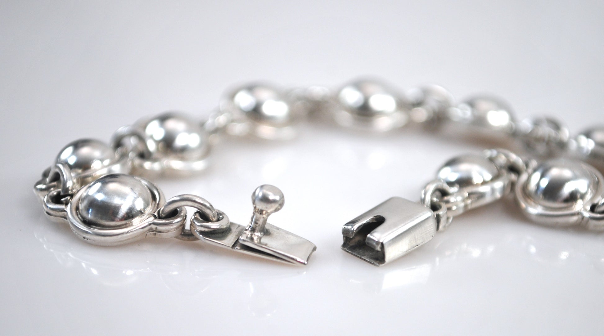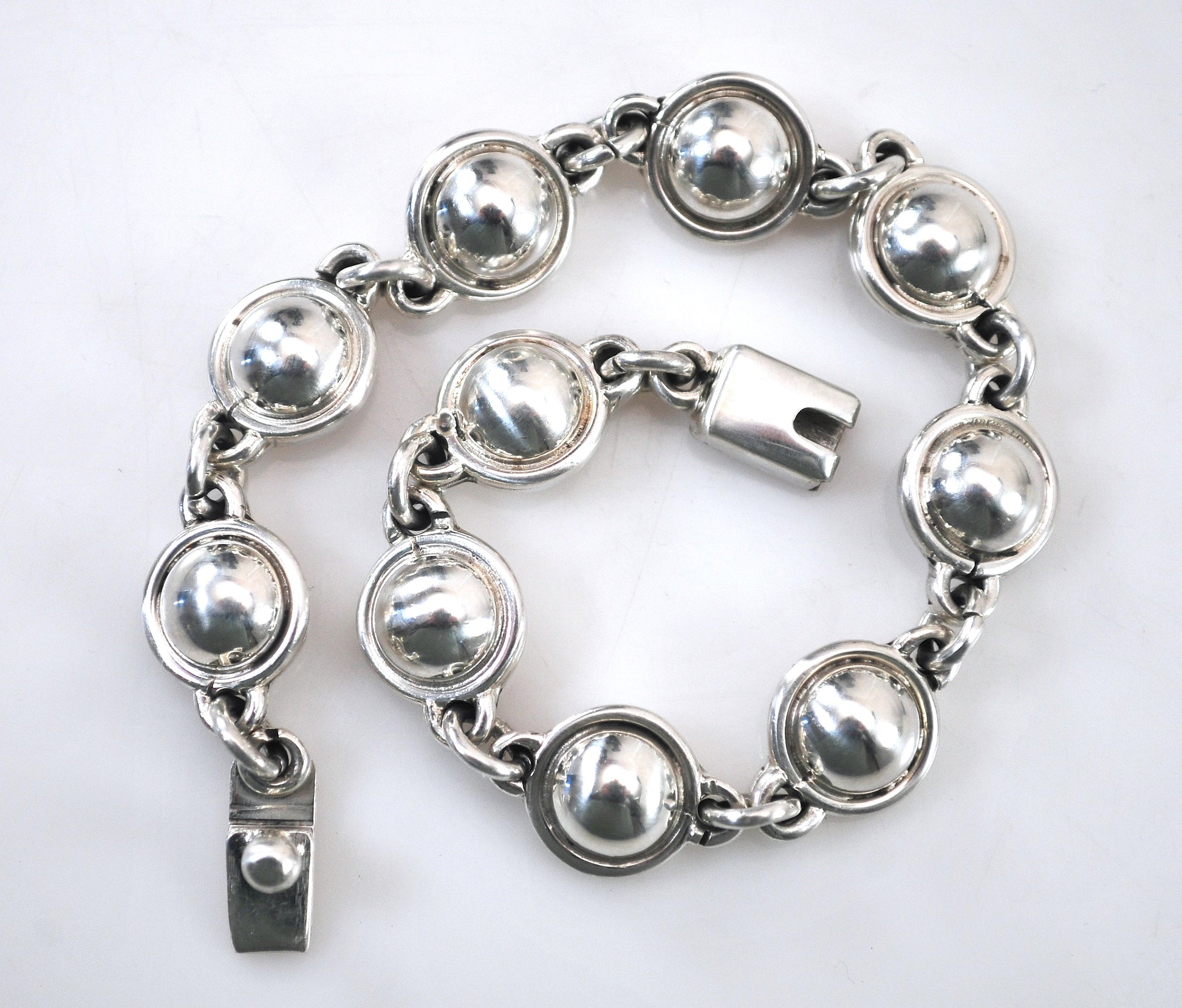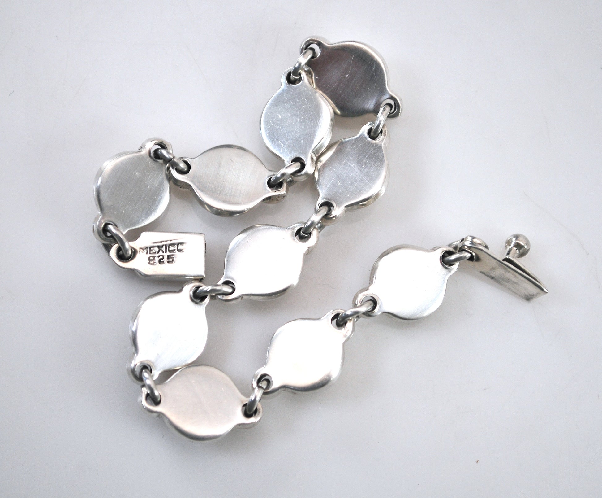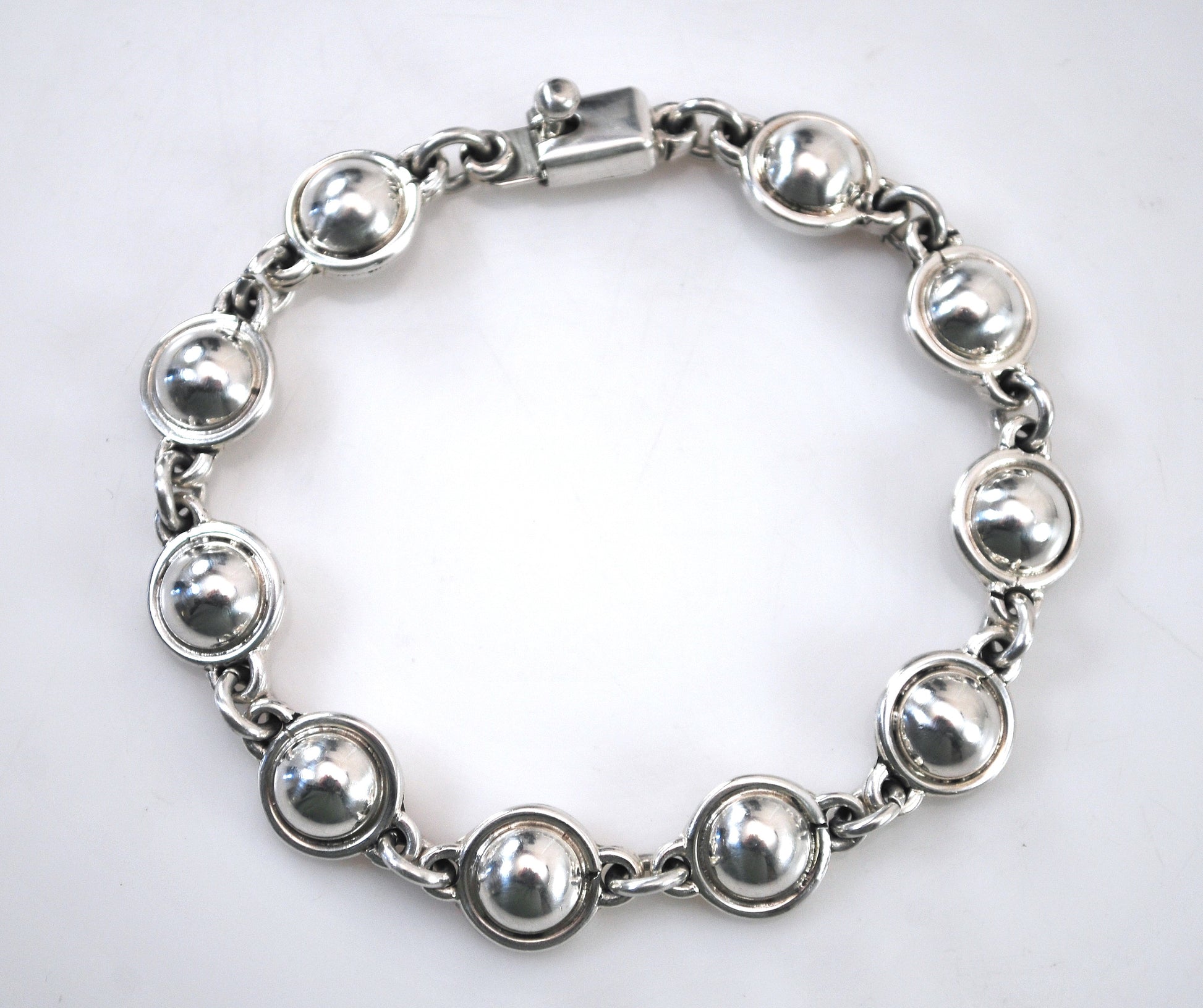 Solid sterling silver circle bracelet is marked 925 Mexico, and is very shiny and nicely made. A matching necklace is available under a separate listing.