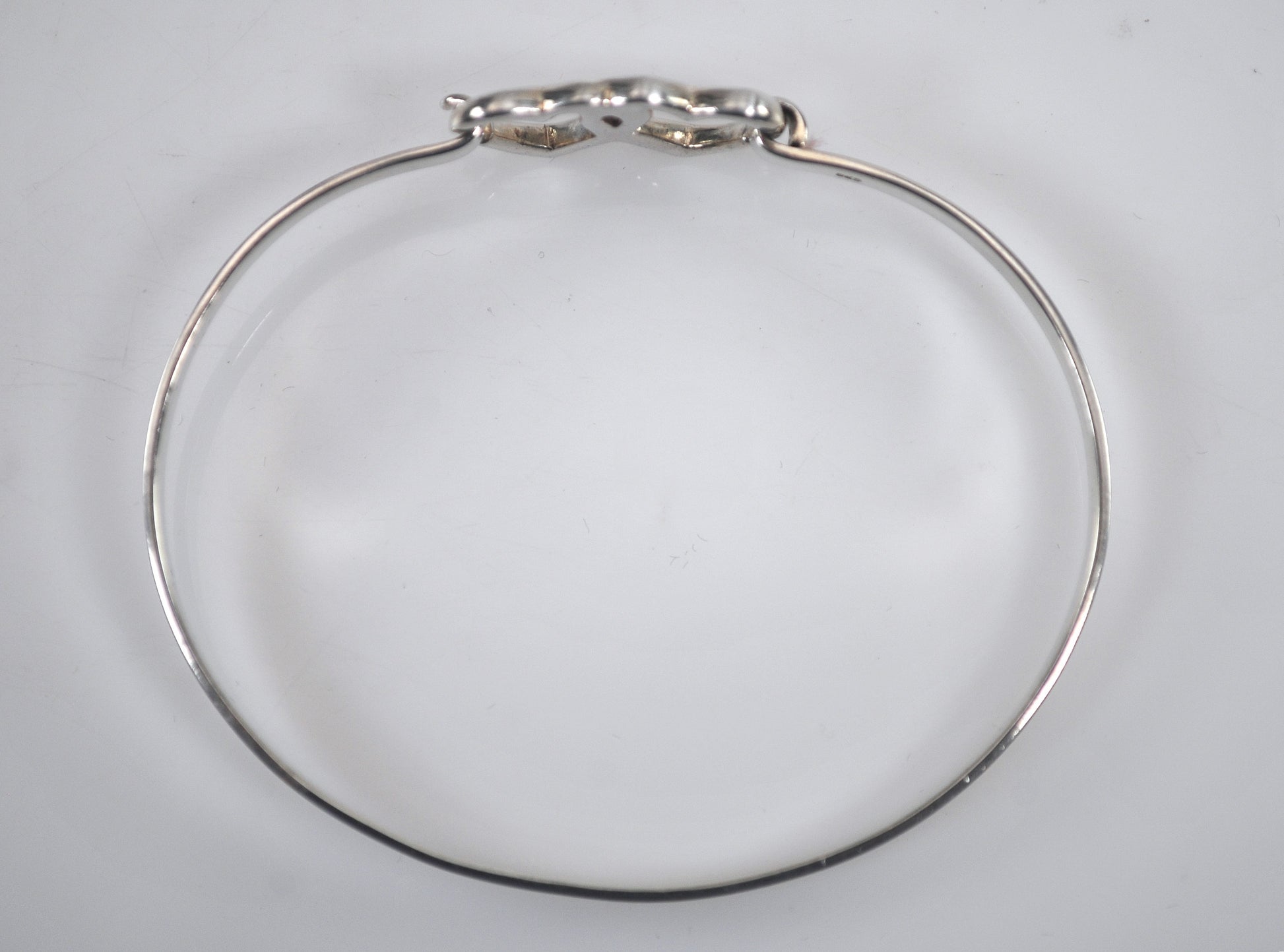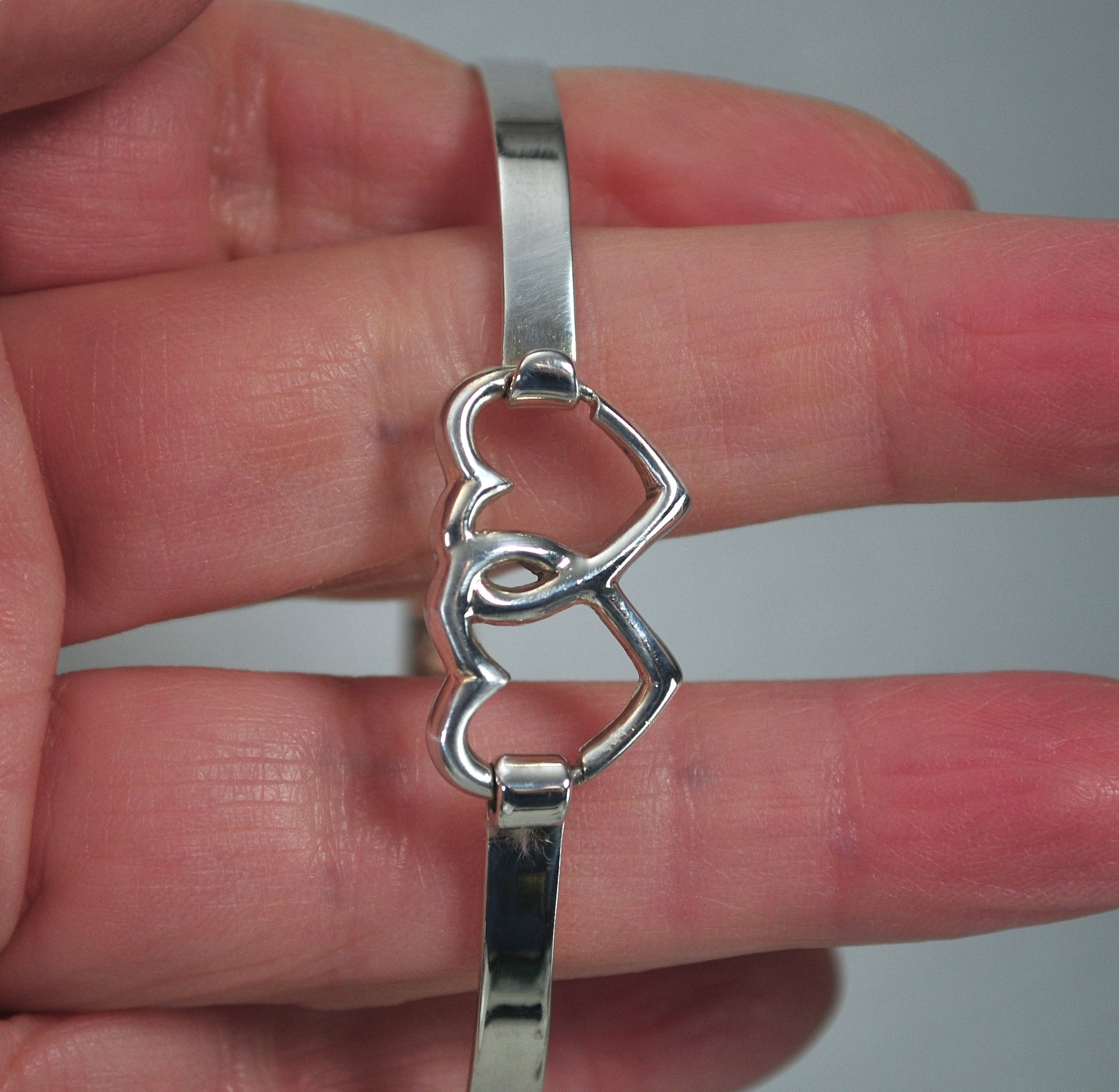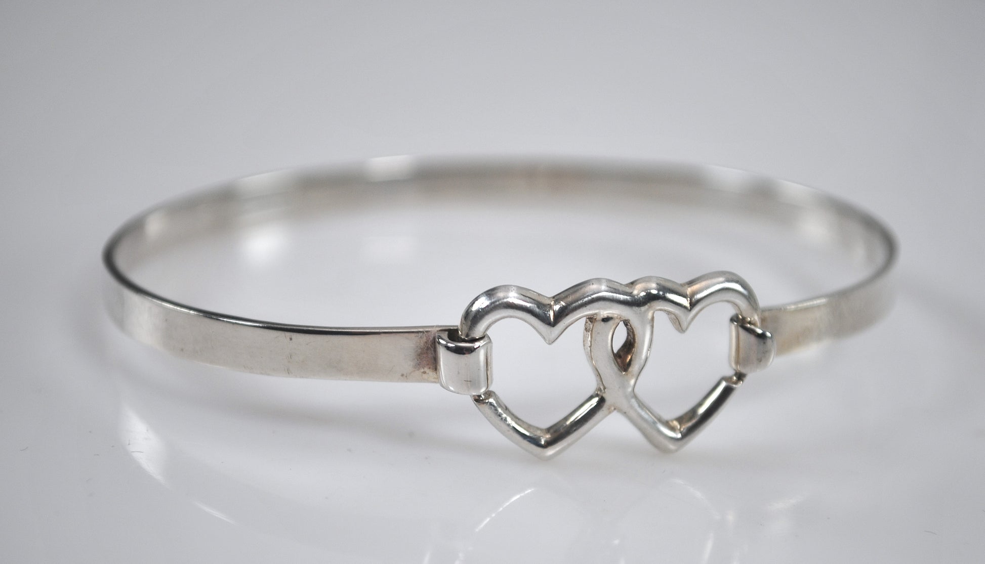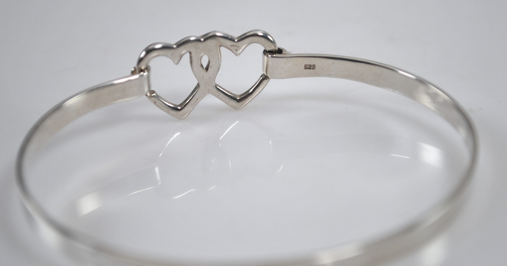 Sterling Silver Heart Hook Bangle Bracelet