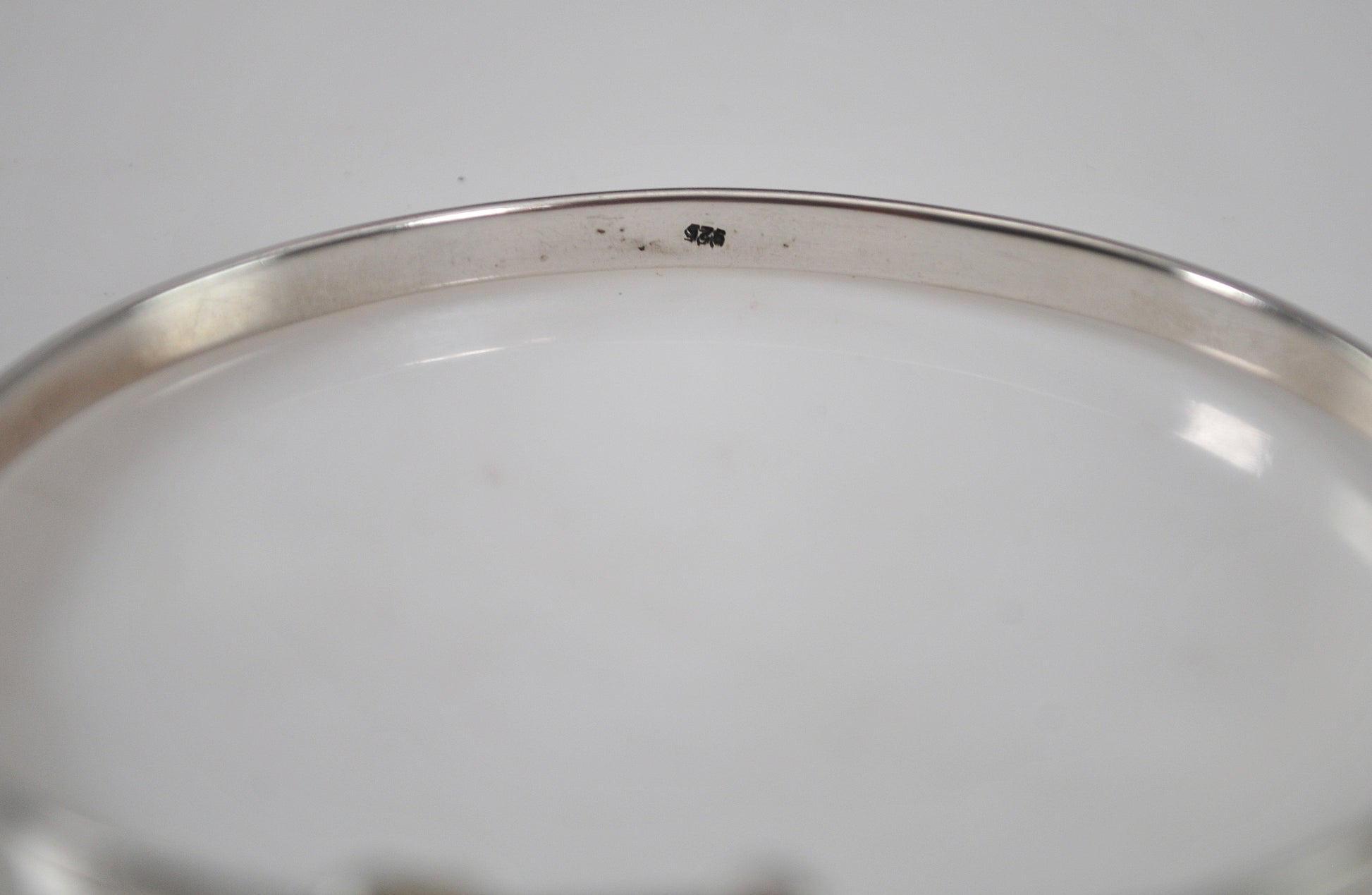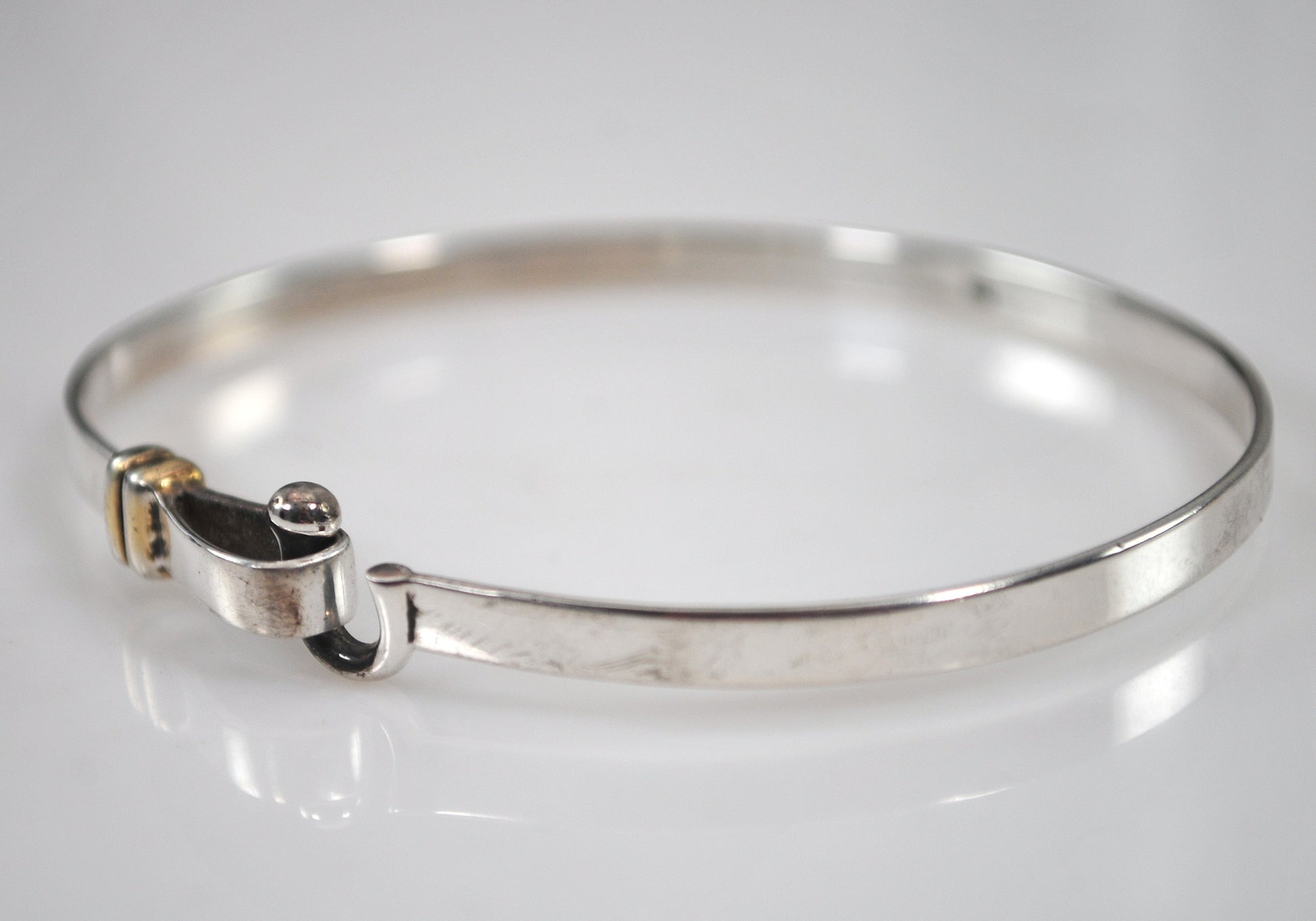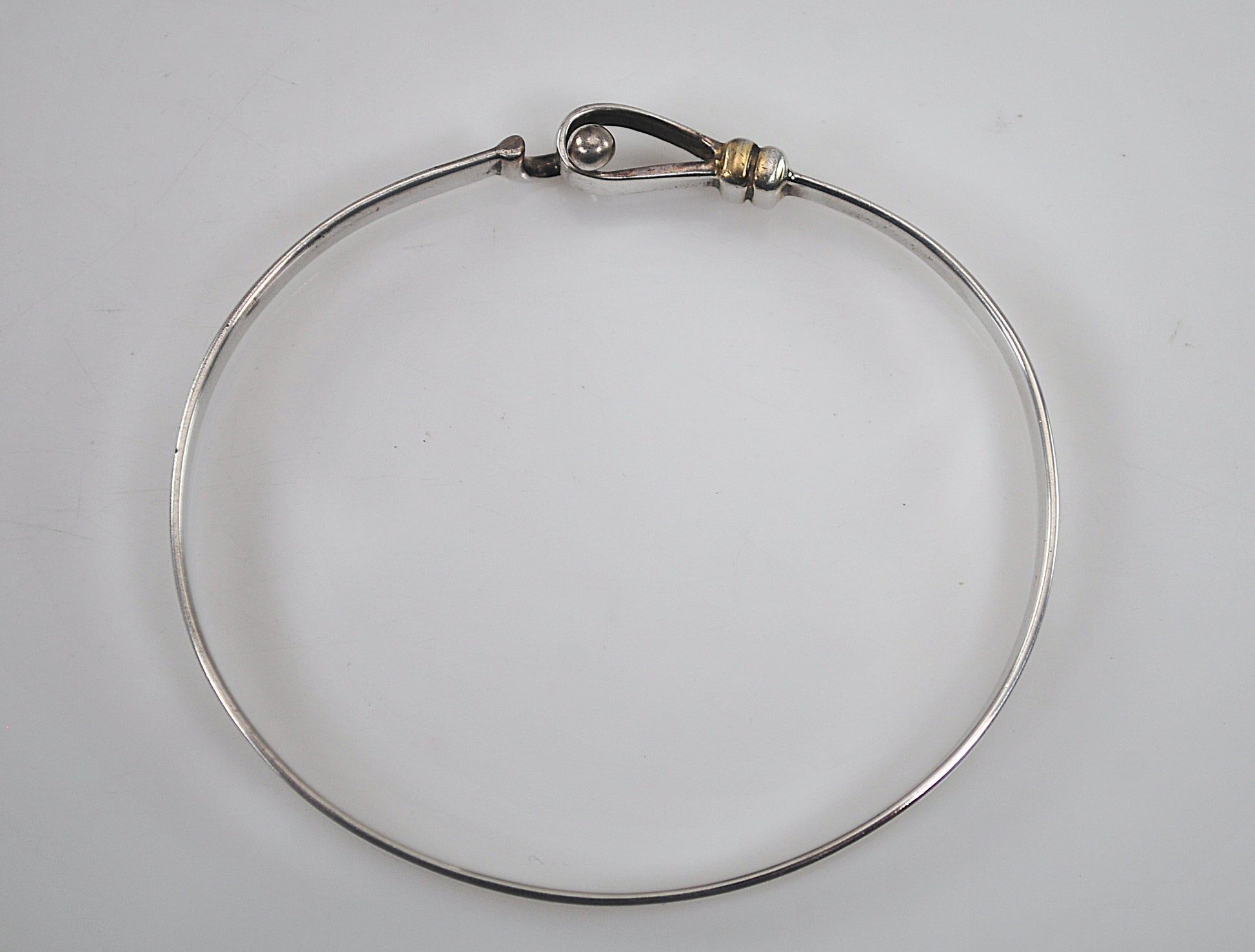 Sterling silver oval horseshoe hook bangle bracelet is marked 925.