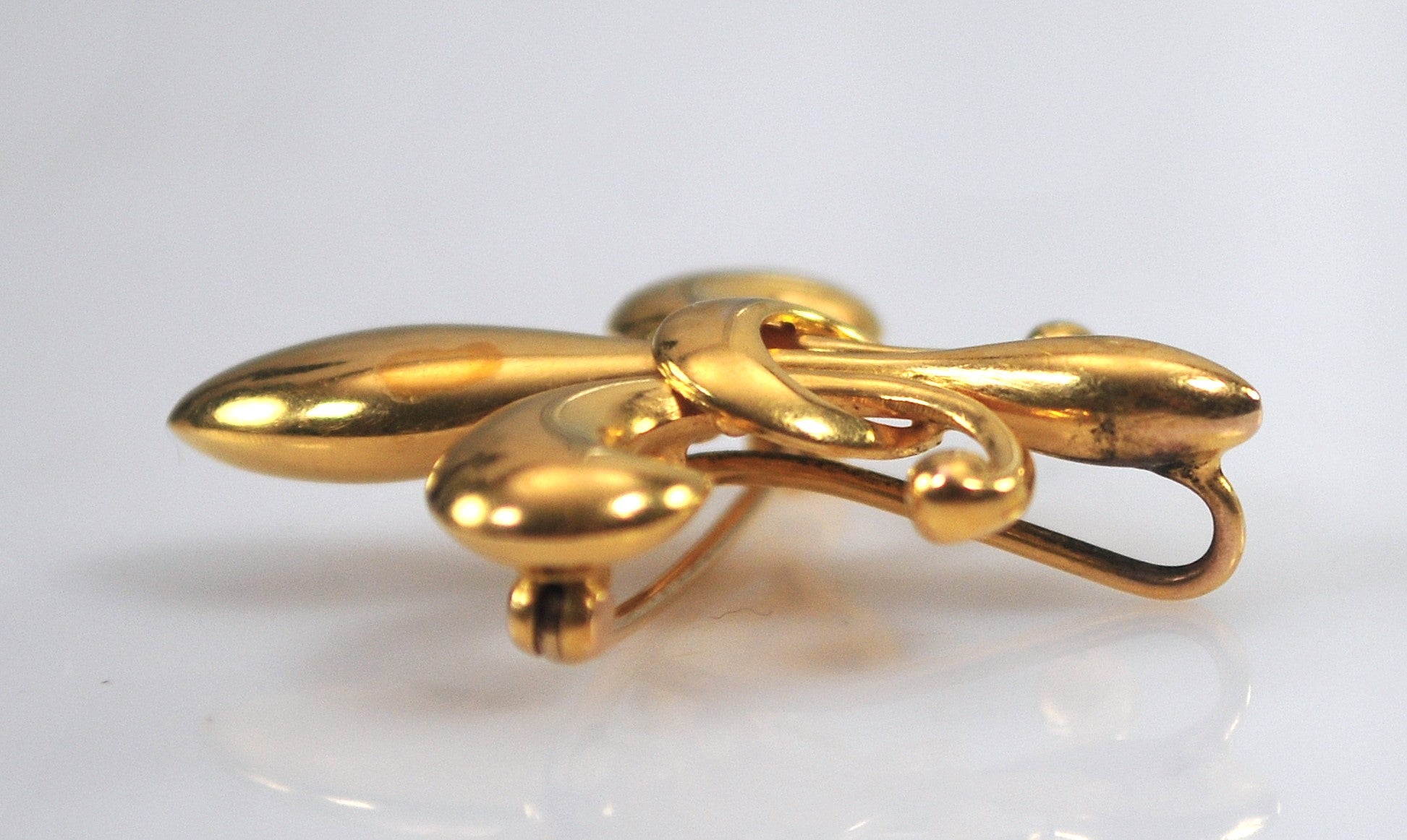 Vintage 14K yellow gold Fleur de Lis pin or watch clip is marked 14K on the C clasp.