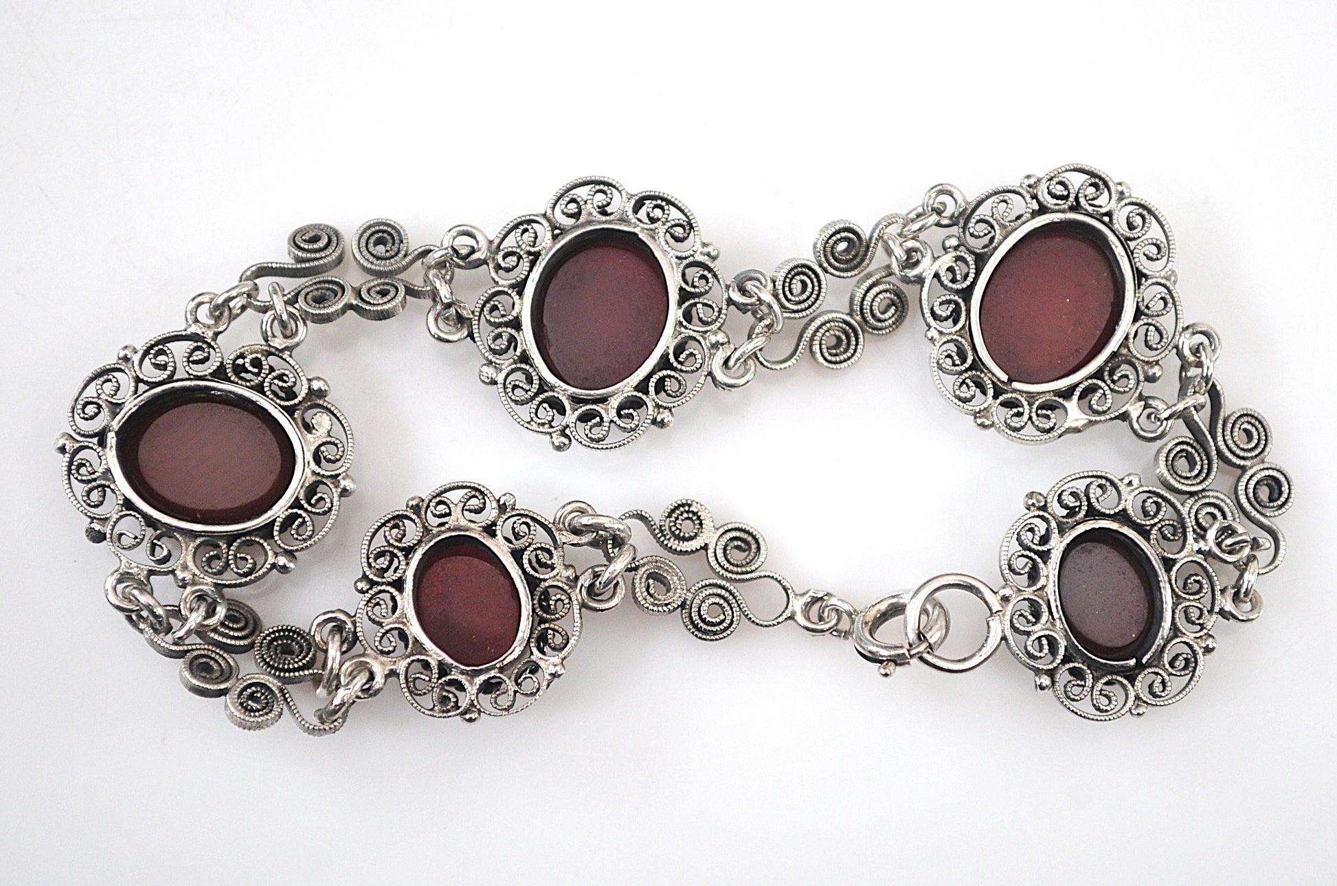 Vintage 800 Silver Carnelian Intaglio Bracelet