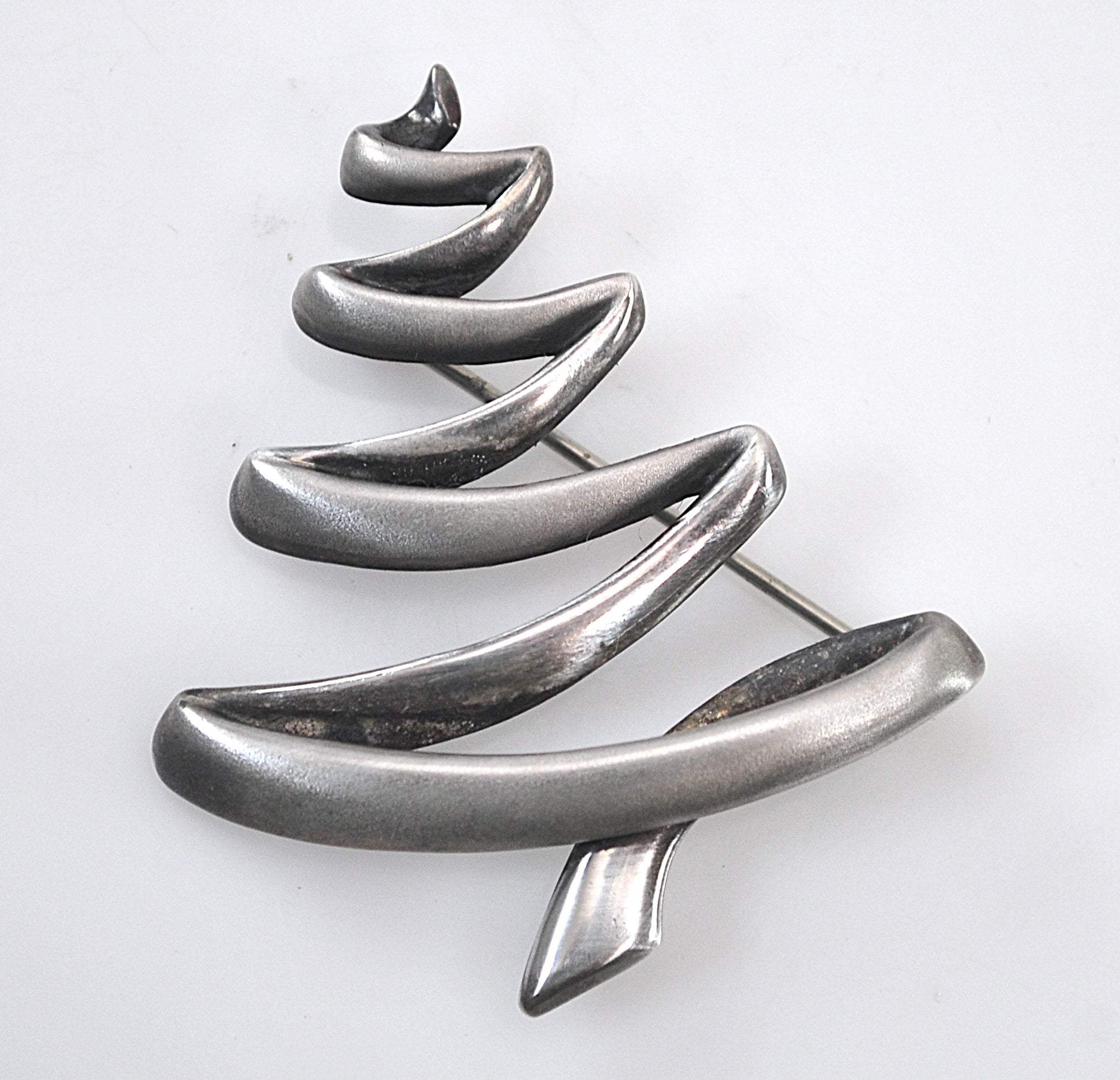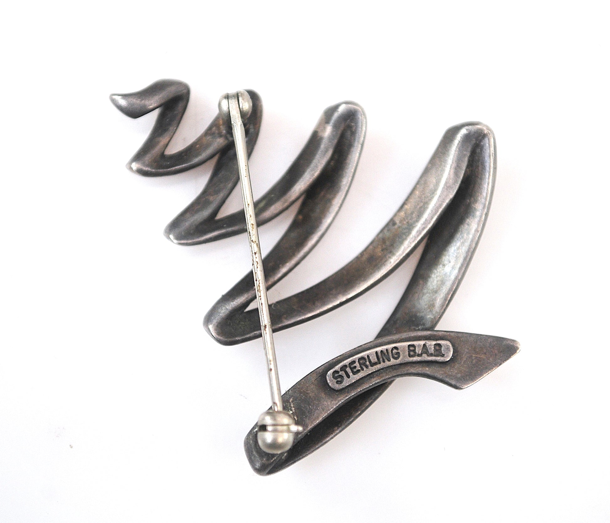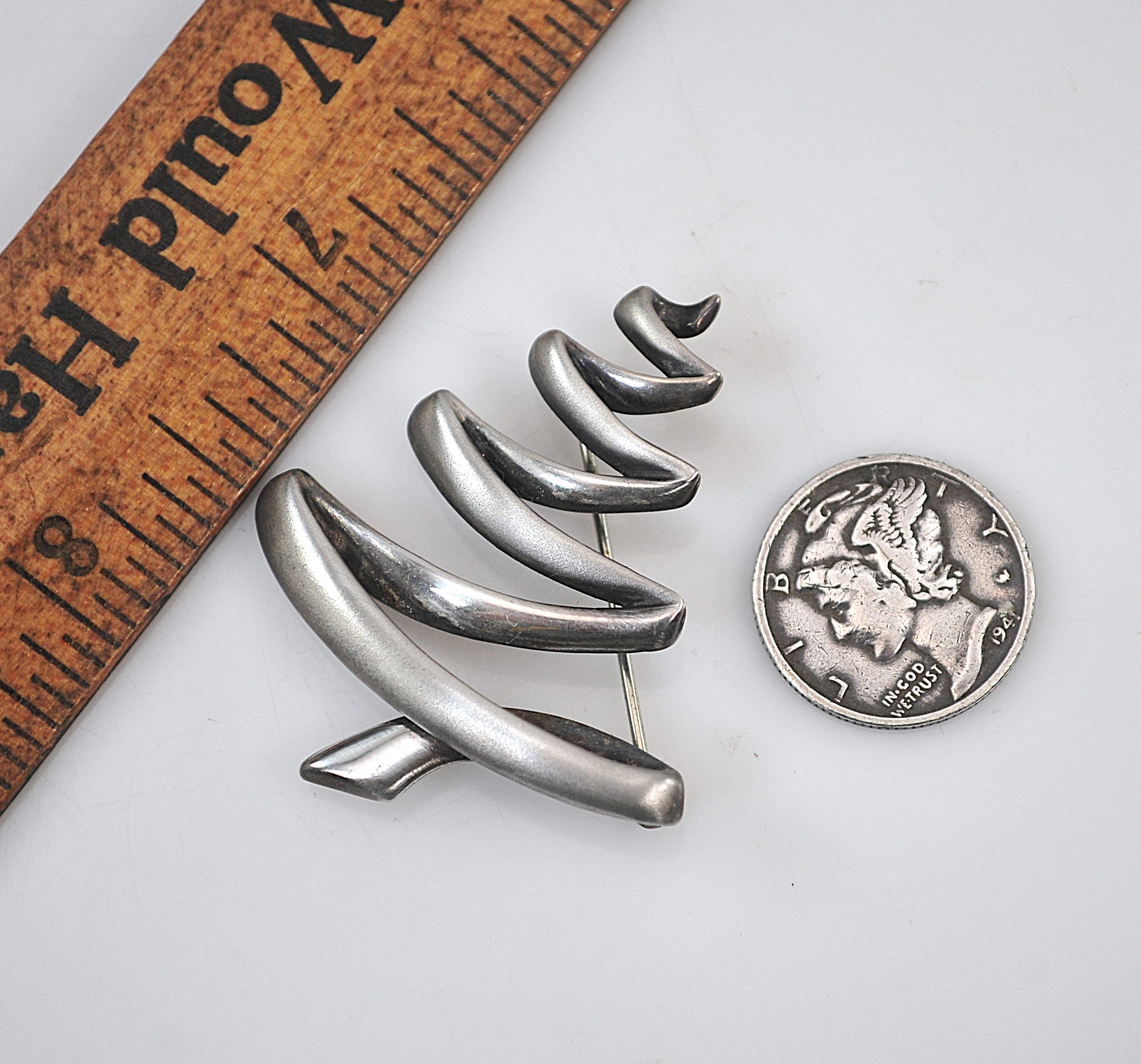 Mid-Century Modern sterling silver tree brooch is signed Sterling BAB and features a combo of brushed and polished finishes. I did not polish this but I can if desired.