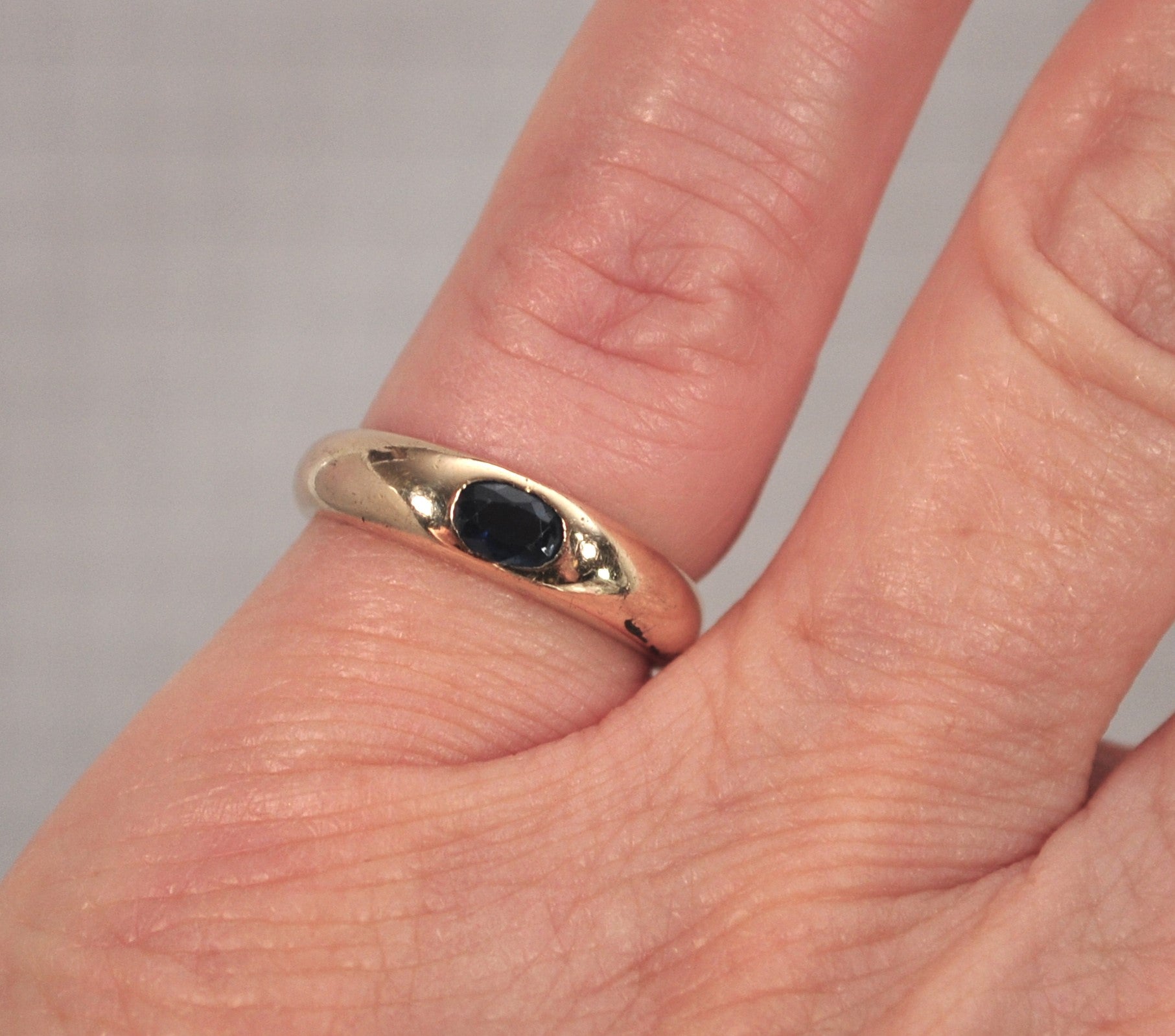 14K yellow gold band ring is signed 14K CID. While this ring shows wear upon close inspection, keep in mind the photos are magnified. I purchased three stacking rings of the same size from the same estate. One is still available under a separate listing.