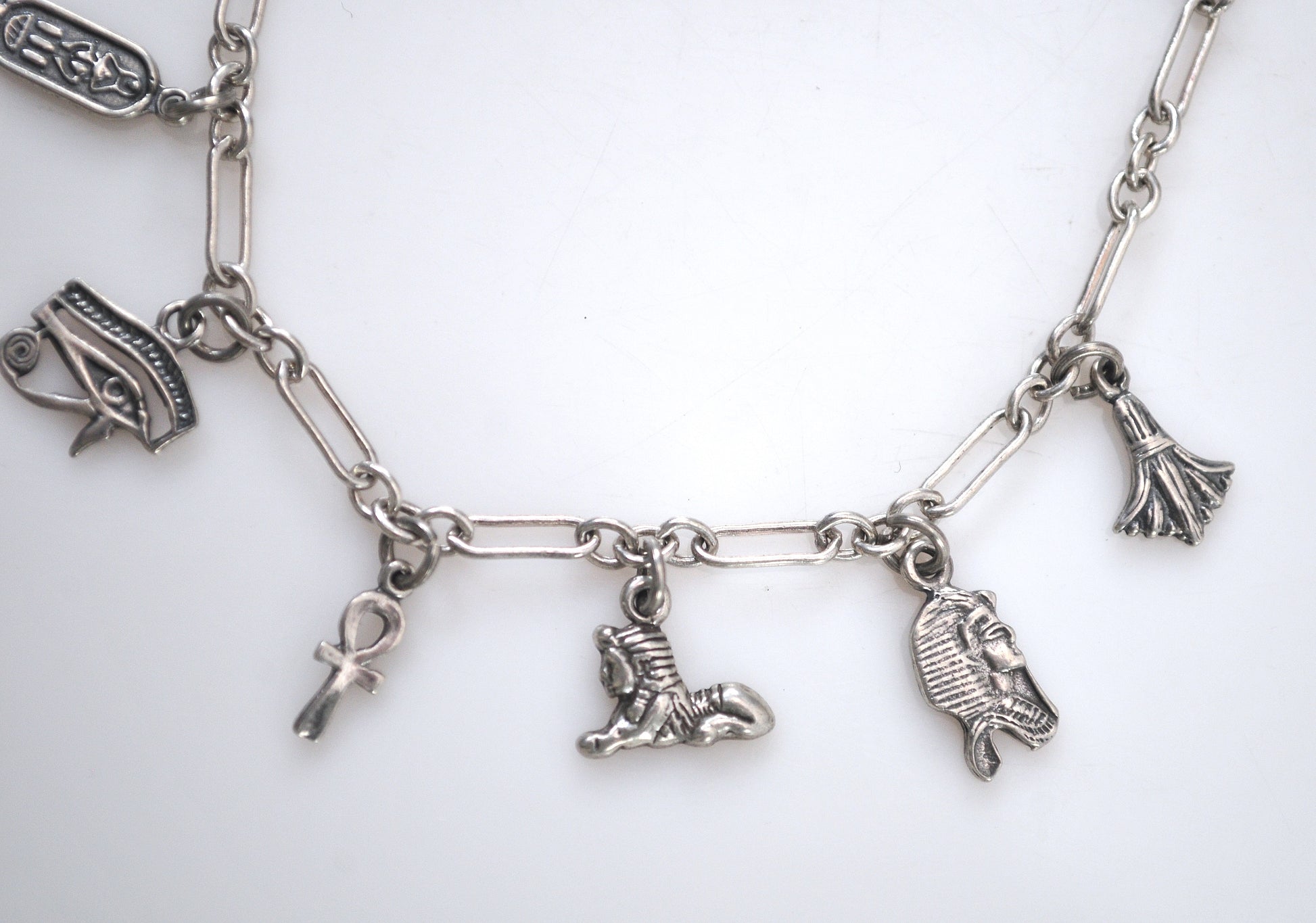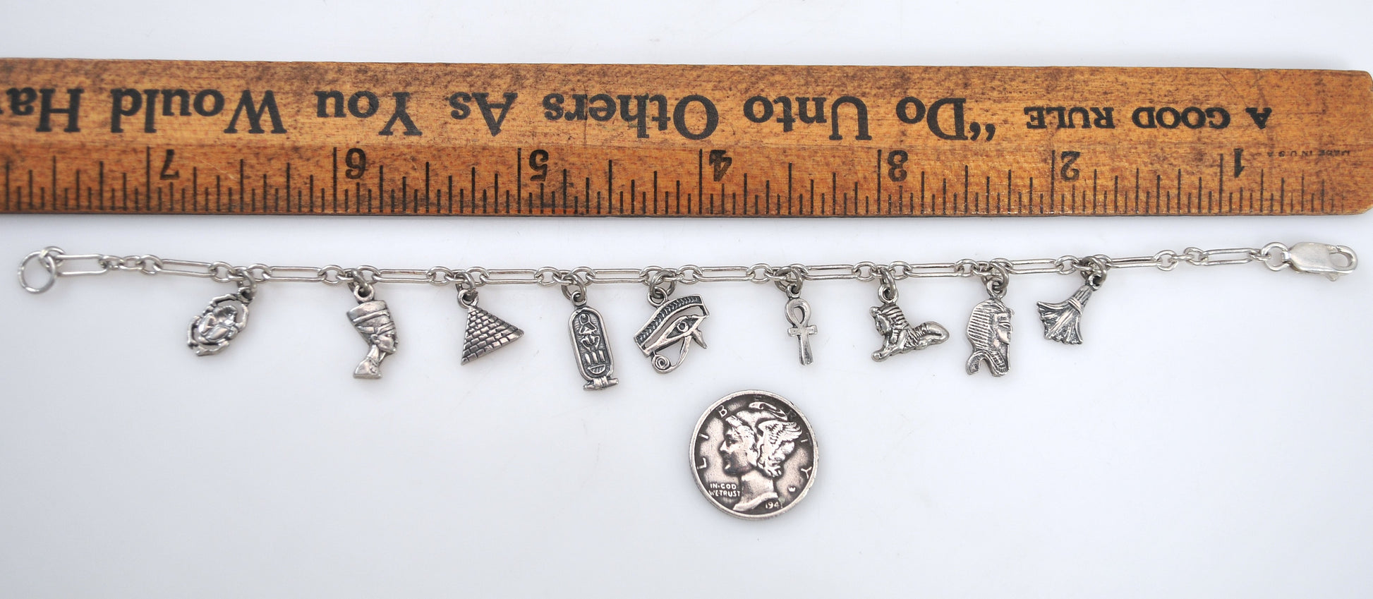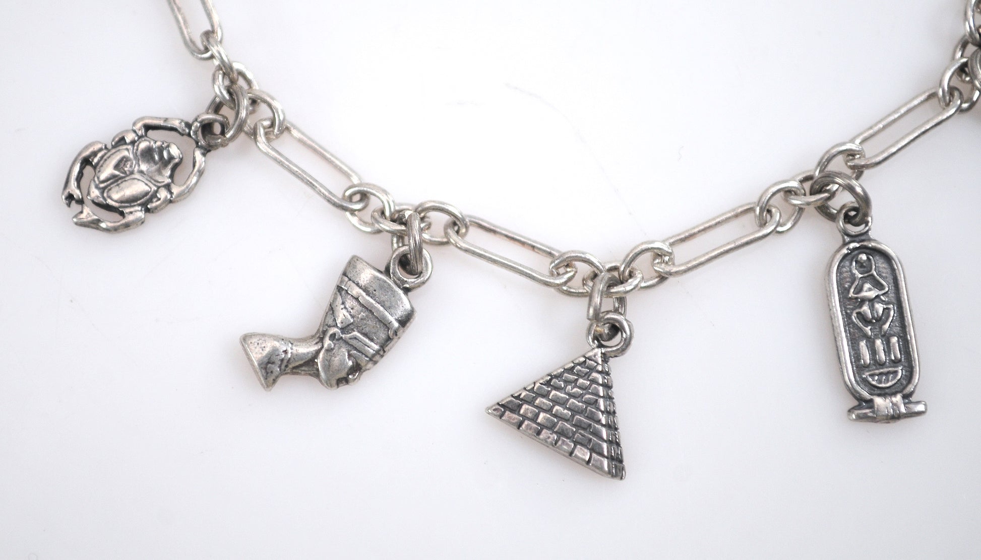 Vintage Sterling Silver Egyptian Charm Bracelet