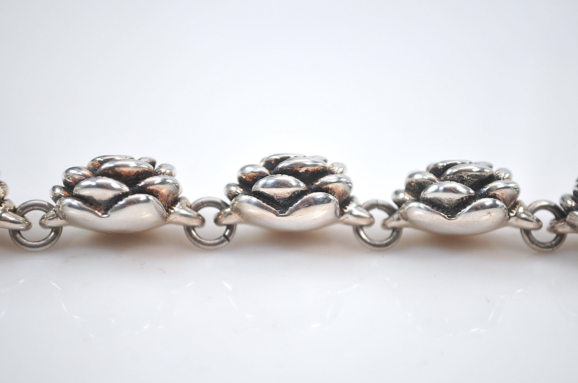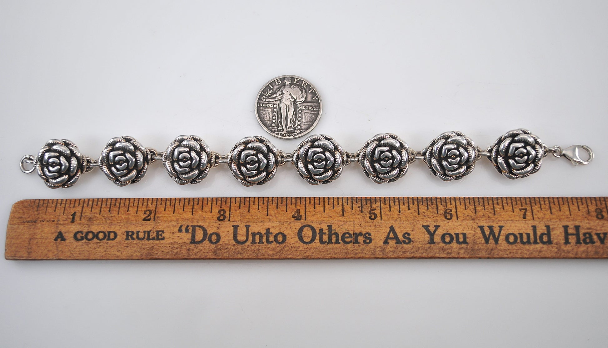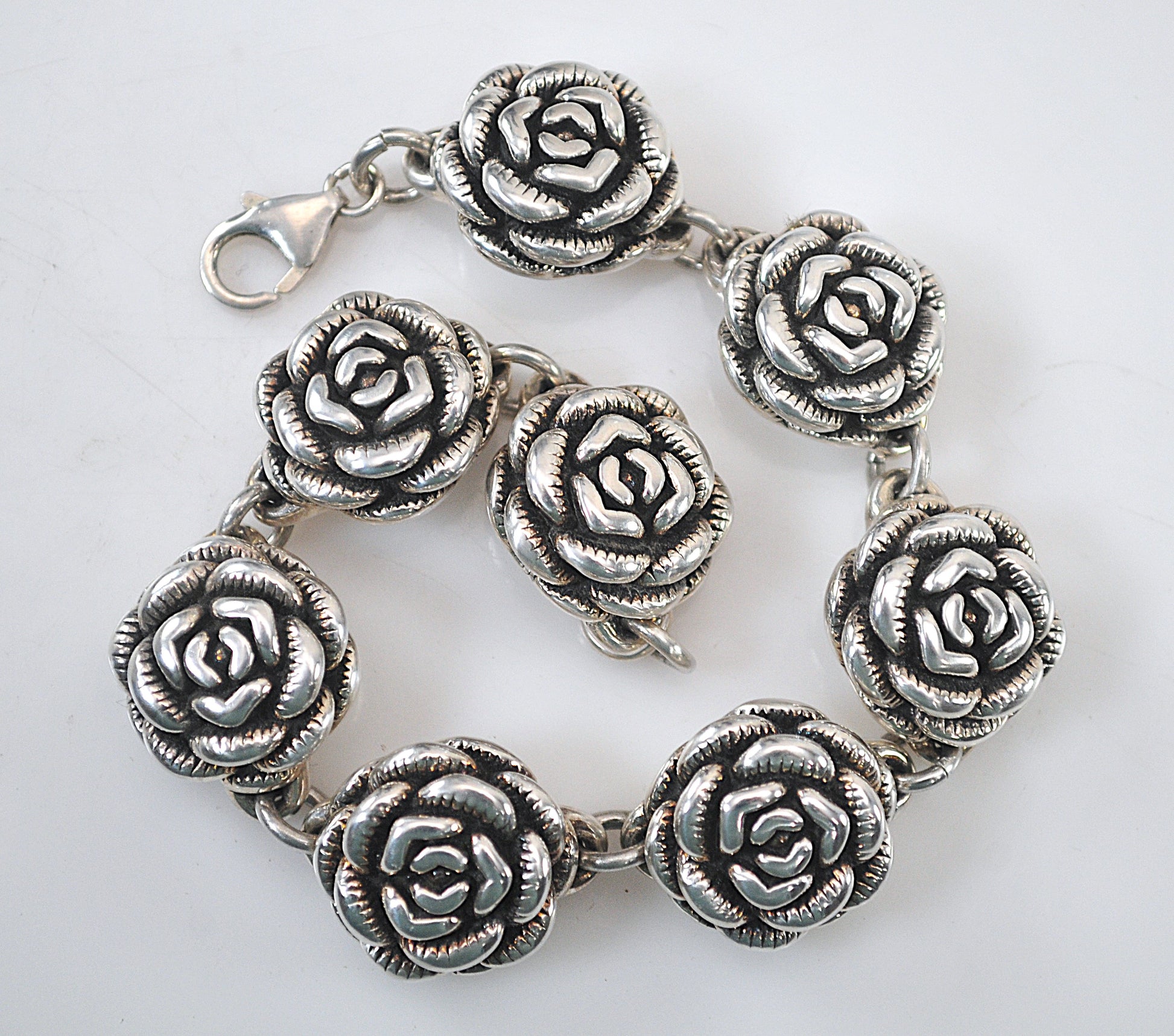 Chunky sterling silver puffed 3D rose bracelet is marked 926.