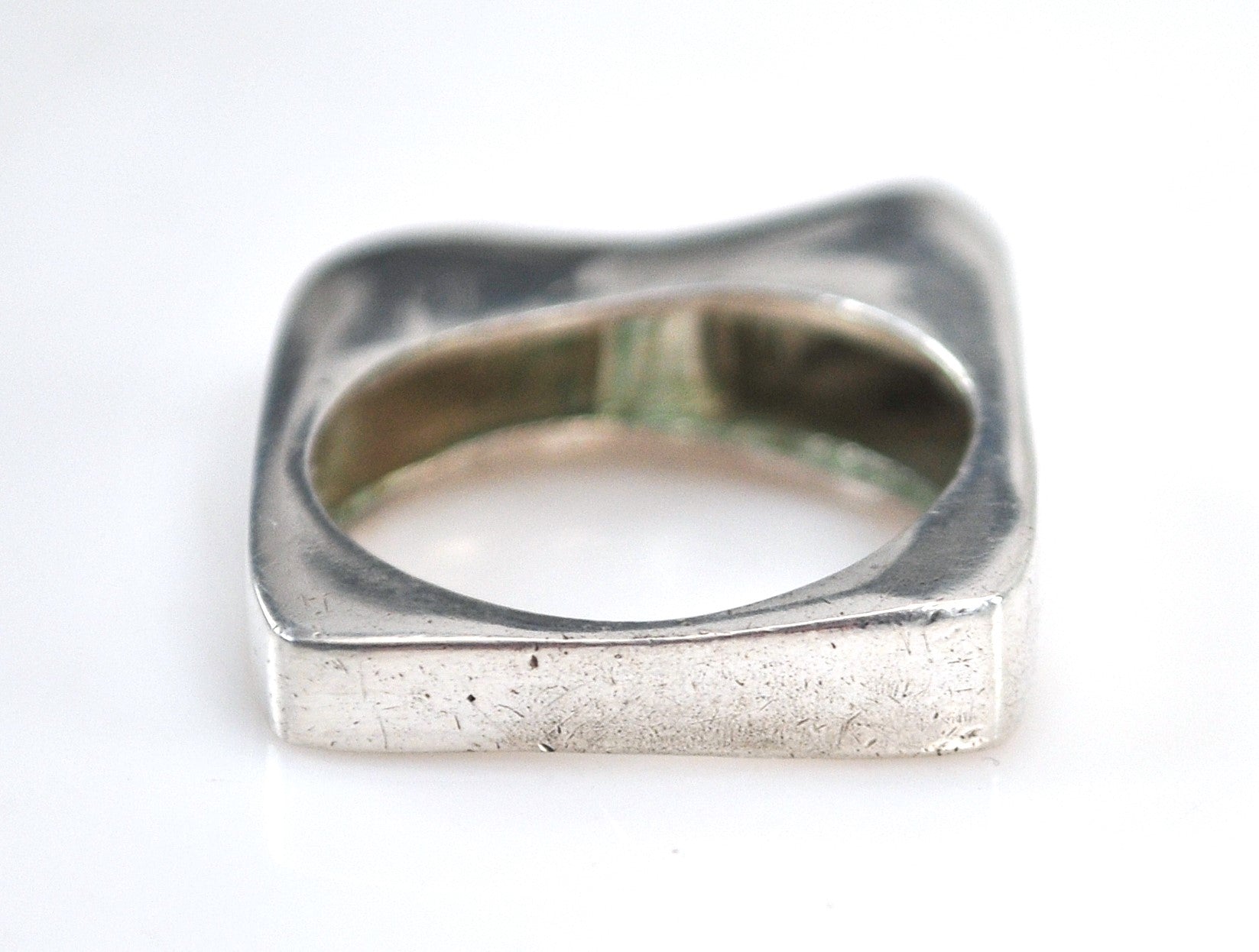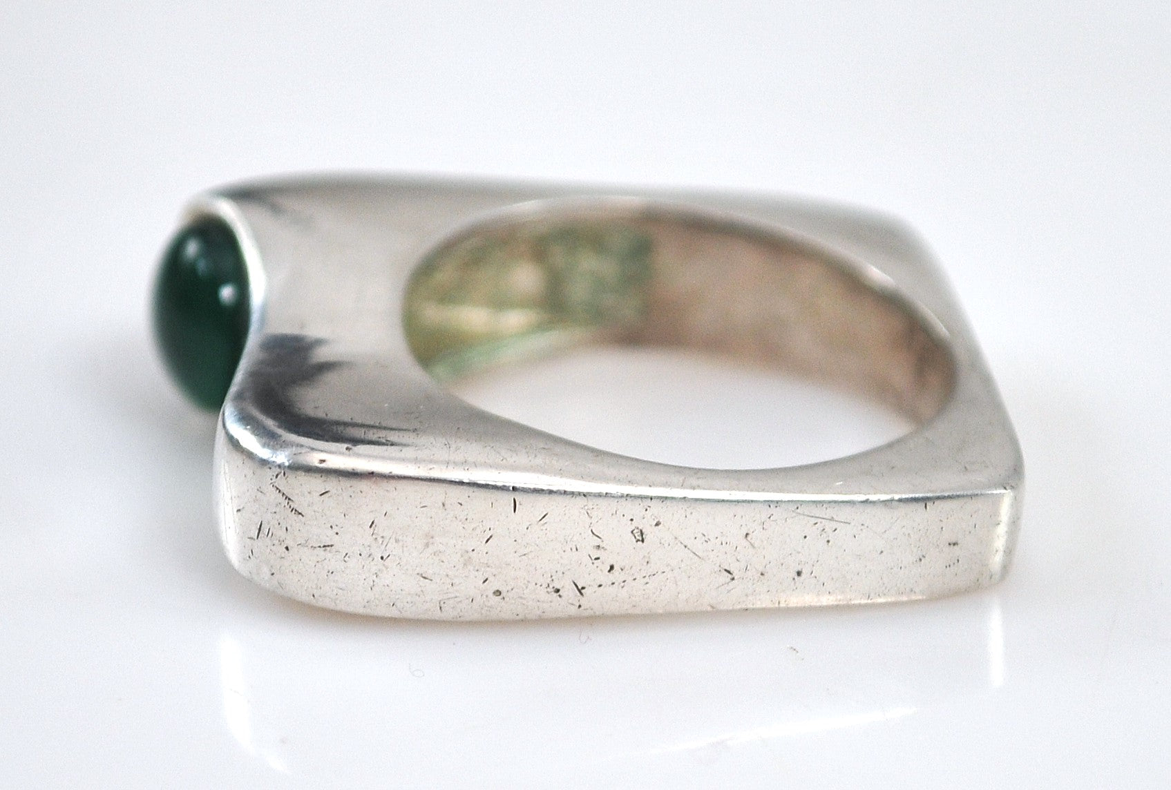 Vintage Sterling Silver Square Band Green Onyx Ring