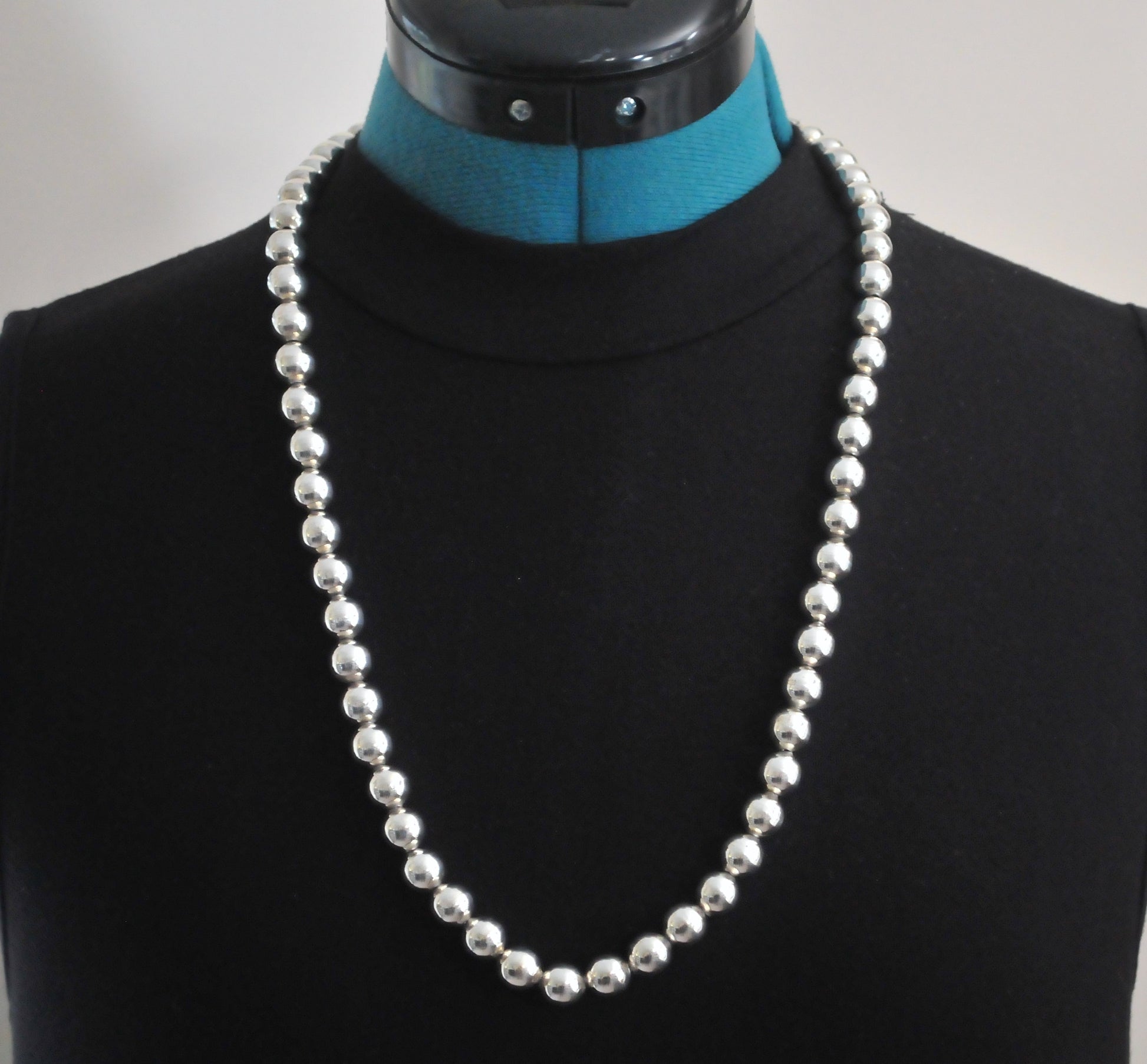 Vintage Taxco Sterling Silver 10mm Ball Necklace