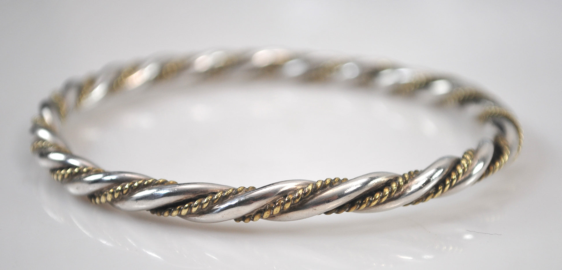 Vintage Taxco Sterling Silver Brass Twist Bangle Bracelet