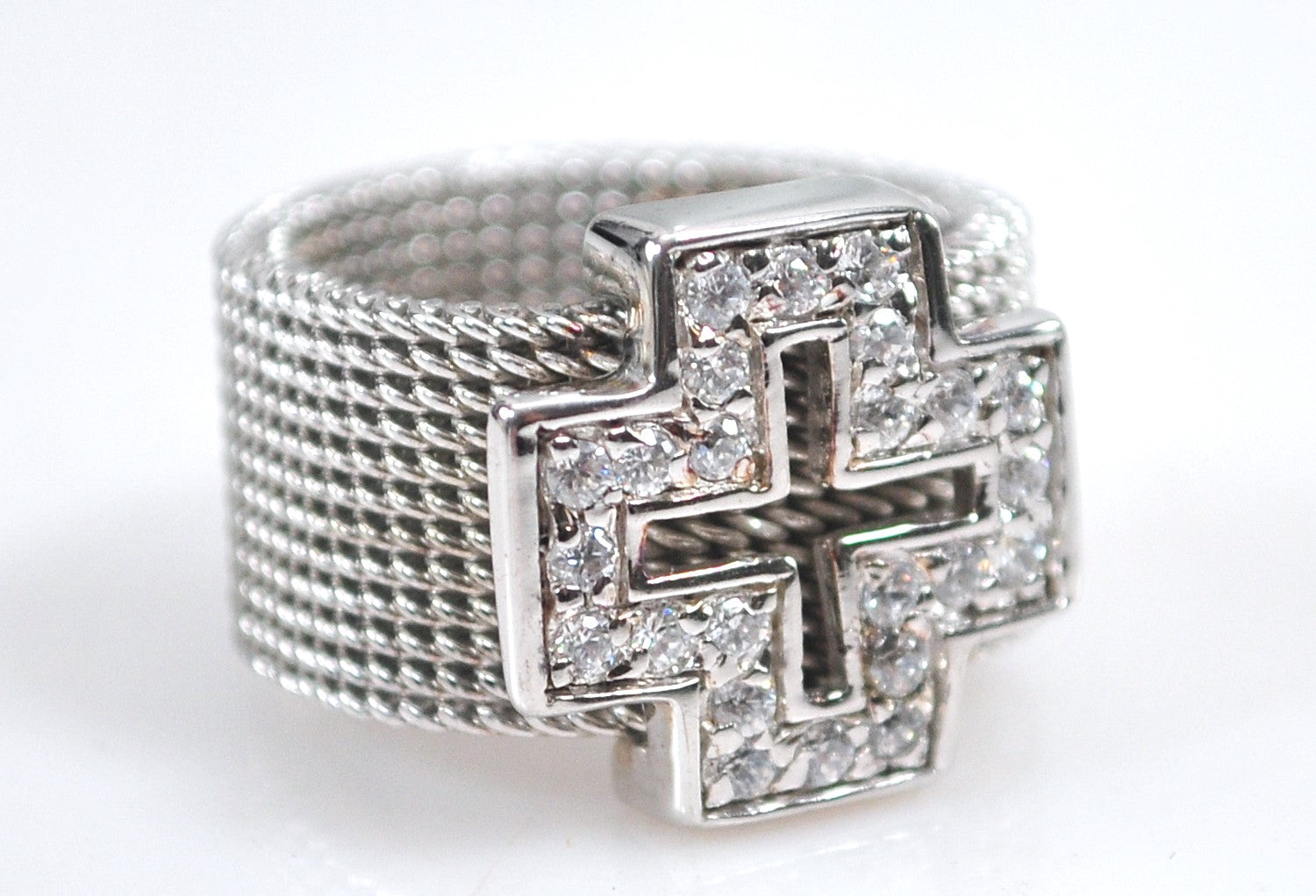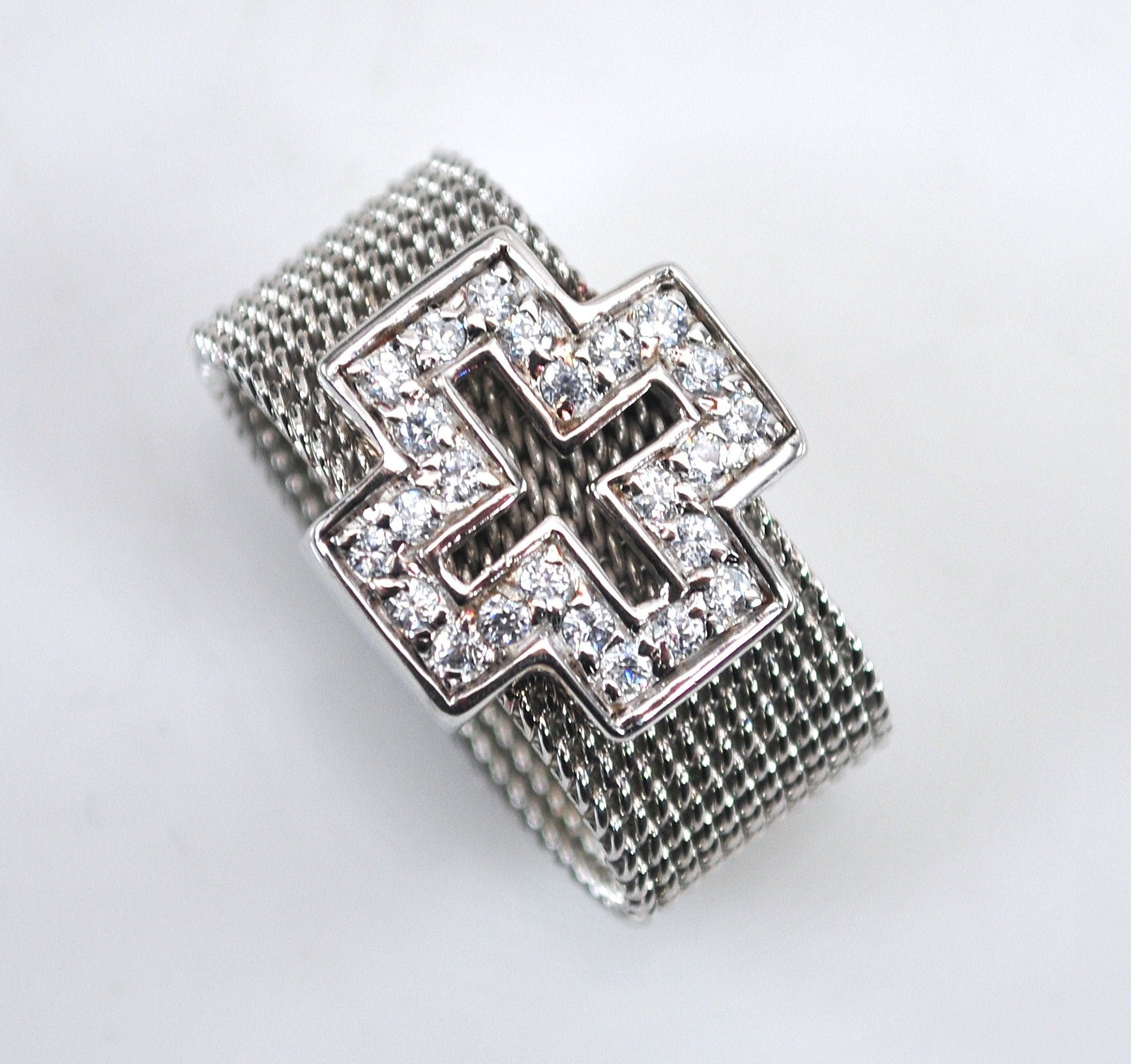 Wide Sterling Silver Mesh Cross Ring